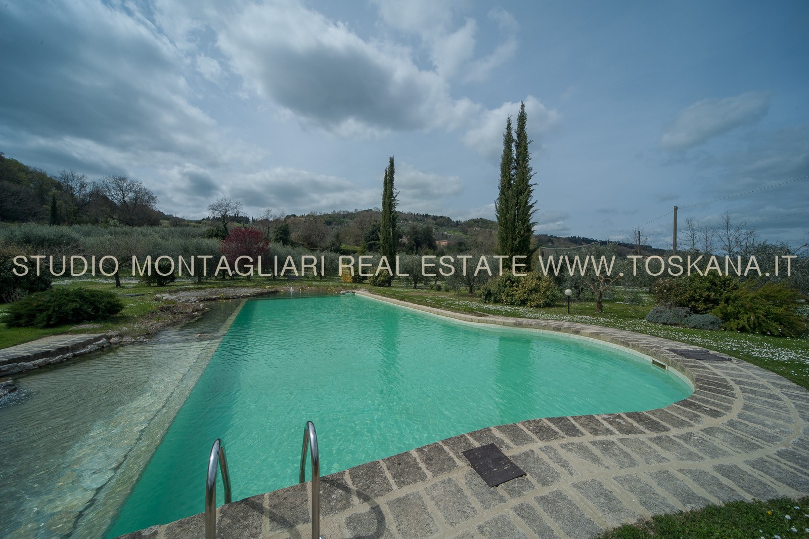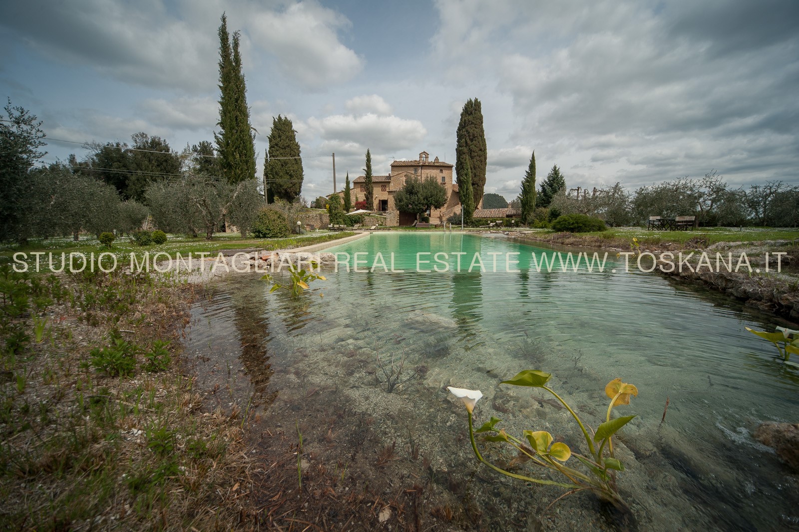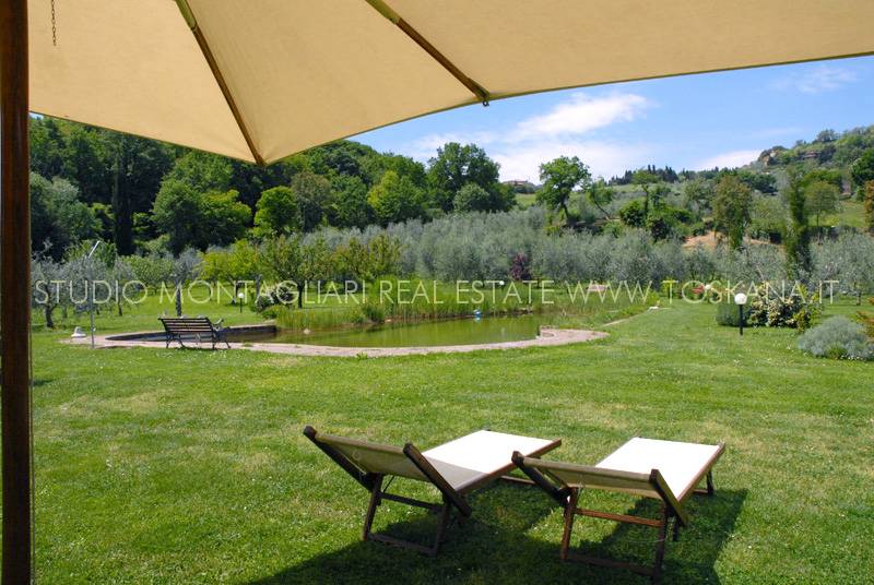 9,3 ha di terreno con 1000 ulivi, un orto, un frutteto e un giardino con un lago-piscina naturale rifatto di recente completano la proprietà che gode di una vista panoramica incontaminata.