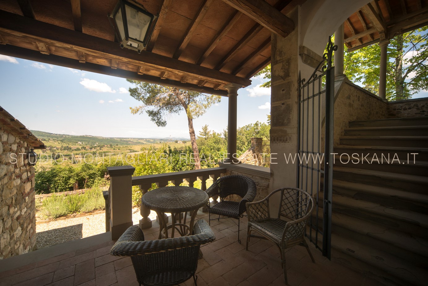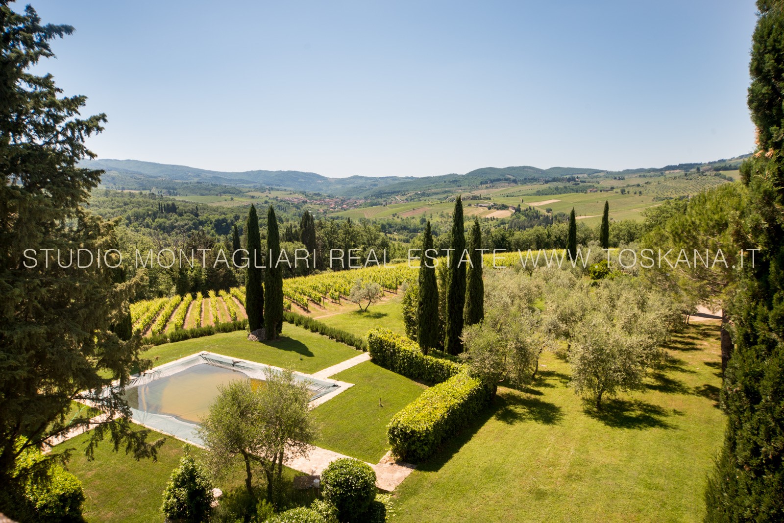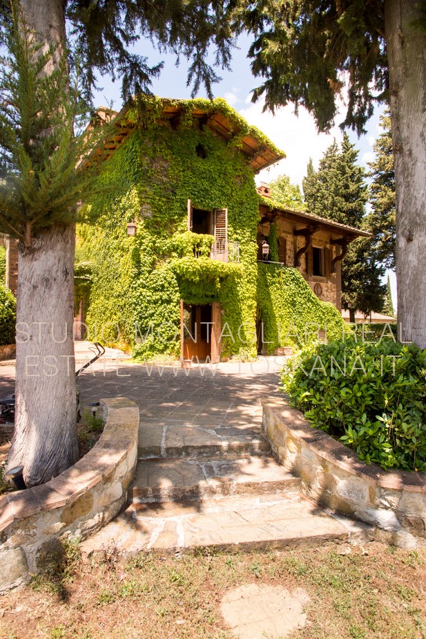 Il giardino paesaggistico circostante offre viste a 360 ° e una piscina particolarmente panoramica. La proprietà comprende 16 ettari di terreno, di cui 6 ettari a vigneto: 4 ettari di Chianti Classico e 2 ettari di IGT e 2 ettari di oliveto.