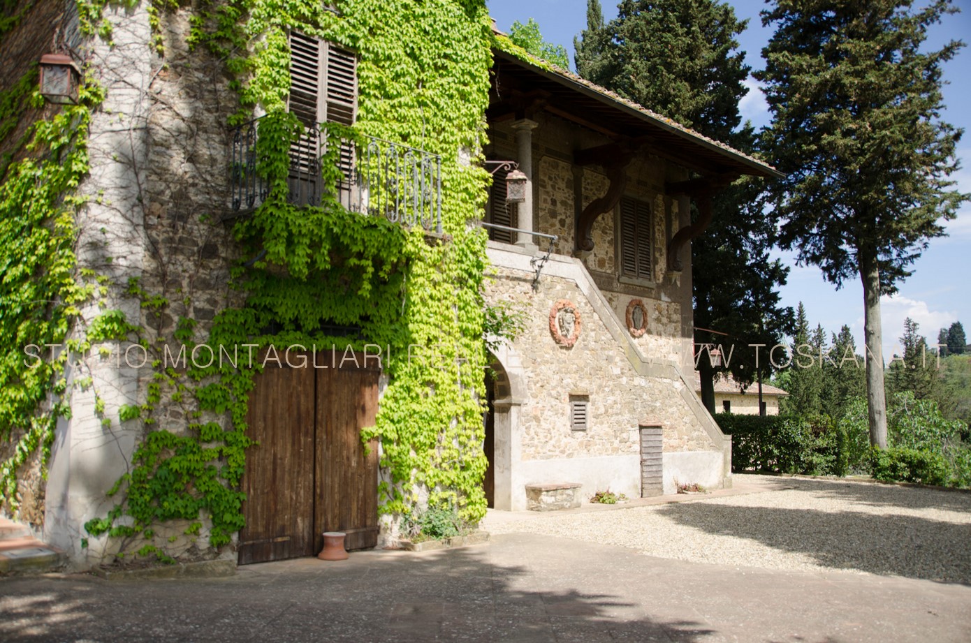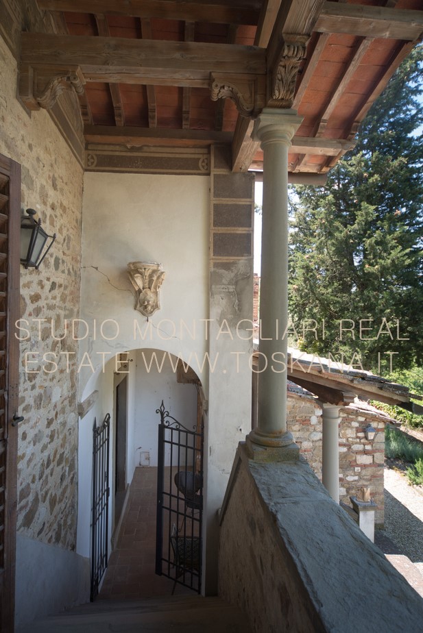 Questa eccezionale tenuta di campagna circondata da 16 ha di terreno si trova in posizione riservata ma facilmente raggiungibile a pochi km da Greve in Chianti. La proprietà comprende circa 1.150 mq tra la villa, la sua cappella e tre annessi. Due degli edifici adiacenti sono stati sapientemente restaurati dal prestigioso architetto che ha progettato la famosa cantina Antinori nelle vicinanze, aggiungendo materiali moderni e spettacolari listelli verticali sovradimensionati per massimizzare l'illuminazione naturale e offrire viste eccezionali.