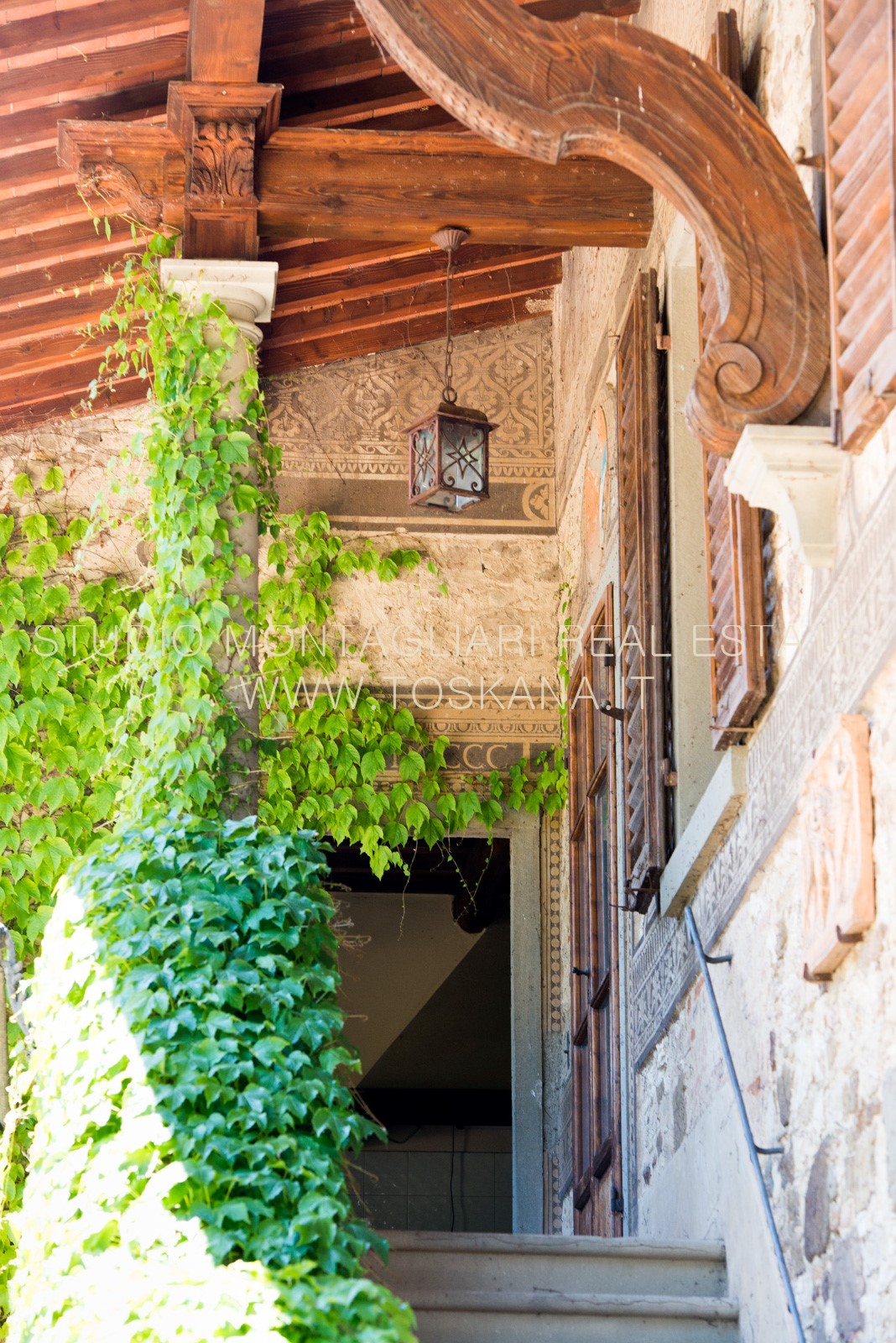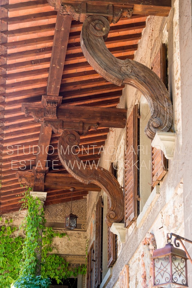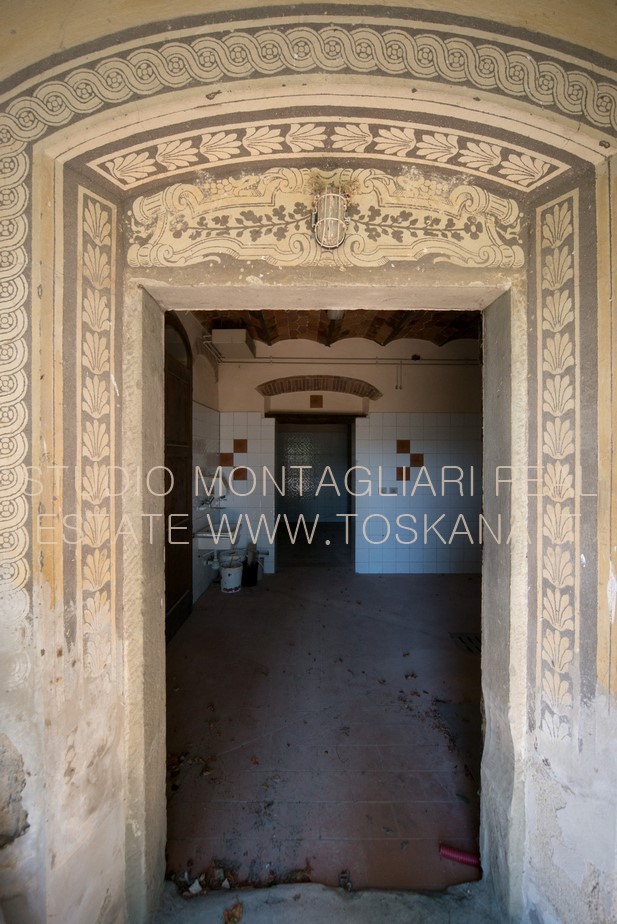 La villa principale è attualmente suddivisa in appartamenti, abitabili ma necessitano di una modernizzazione. La villa ha molte caratteristiche architettoniche attraenti distintive tra cui cornici riccamente scolpite, murature in pietra decorative, affreschi dettagliati, logge a colonne, una torre centrale con terrazza sul tetto e un soffitto a volta a botte in mattoni nella cantina.
