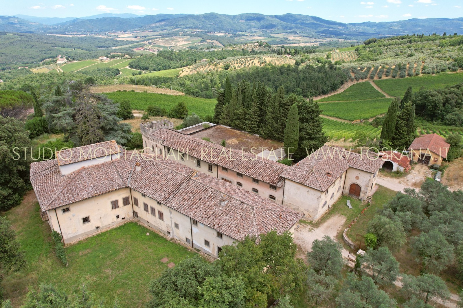 L'antica Villa viene raggiunta attraverso un viale di cipressi. Il complesso comprende la villa su tre livelli (1.700 mq), oltre a corpi di fabbrica che ospitavano le cantine, le stalle, la vinsantaia e il frantoio per un totale di 3.125 mq tra cui il castello con la sua torre caratteristica a pizzo. La nuova cantina, costruita negli anni '70, al suo tempo serviva per vinificare tutta la produzione dell'azienda, necessita di miglioramenti.