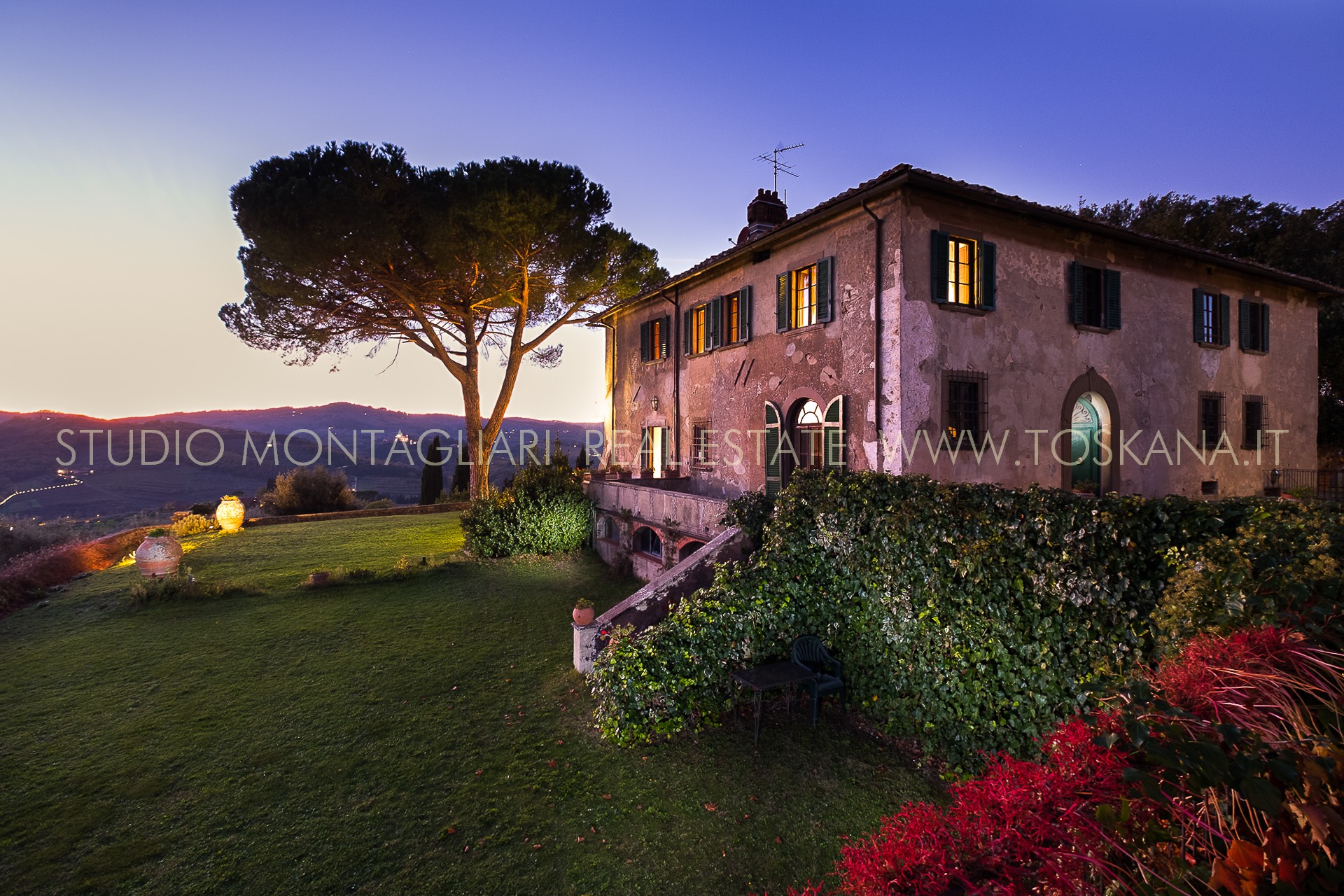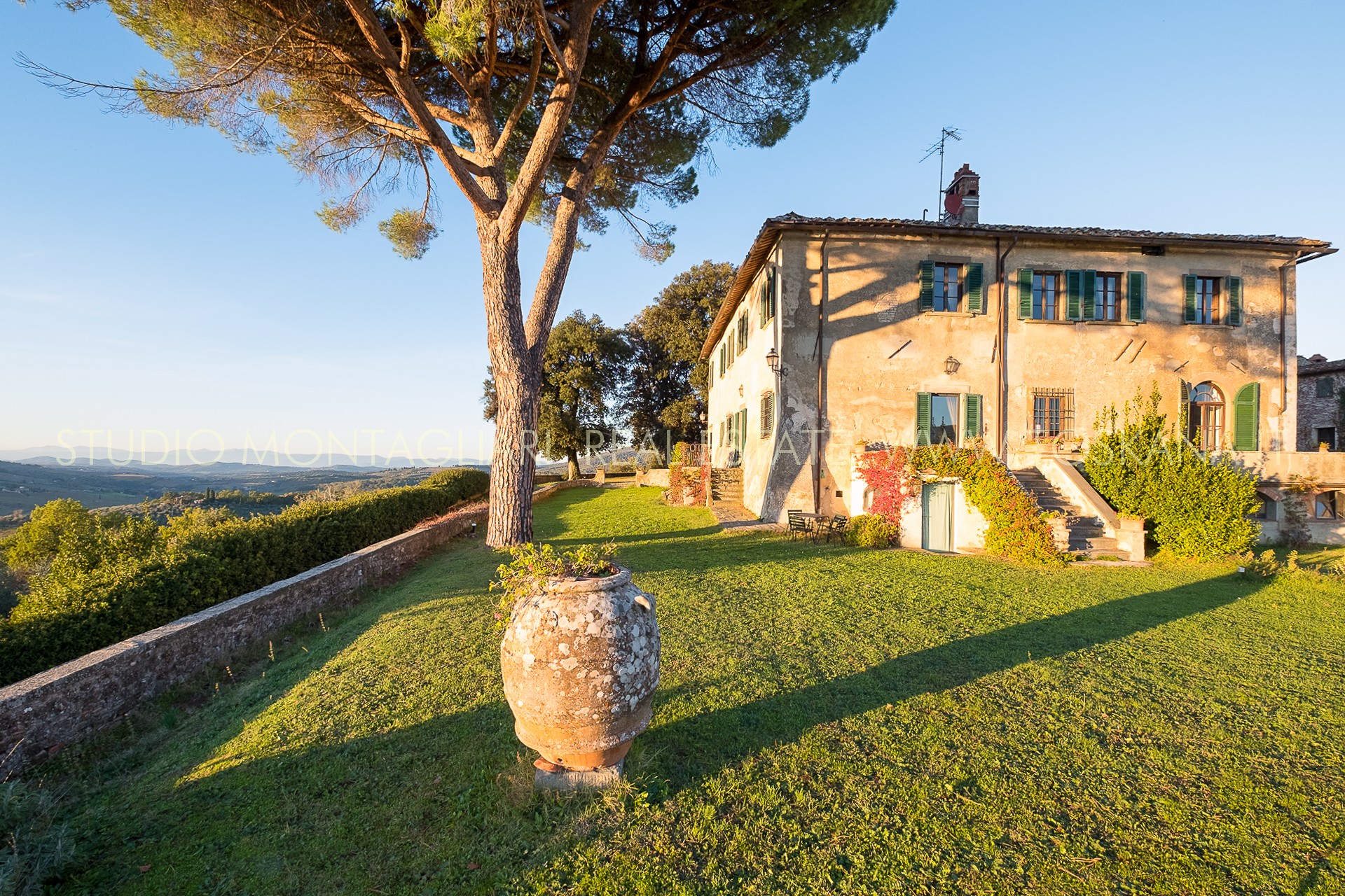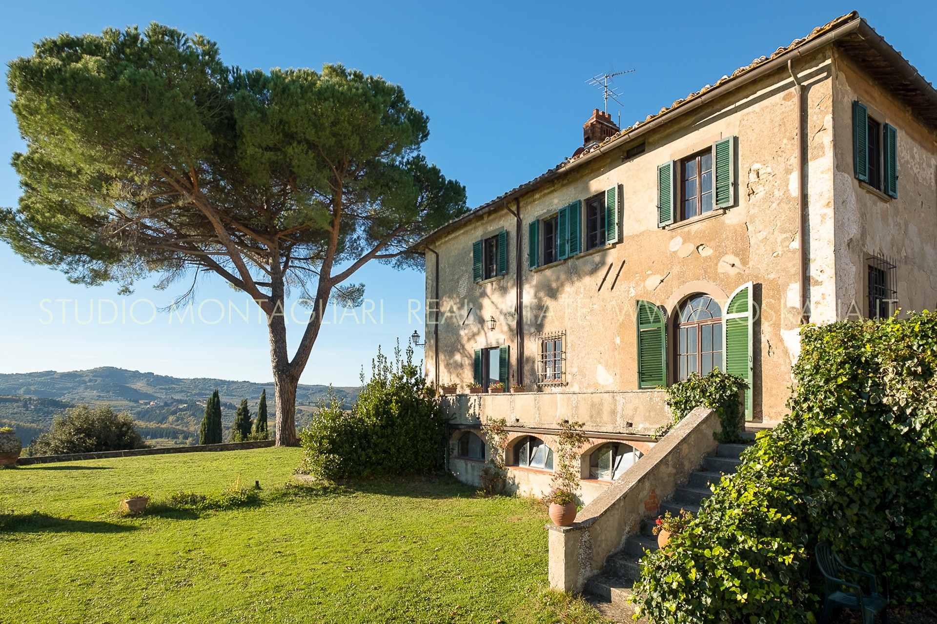 Questa villa storica si trova in posizione dominante sulle colline con un panorama strepitoso sul tipico paesaggio Toscano. La proprietà è formata dalla villa padronale di 1.150 mq e tre appartamenti, nonché un giardino circostante di circa 1 ha con un appezzamento di uliveto.
