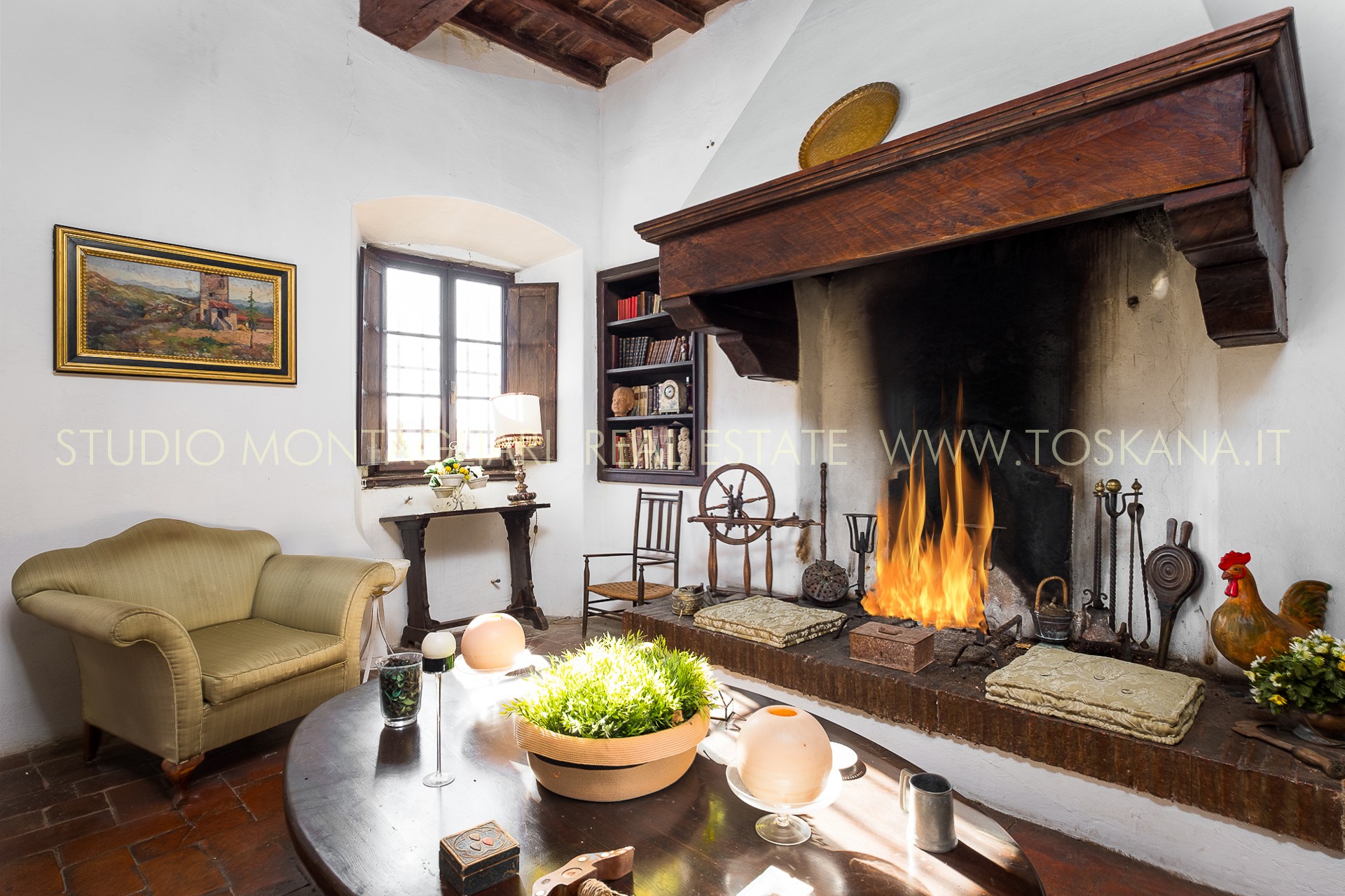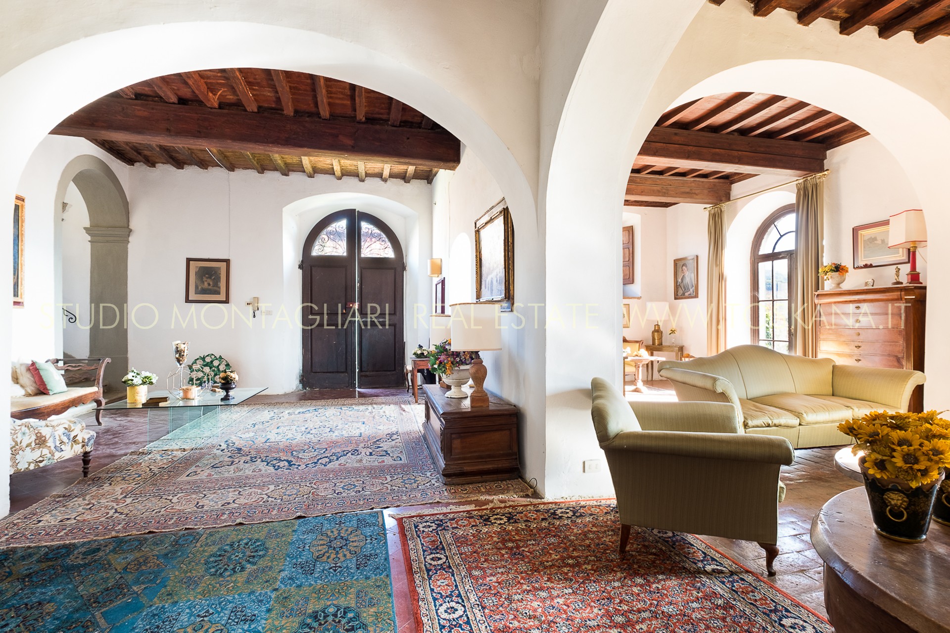 La villa nasce sui resti di un castello dell’anno 1000. Il piano terreno è caratterizzato da 4 saloni luminosi tutti dotati di camini con portefinestre che si affacciano sulla terrazza ed il giardino mentre dalla cucina si esce su un piazzale ombreggiato da alti alberi di leccio. 7 camere da letto matrimoniali e una singola e 7 bagni si trovano al primo piano. La stanza rosa è di particolare pregio storico, di misura generosa e dotata di pitture dell'800. L 'antica cantina con soffitto in mattoni a volta e ben conservata è servita da una scala interna e da una esterna. All'interno della villa si trova anche una piccola cappella consacrata.