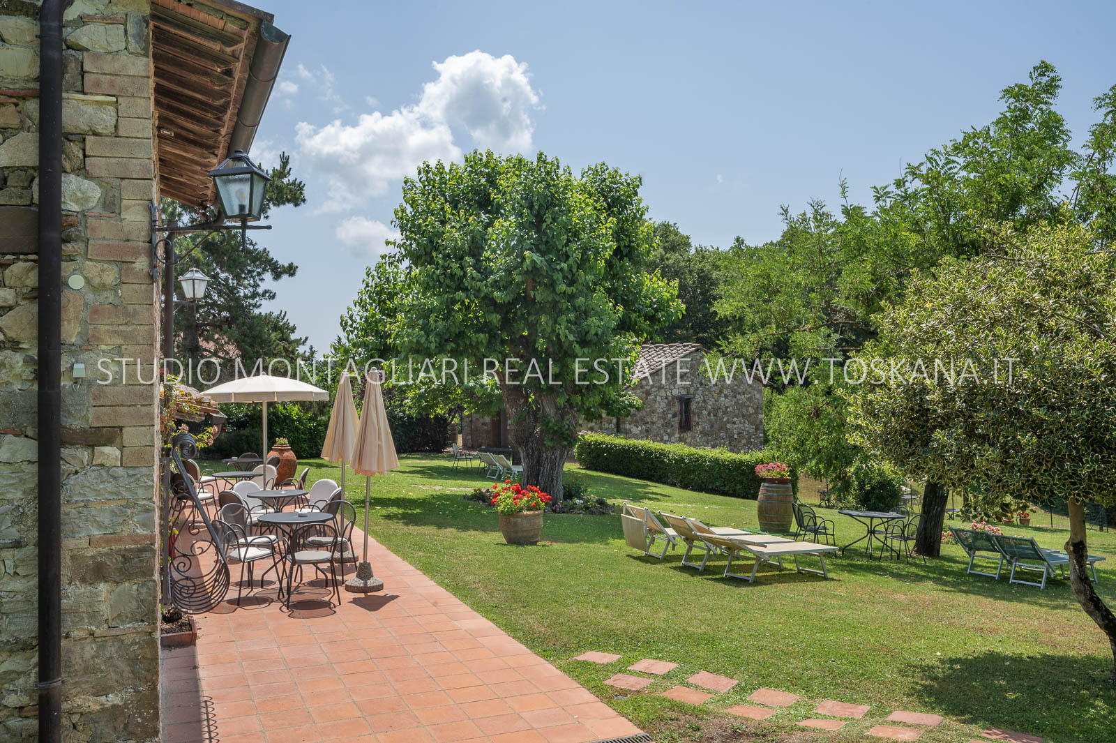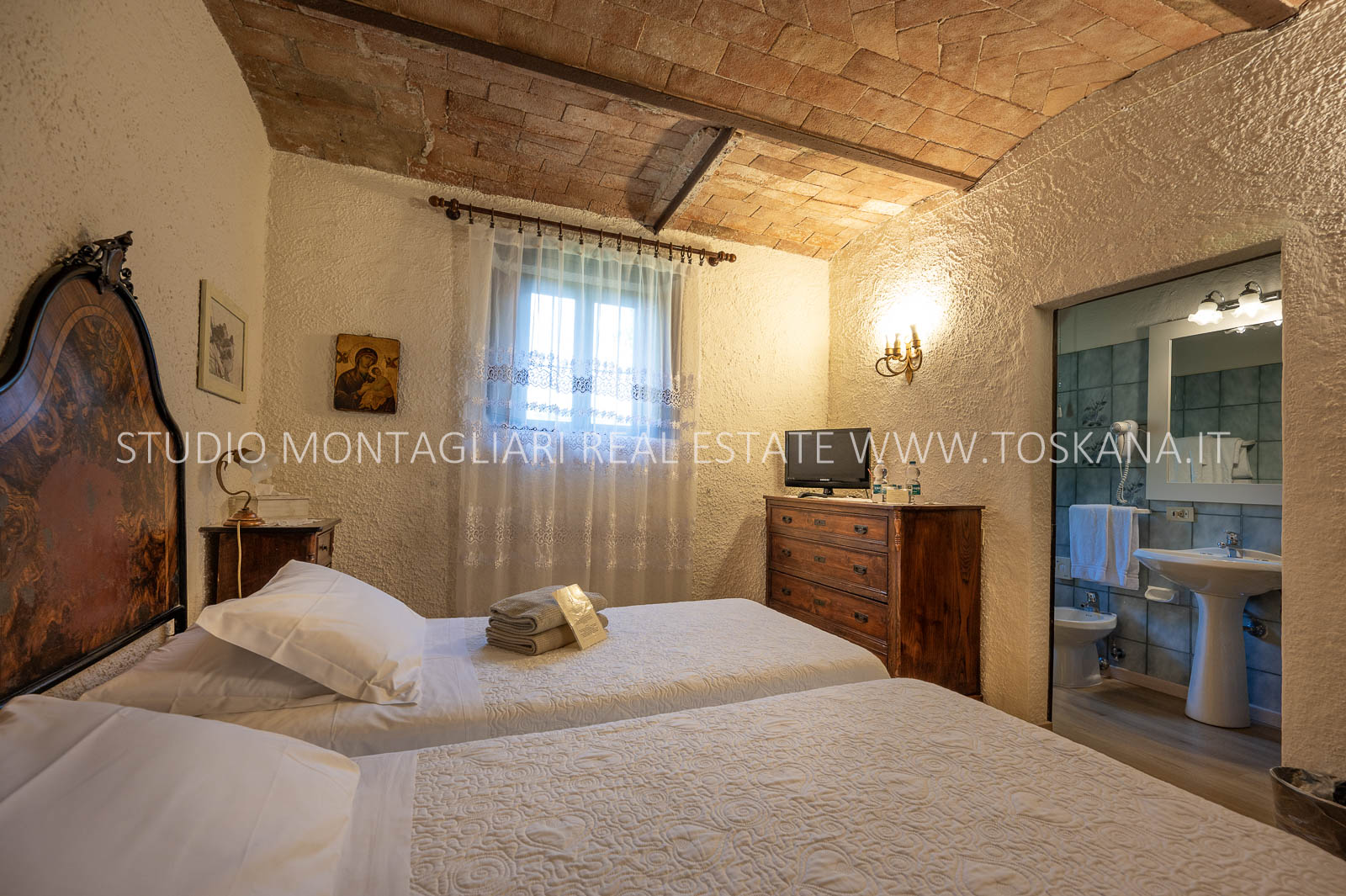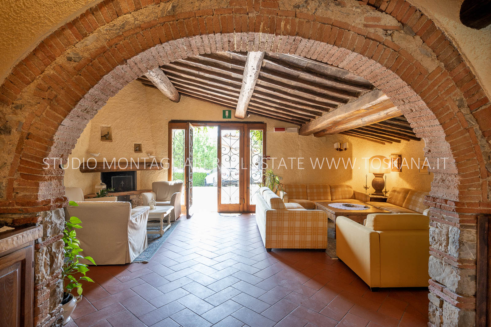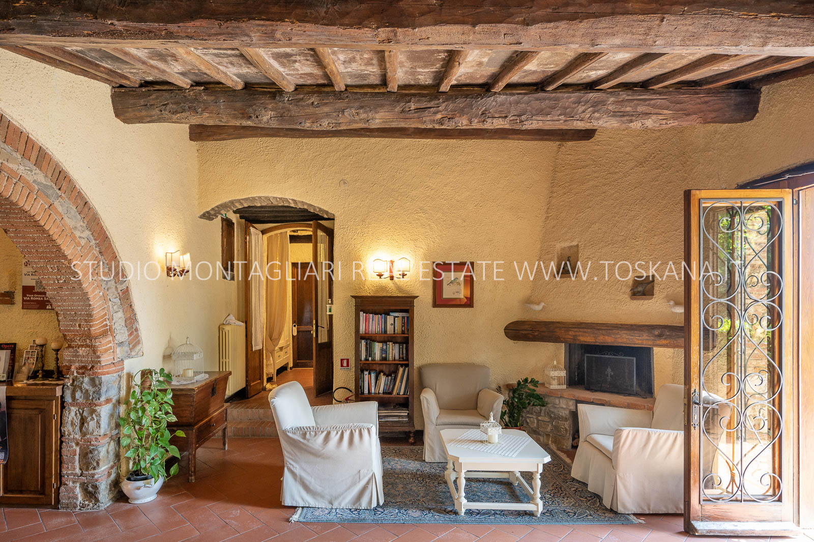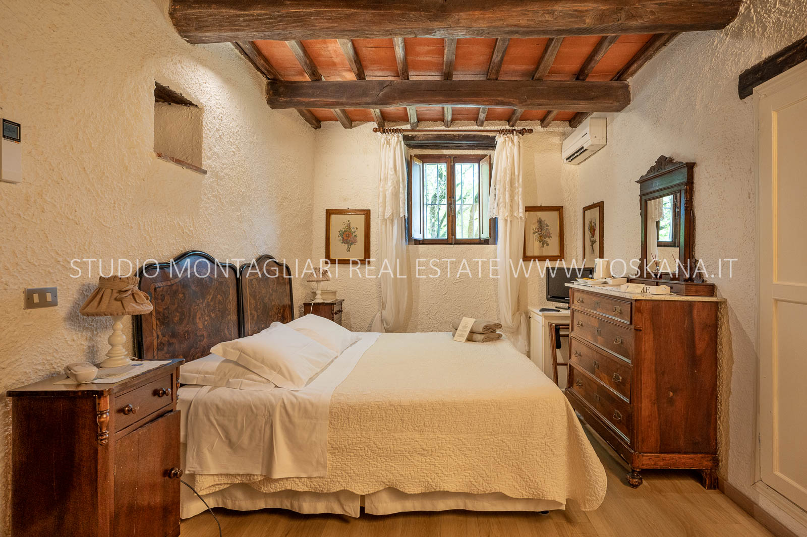 La proprietà è composta da una casa principale risalente al 1400, un fienile separato e una porzione di un edificio di costruzione recente. Immersa in un giardino curato con piscina, la proprietà offre 19 camere da letto con bagno privato, una sala ricevimenti e una sala colazioni. Tutte le camere mantengono l'originale carattere toscano, con pavimenti in cotto e soffitti con travi in legno, e sono dotate di aria condizionata.