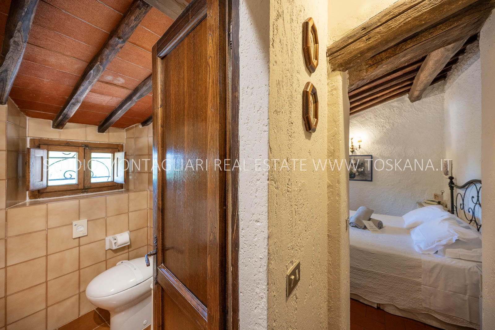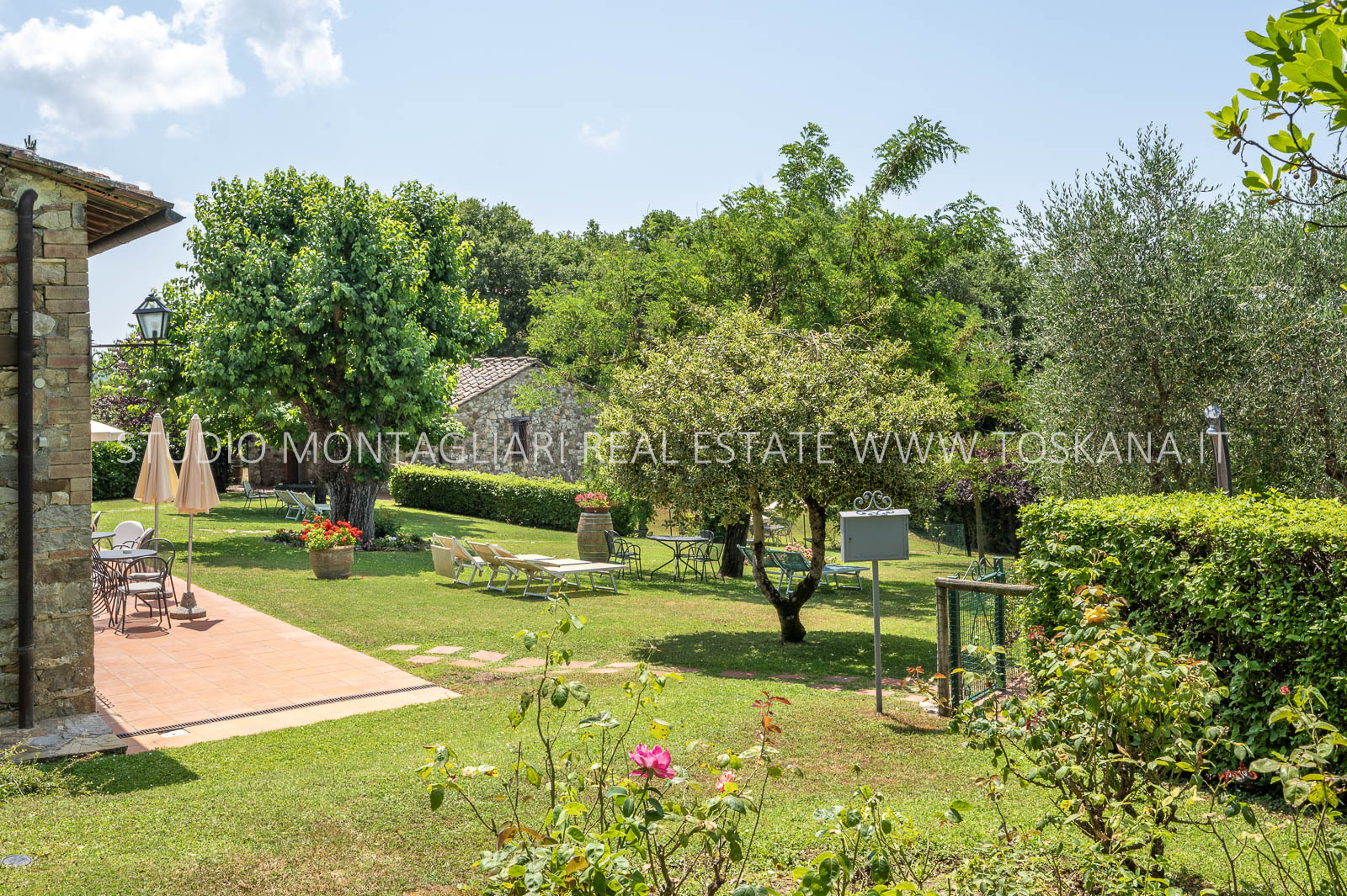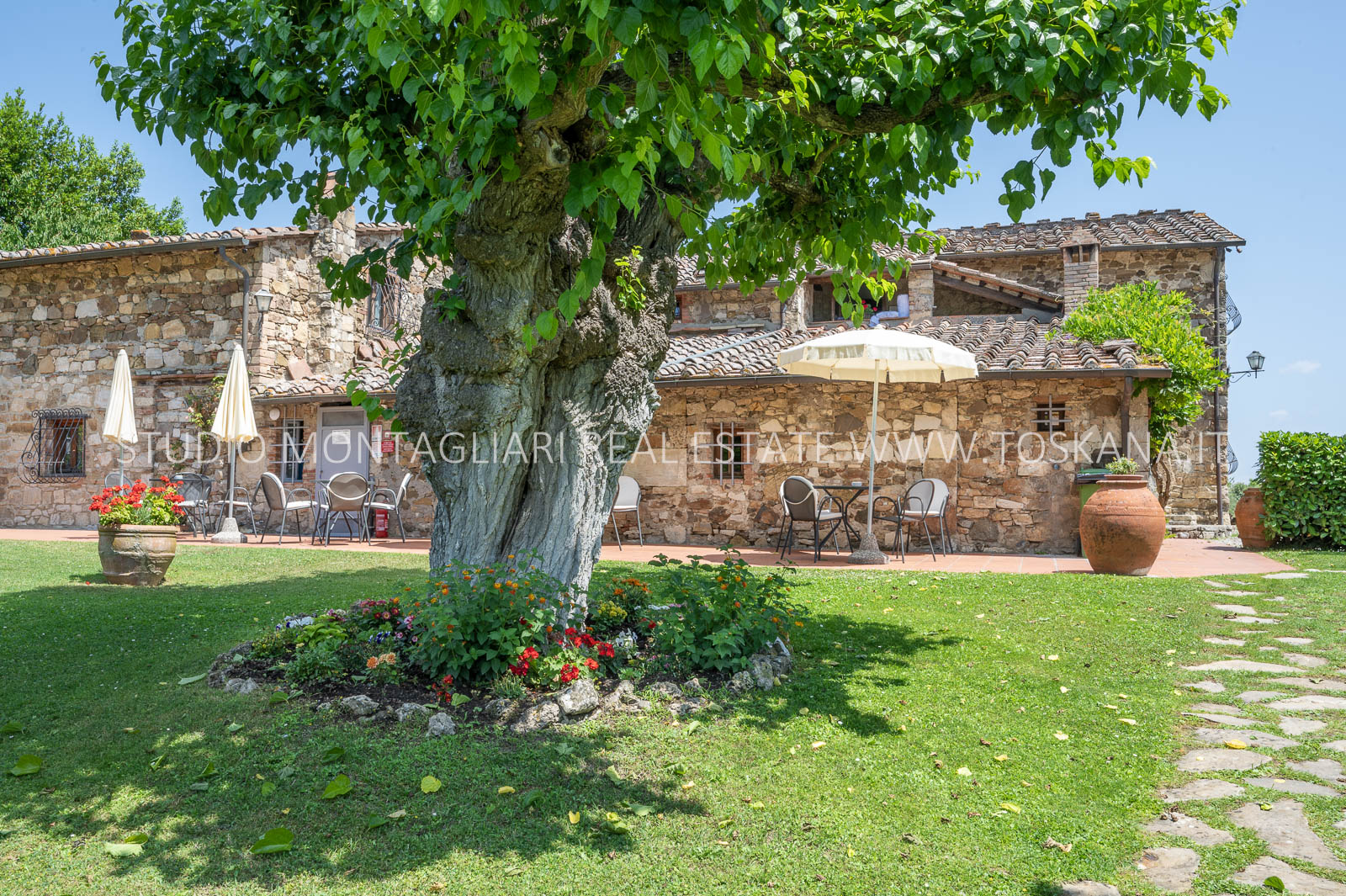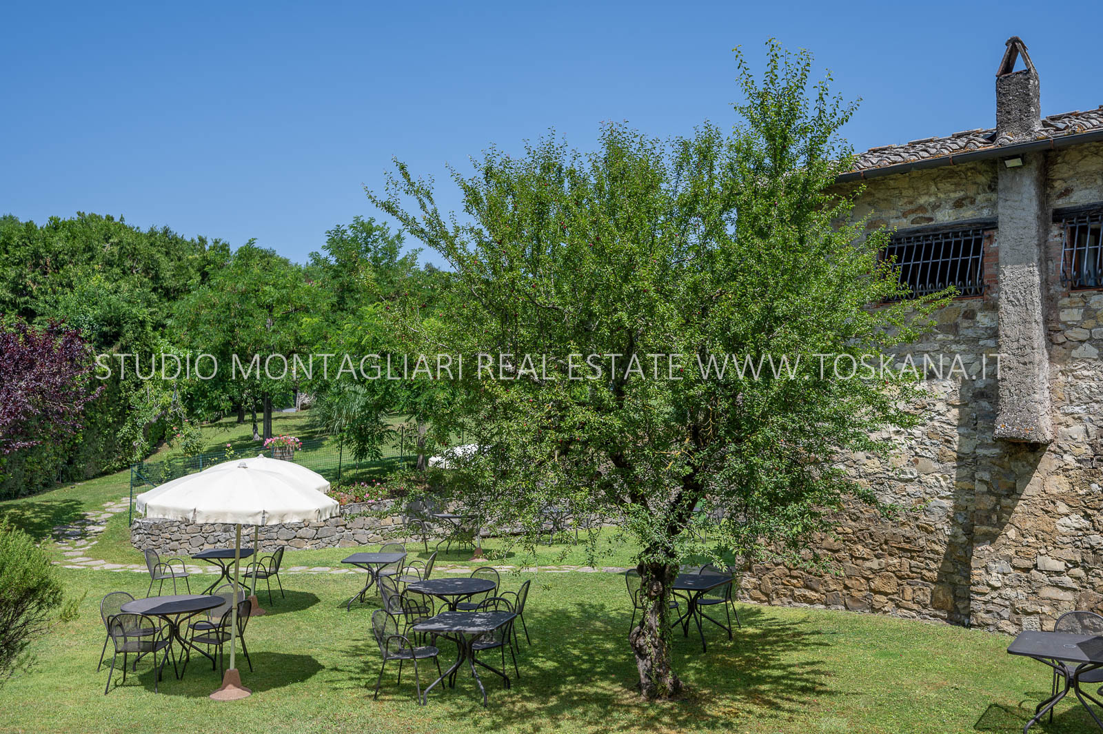 La proprietà è composta da una casa principale risalente al 1400, un fienile separato e una porzione di un edificio di costruzione recente. Immersa in un giardino curato con piscina, la proprietà offre 19 camere da letto con bagno privato, una sala ricevimenti e una sala colazioni. Tutte le camere mantengono l'originale carattere toscano, con pavimenti in cotto e soffitti con travi in legno, e sono dotate di aria condizionata.