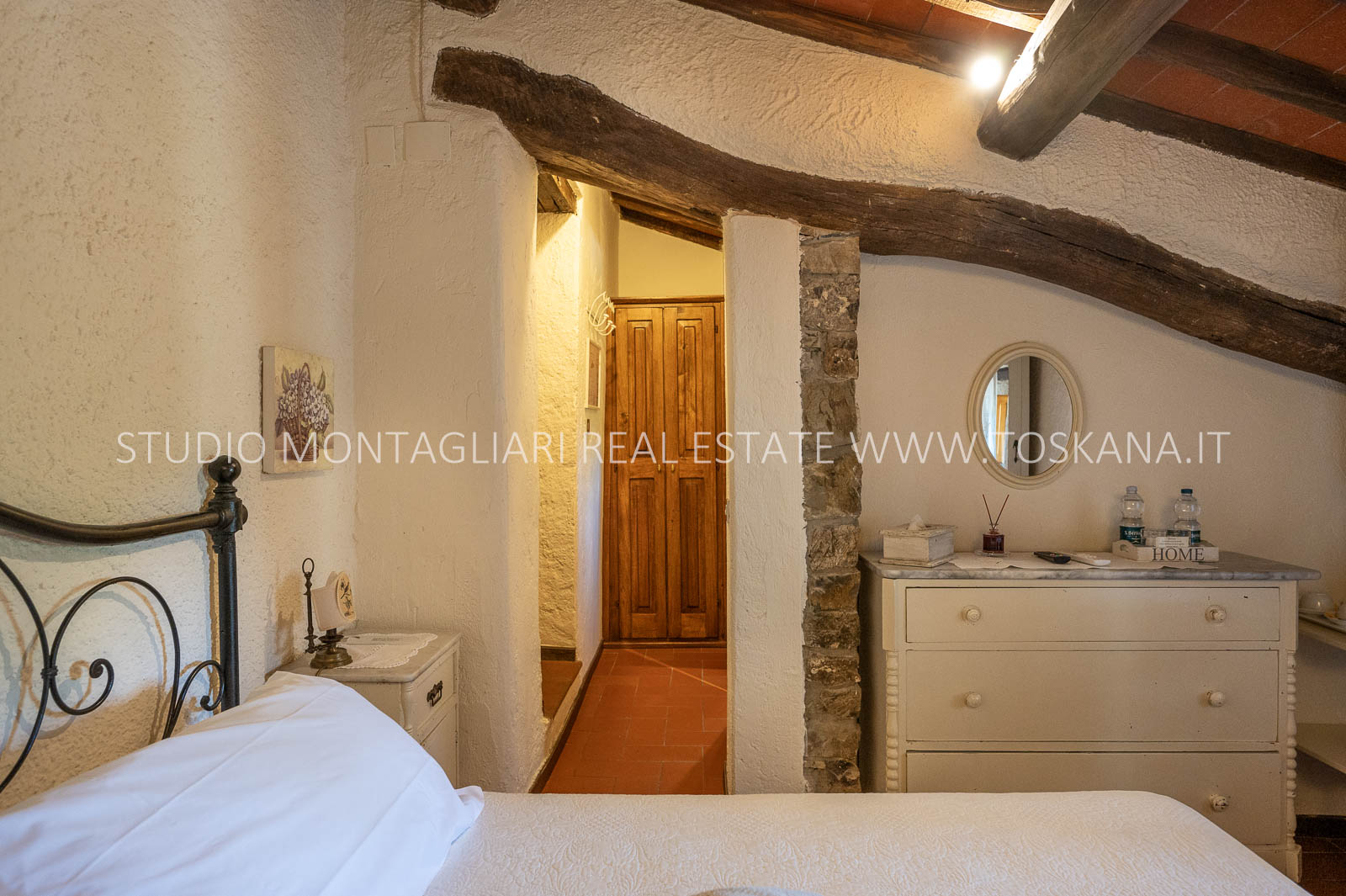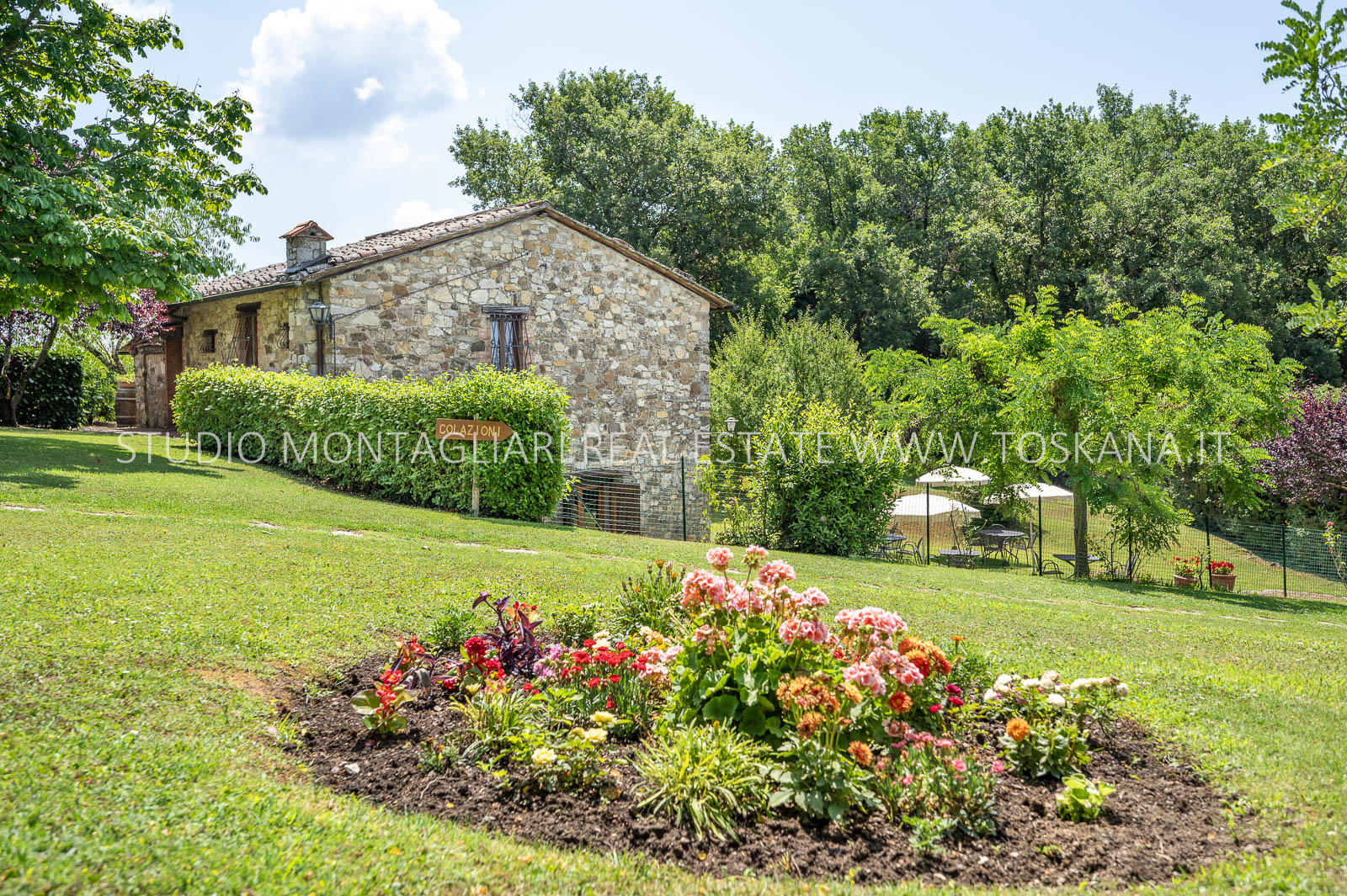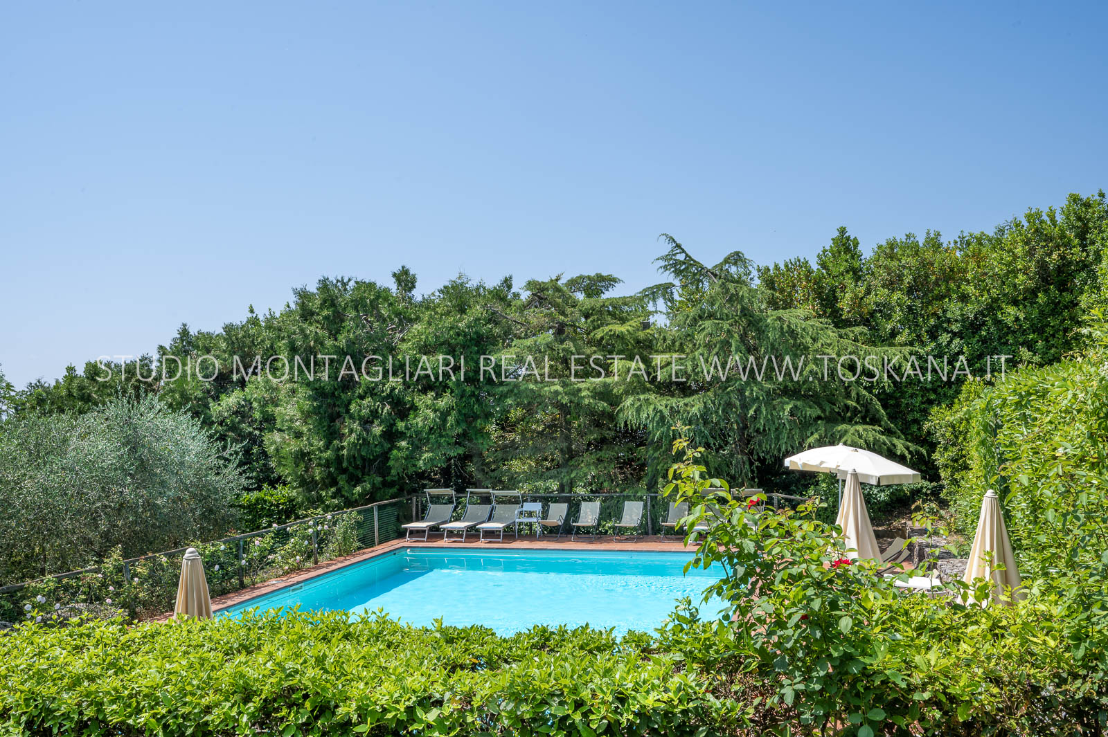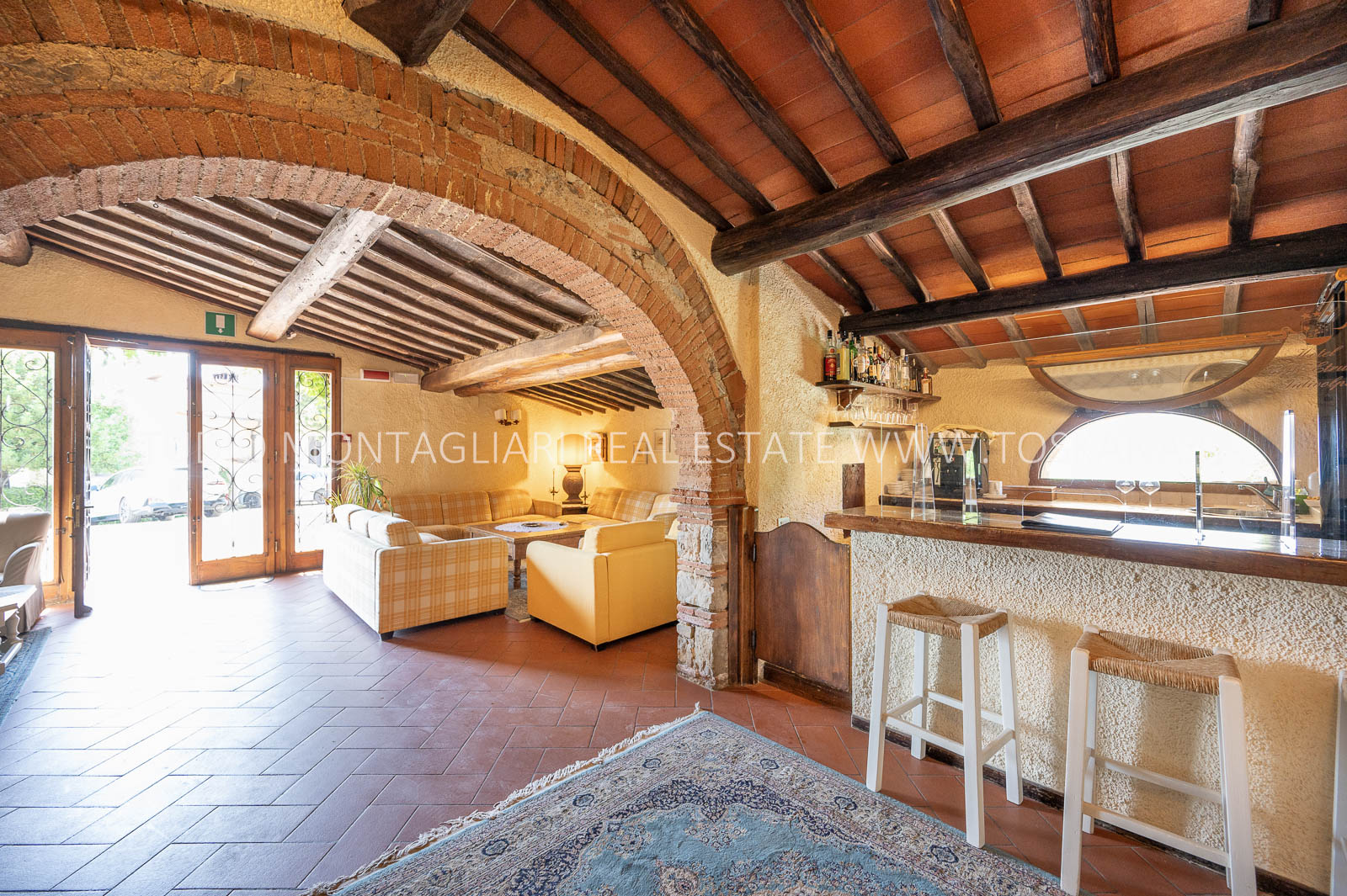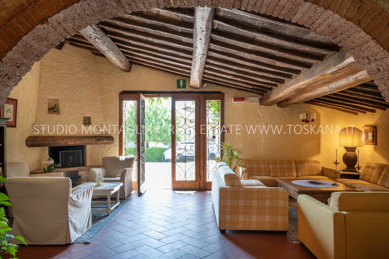 La proprietà è composta da una casa principale risalente al 1400, un fienile separato e una porzione di un edificio di costruzione recente. Immersa in un giardino curato con piscina, la proprietà offre 19 camere da letto con bagno privato, una sala ricevimenti e una sala colazioni. Tutte le camere mantengono l'originale carattere toscano, con pavimenti in cotto e soffitti con travi in legno, e sono dotate di aria condizionata.