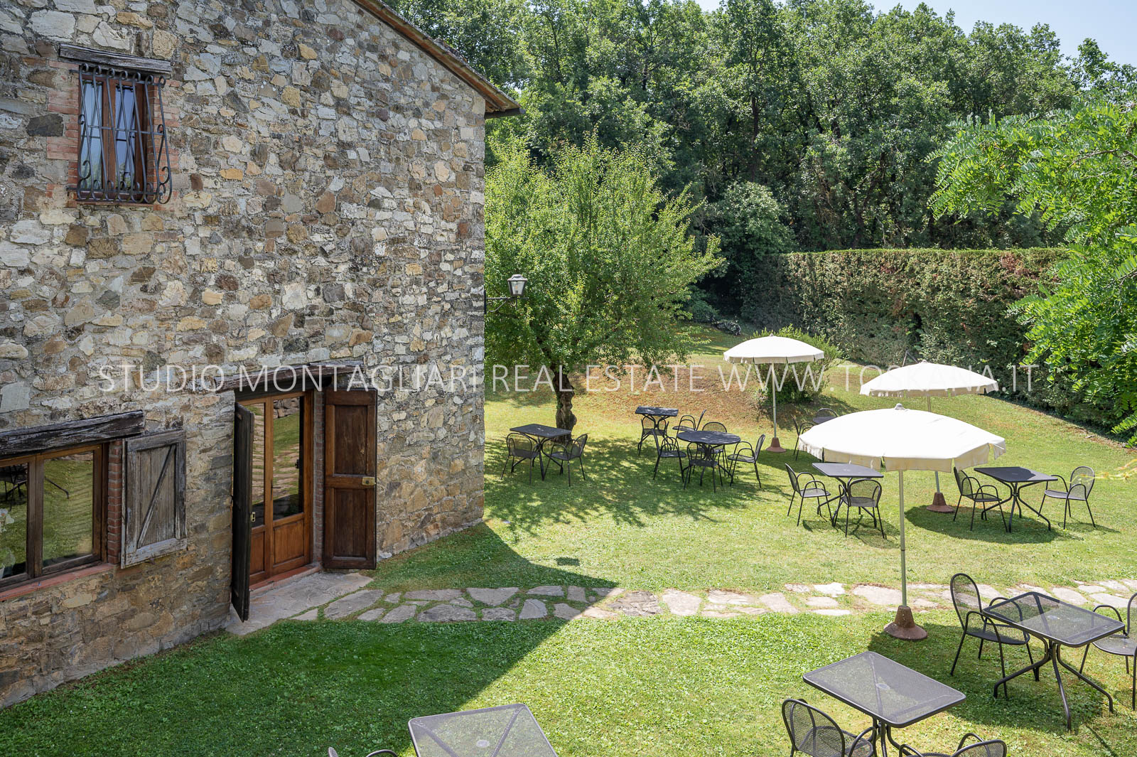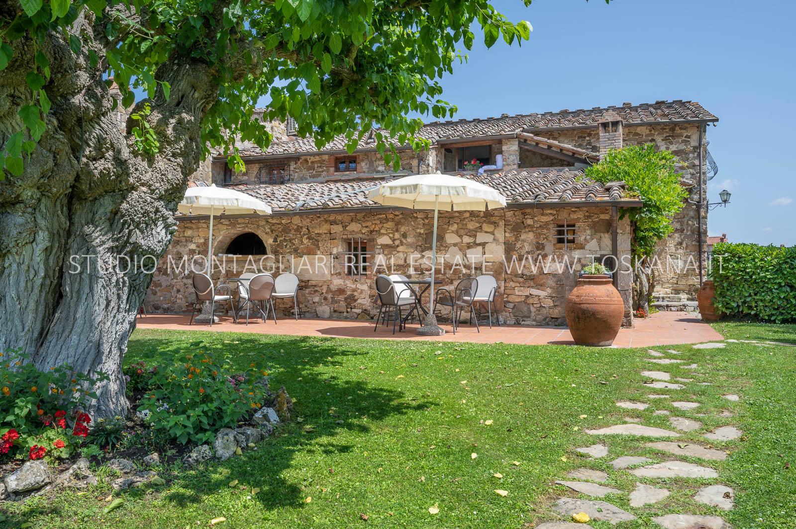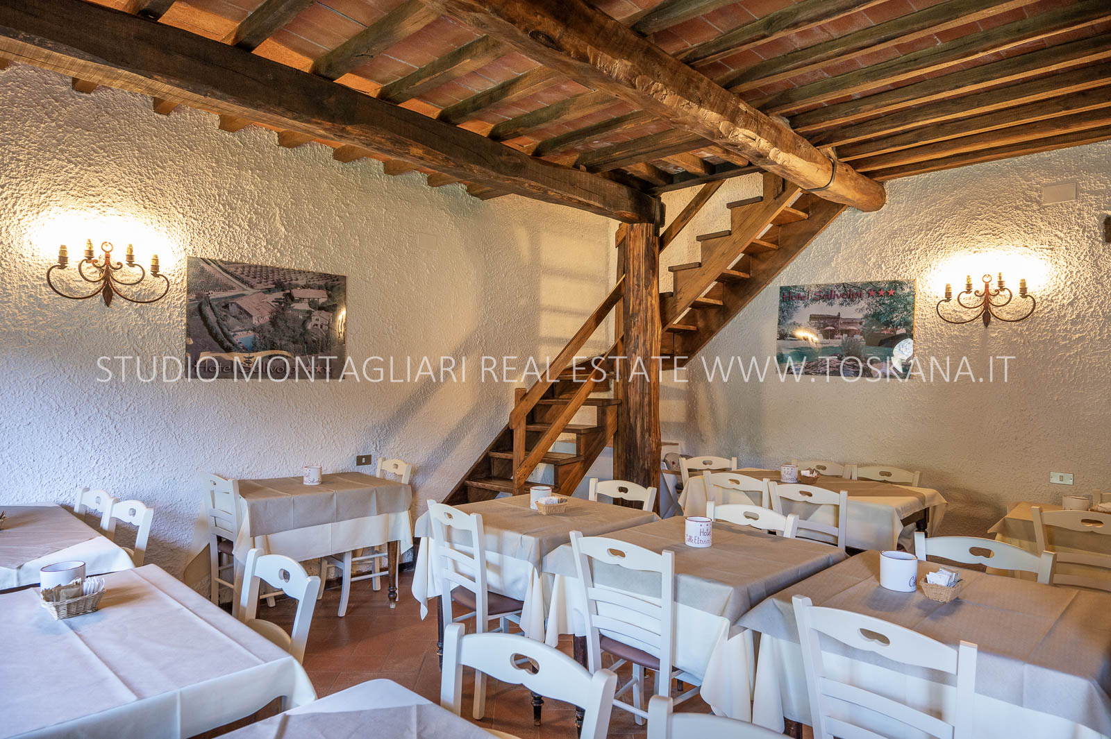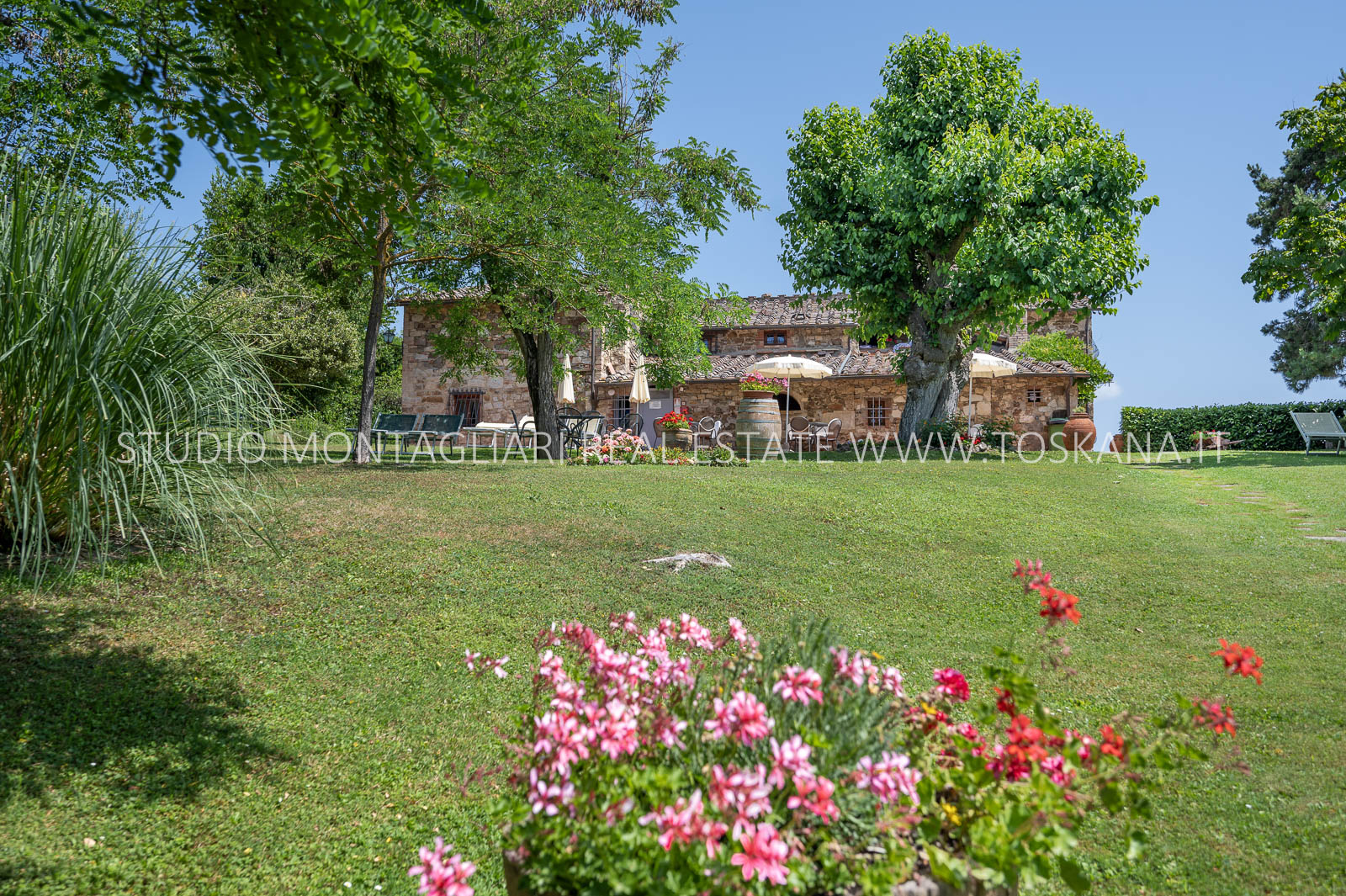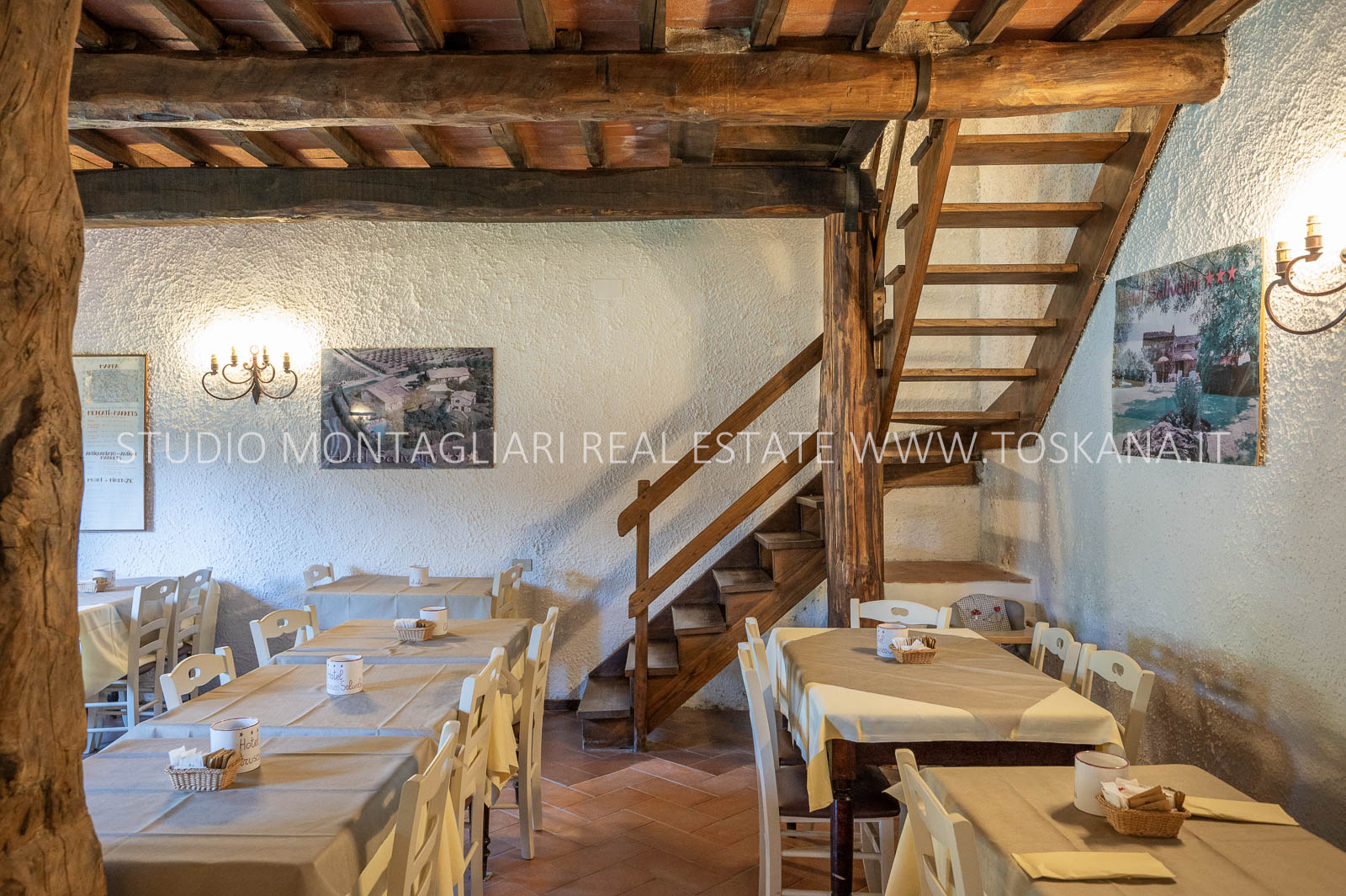La proprietà è composta da una casa principale risalente al 1400, un fienile separato e una porzione di un edificio di costruzione recente. Immersa in un giardino curato con piscina, la proprietà offre 19 camere da letto con bagno privato, una sala ricevimenti e una sala colazioni. Tutte le camere mantengono l'originale carattere toscano, con pavimenti in cotto e soffitti con travi in legno, e sono dotate di aria condizionata.