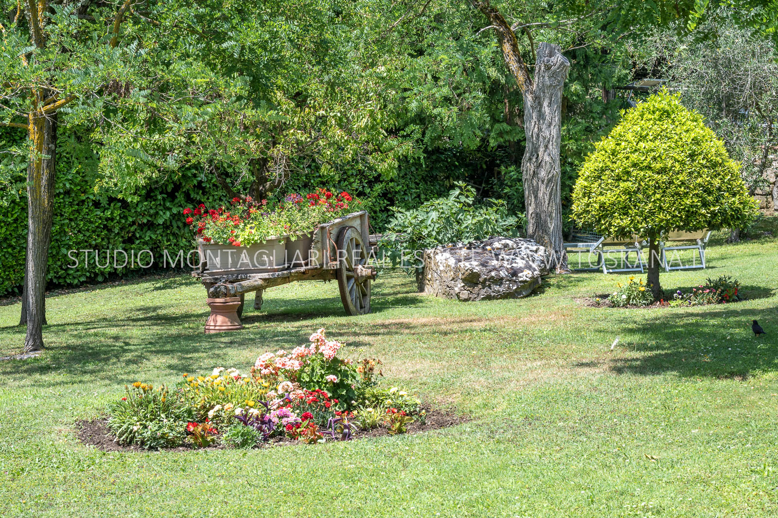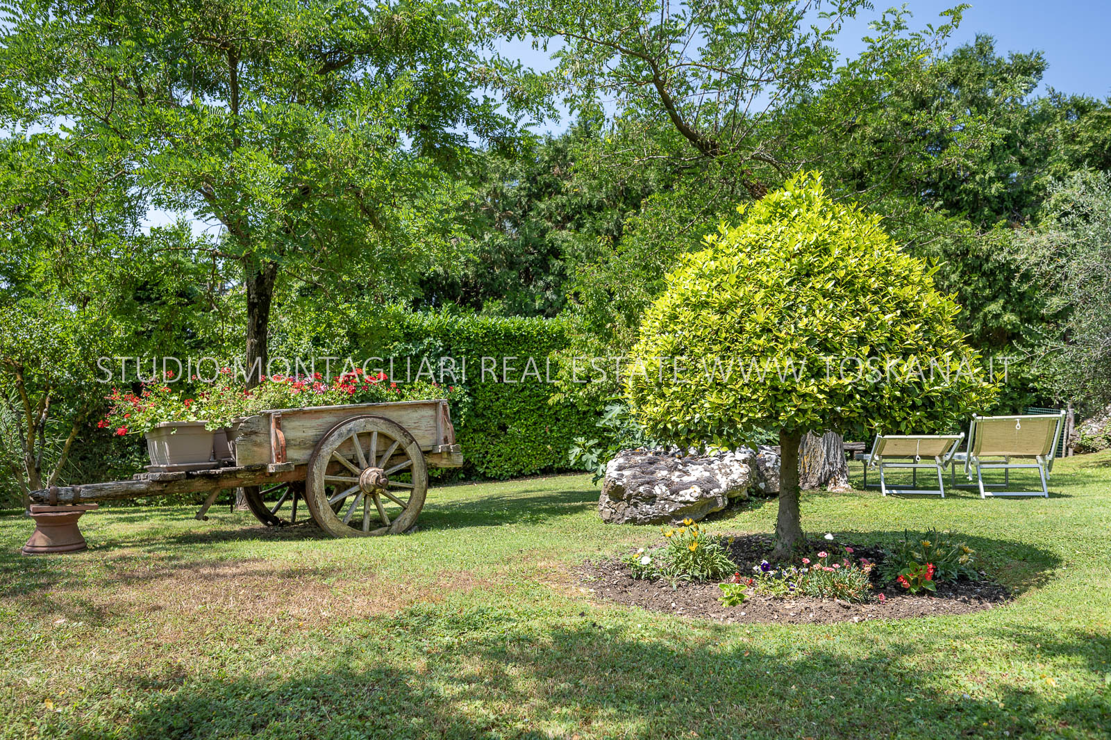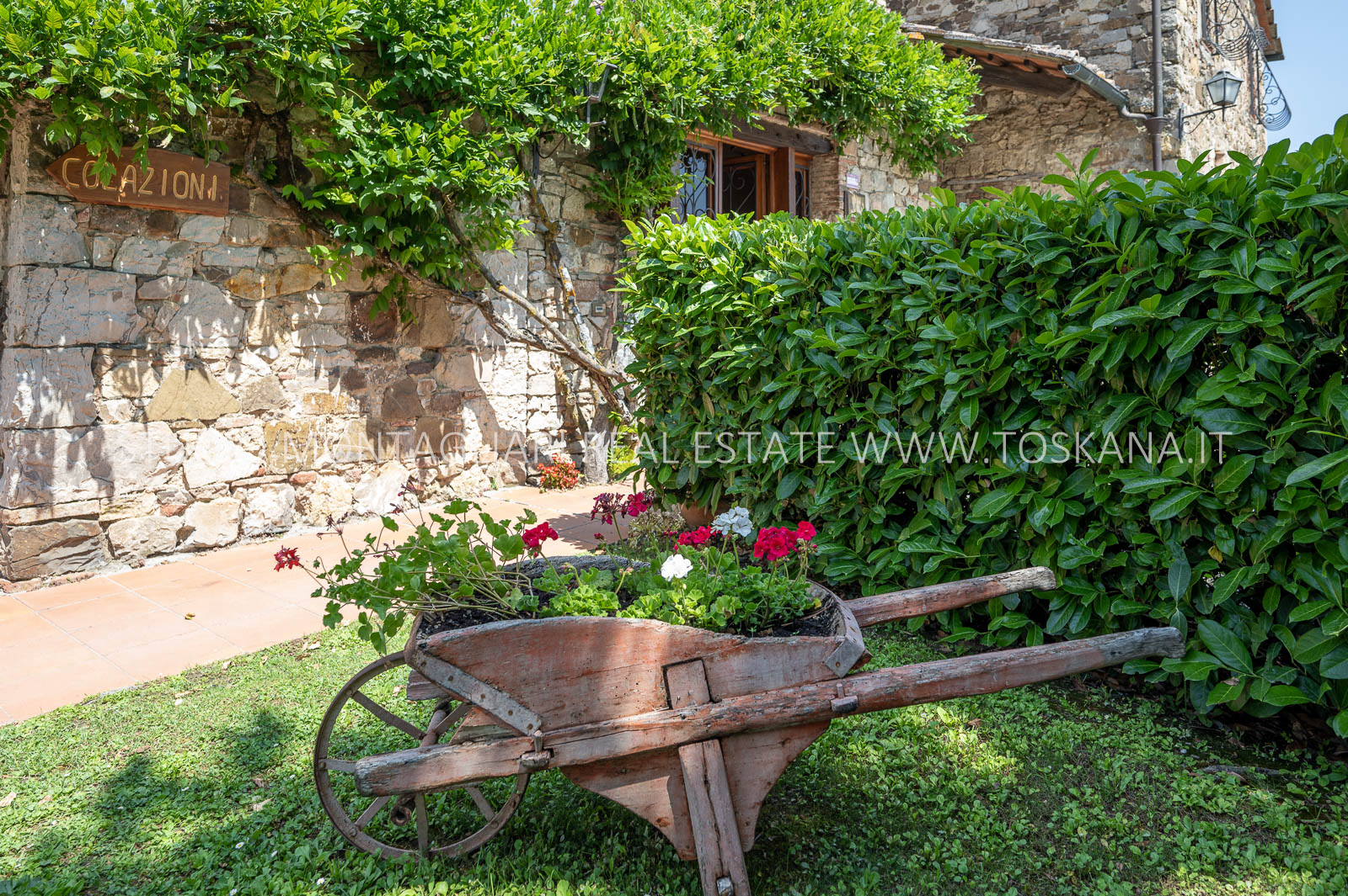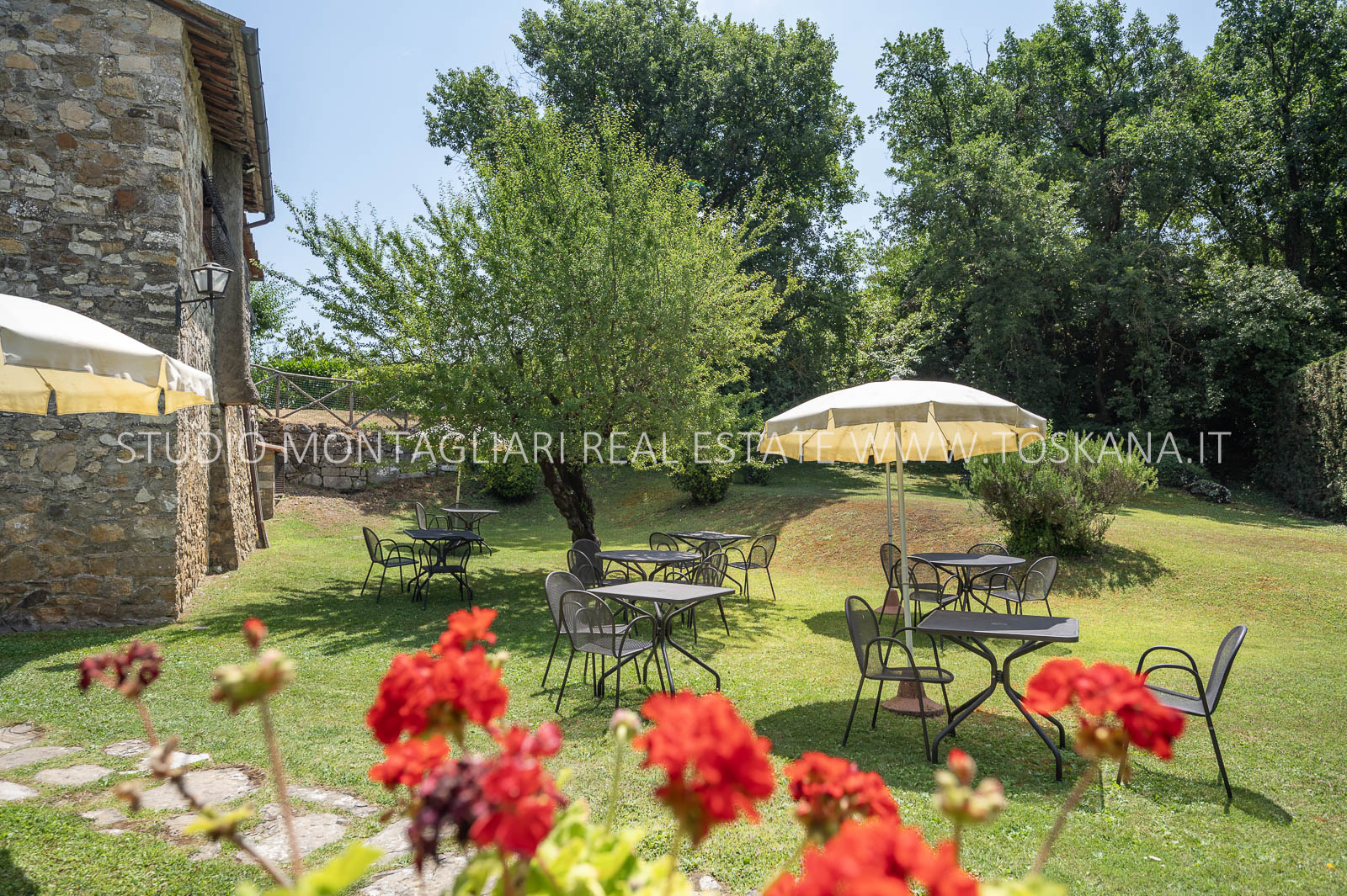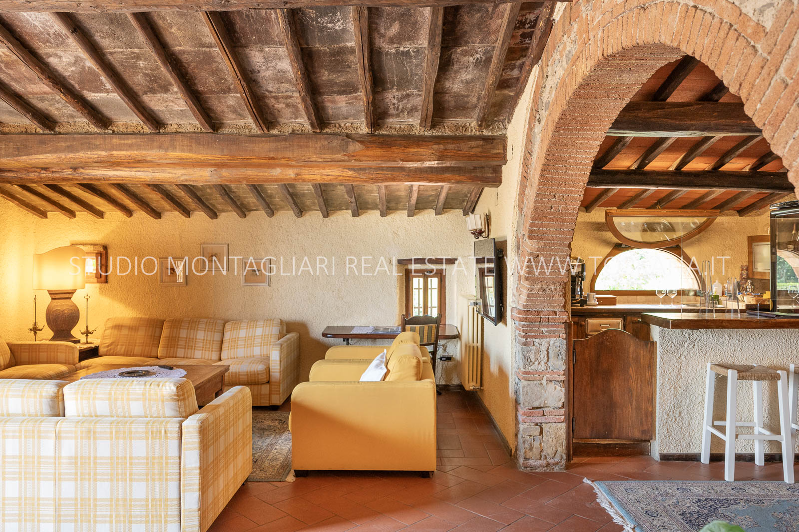 La proprietà è composta da una casa principale risalente al 1400, un fienile separato e una porzione di un edificio di costruzione recente. Immersa in un giardino curato con piscina, la proprietà offre 19 camere da letto con bagno privato, una sala ricevimenti e una sala colazioni. Tutte le camere mantengono l'originale carattere toscano, con pavimenti in cotto e soffitti con travi in legno, e sono dotate di aria condizionata.