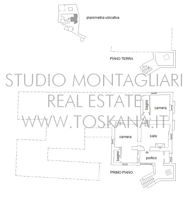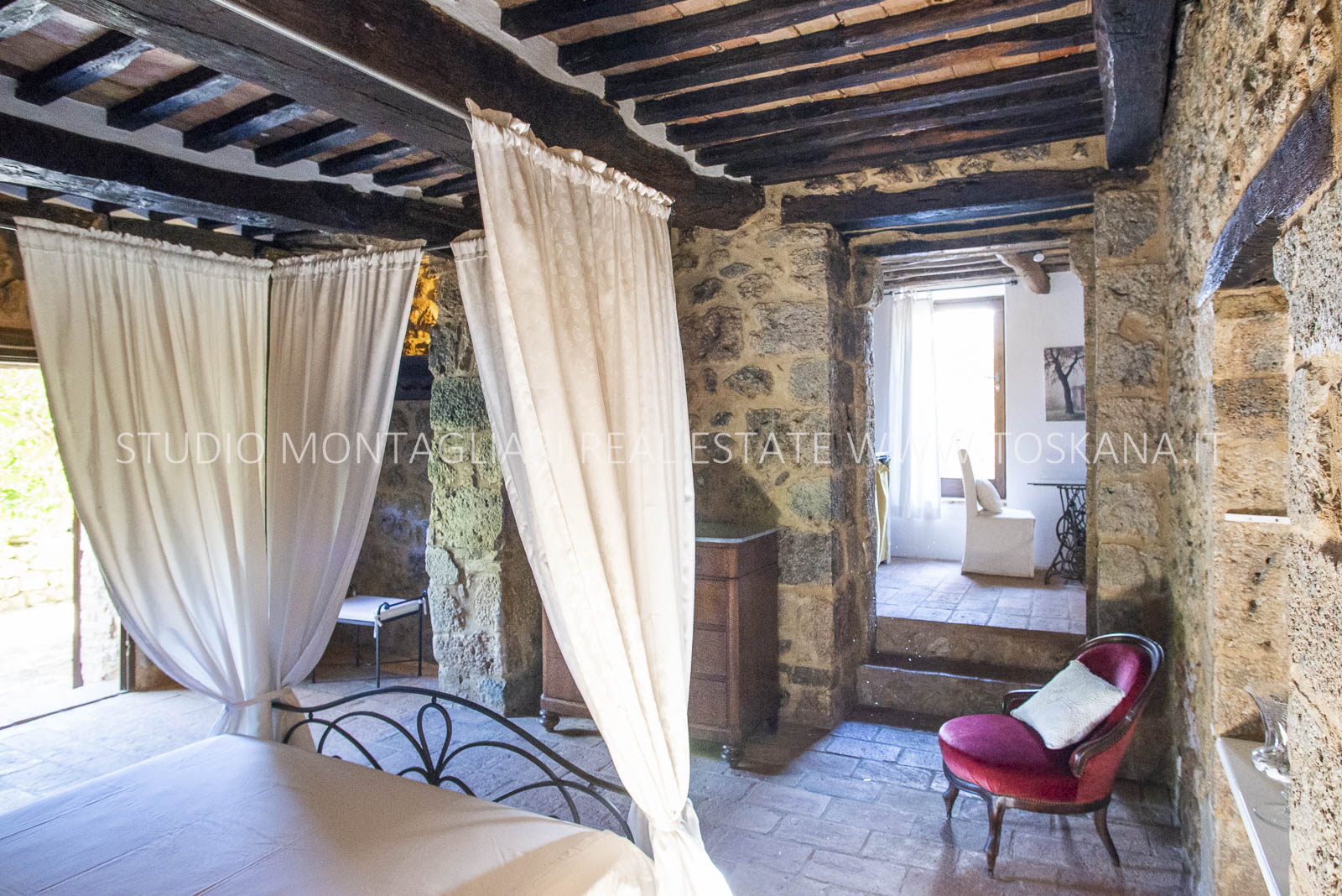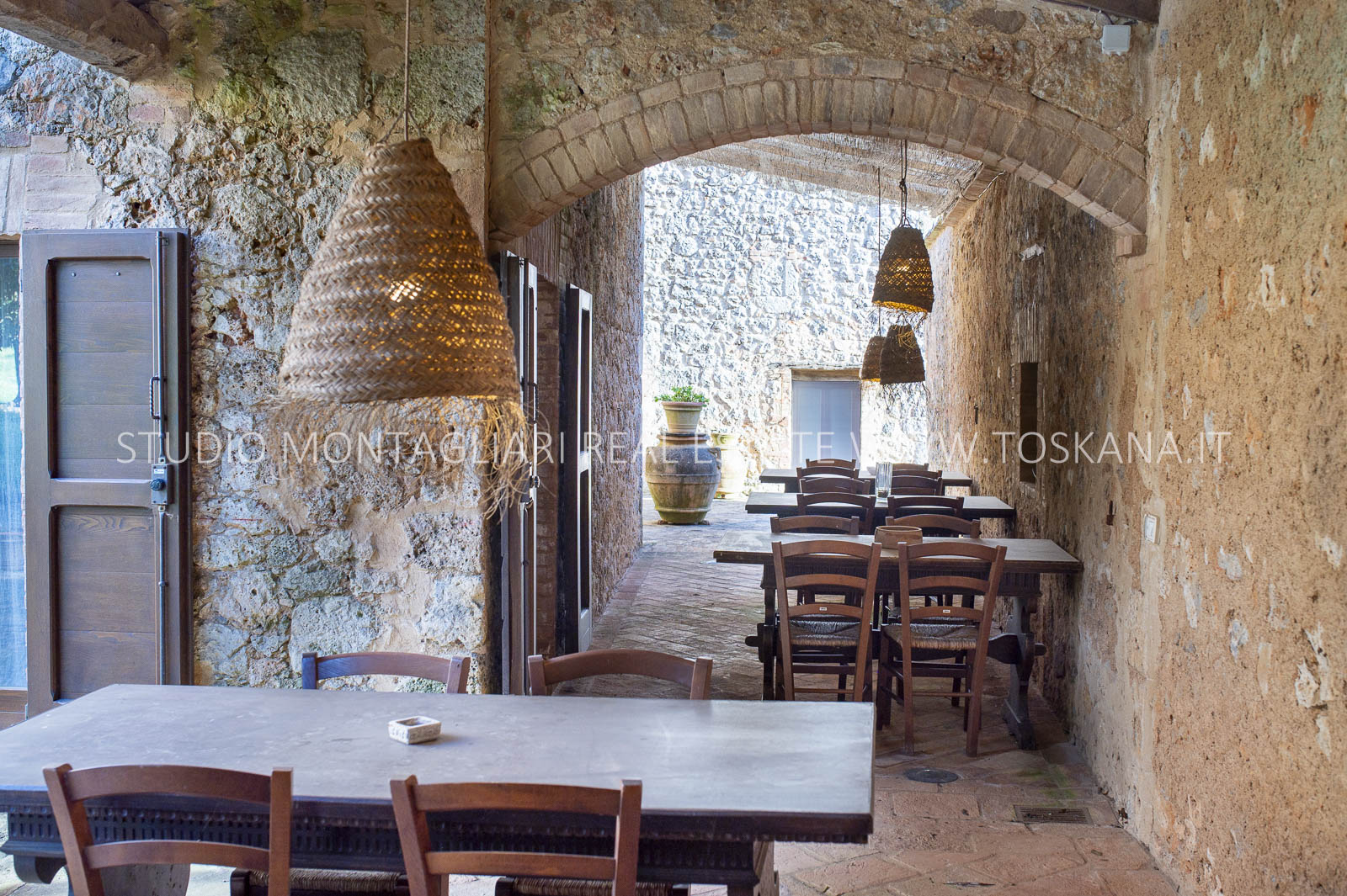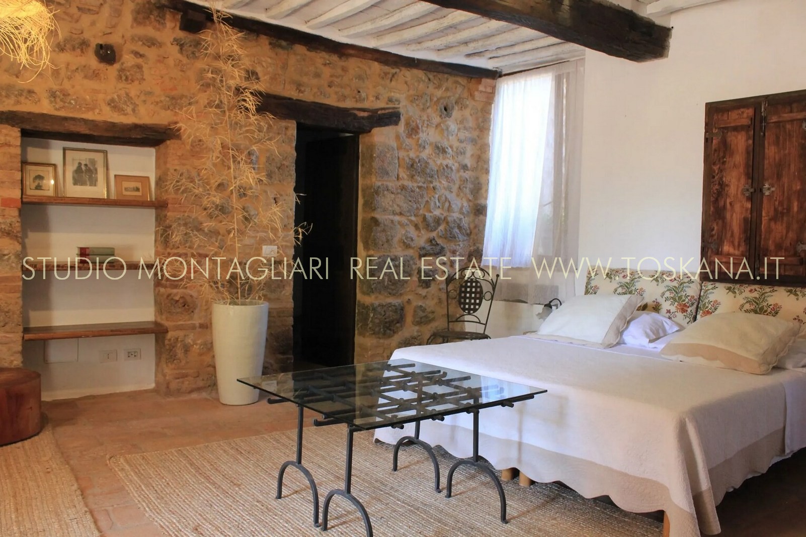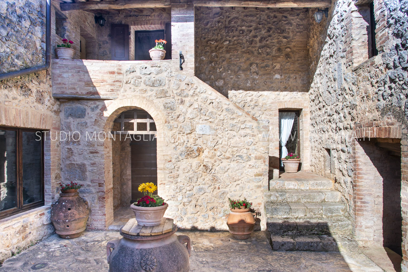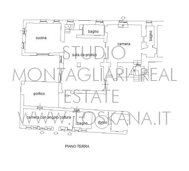 La superficie netta abitabile è di 900 mq è suddivisa su 4 edifici. Vi sono presenti ampi saloni con camini, ed un totale di 12 camere da letto e 13 bagni, una cucina professionale attrezzata per gruppi e cucine singole in caso di uso come appartamenti. Da notare inoltre sono la ampia sala con camino al primo piano, un cortile con portico, un antico forno in pietra e un’ampia terrazza pavimentata.