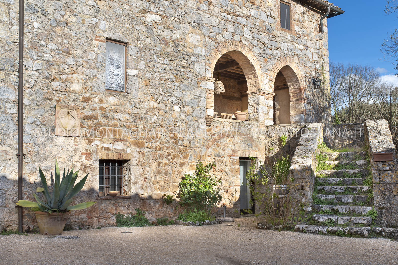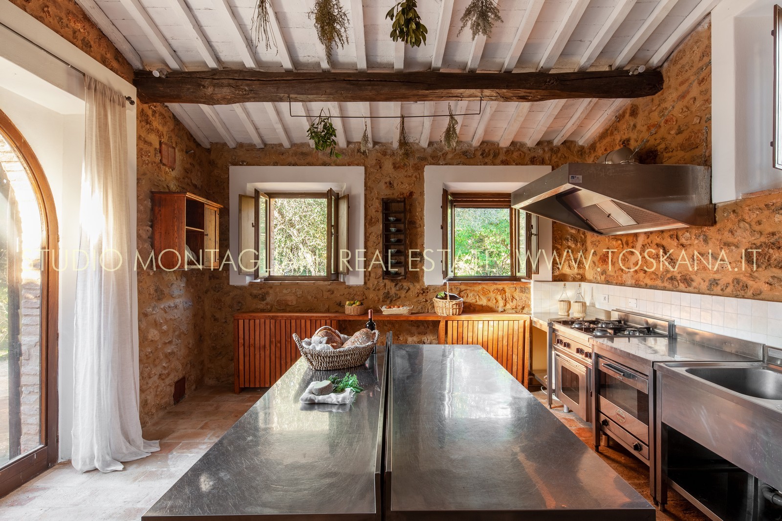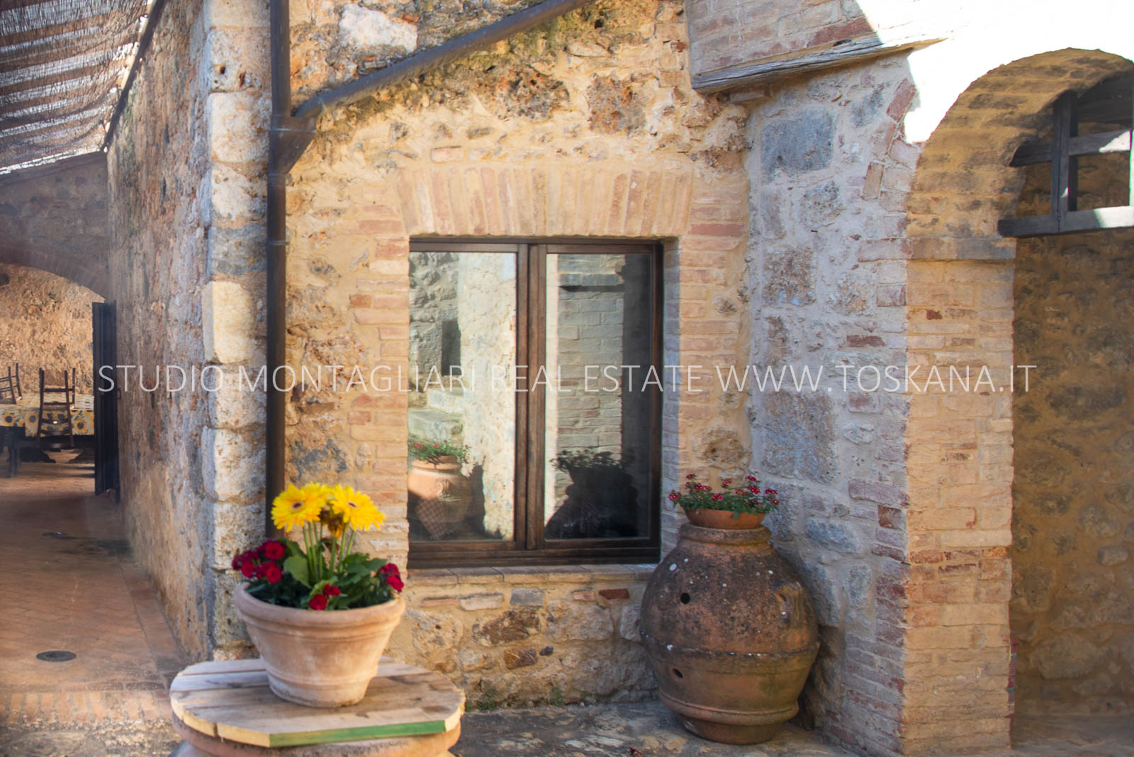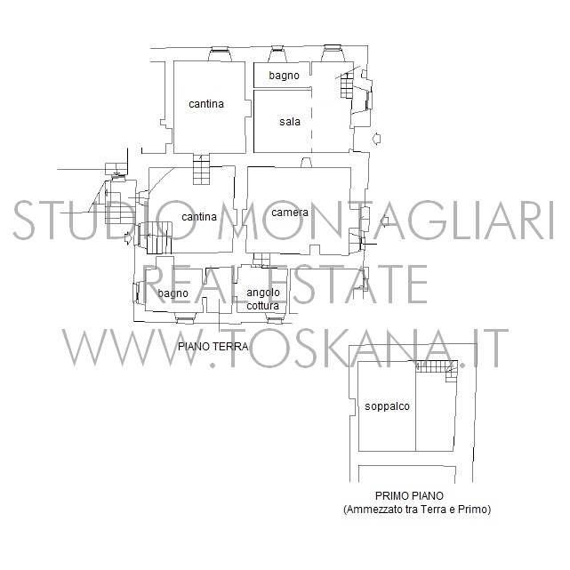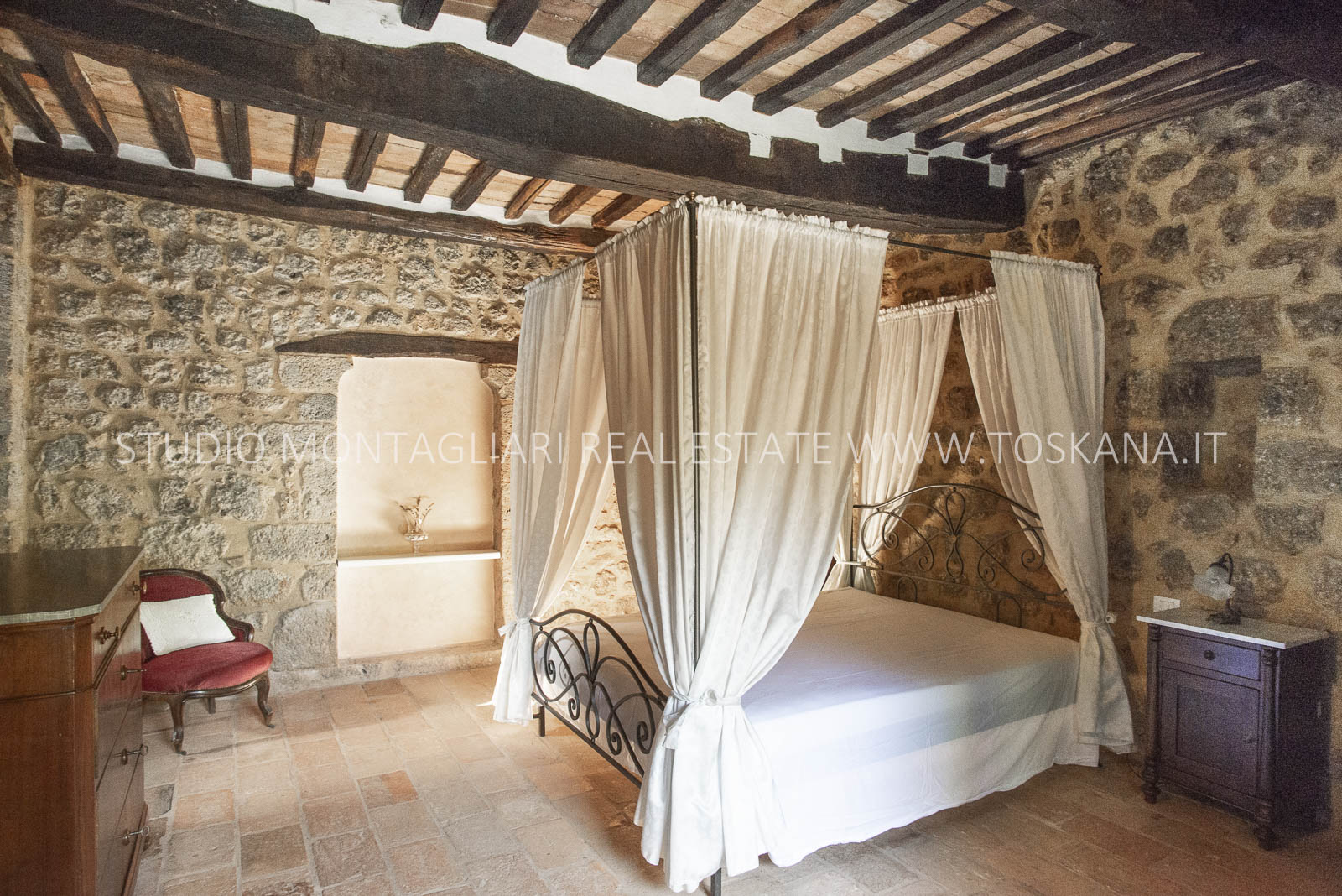 La superficie netta abitabile è di 900 mq è suddivisa su 4 edifici. Vi sono presenti ampi saloni con camini, ed un totale di 12 camere da letto e 13 bagni, una cucina professionale attrezzata per gruppi e cucine singole in caso di uso come appartamenti. Da notare inoltre sono la ampia sala con camino al primo piano, un cortile con portico, un antico forno in pietra e un’ampia terrazza pavimentata.