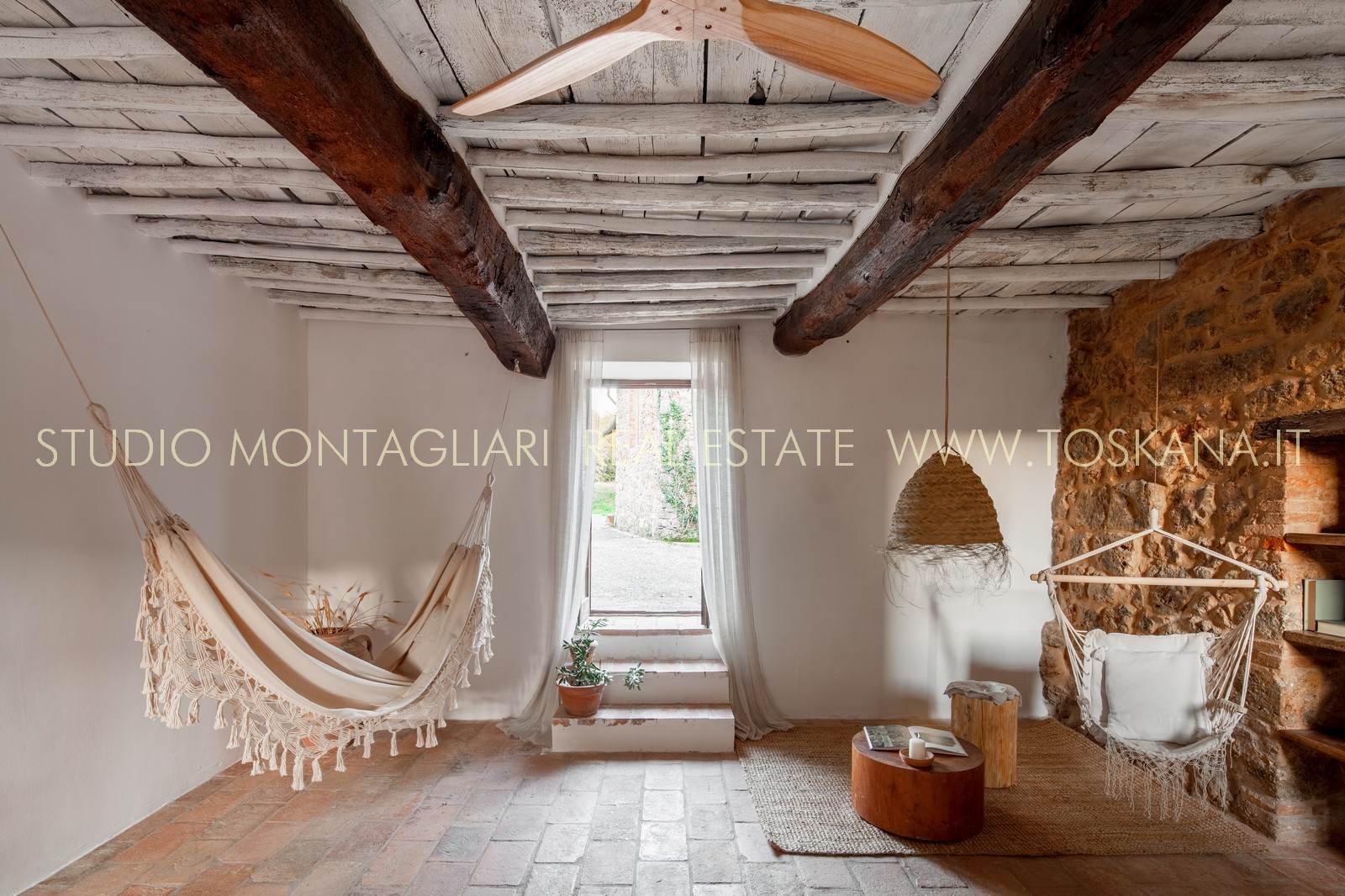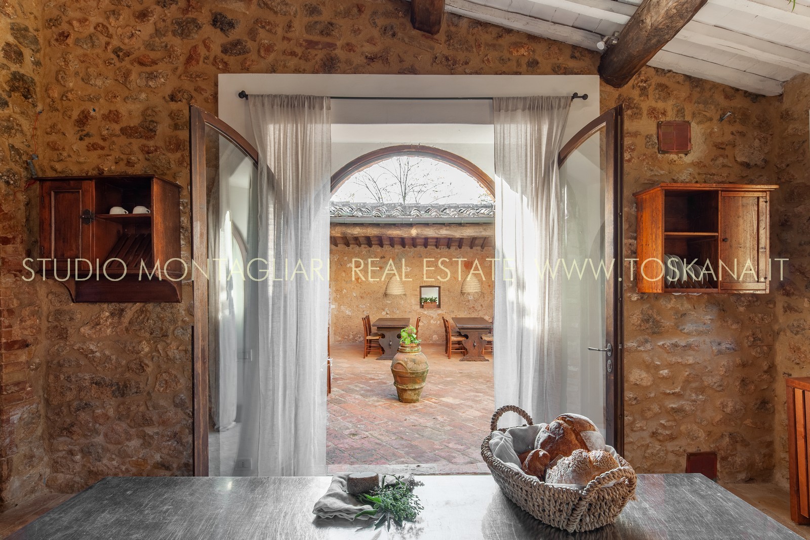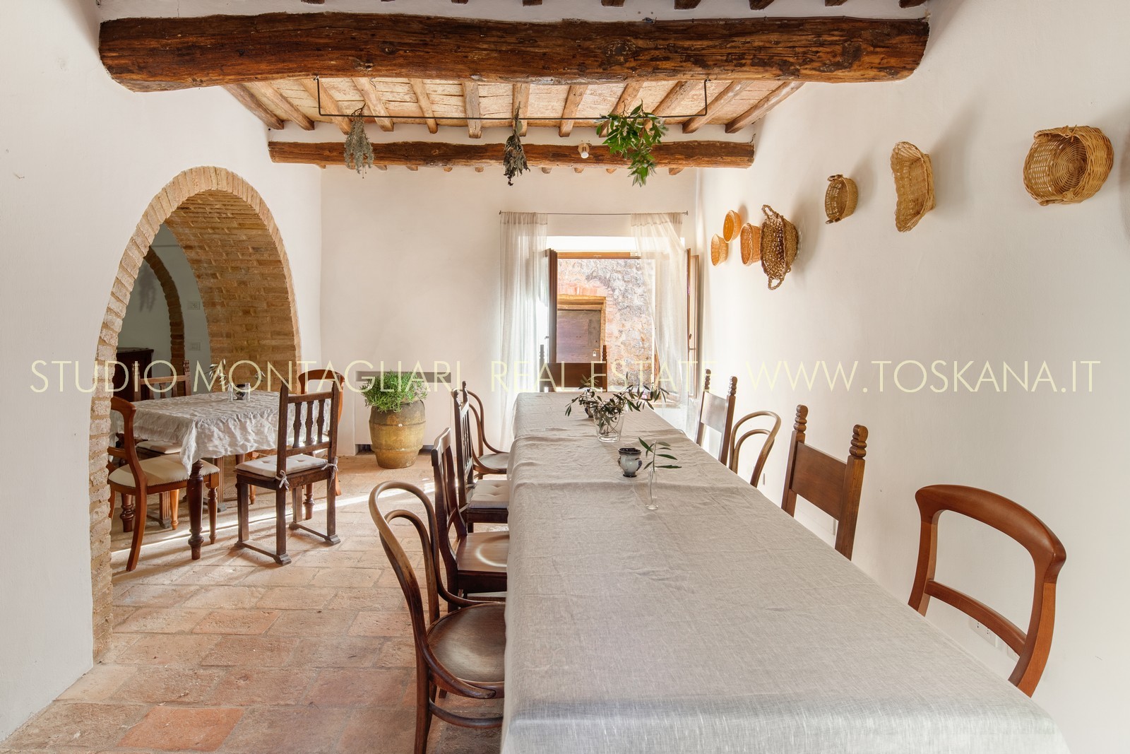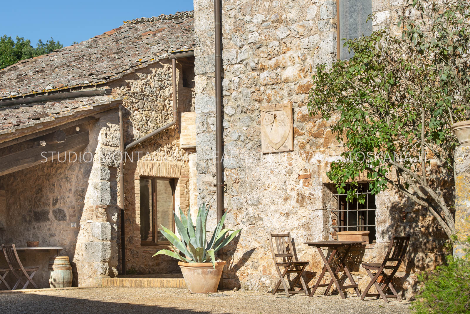 La superficie netta abitabile è di 900 mq è suddivisa su 4 edifici. Vi sono presenti ampi saloni con camini, ed un totale di 12 camere da letto e 13 bagni, una cucina professionale attrezzata per gruppi e cucine singole in caso di uso come appartamenti. Da notare inoltre sono la ampia sala con camino al primo piano, un cortile con portico, un antico forno in pietra e un’ampia terrazza pavimentata.