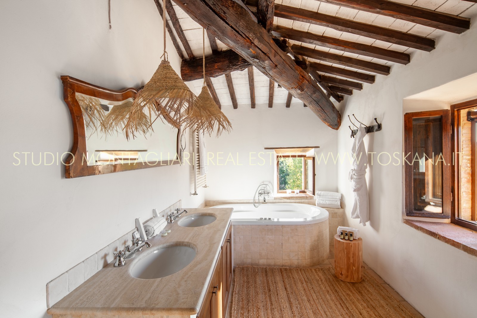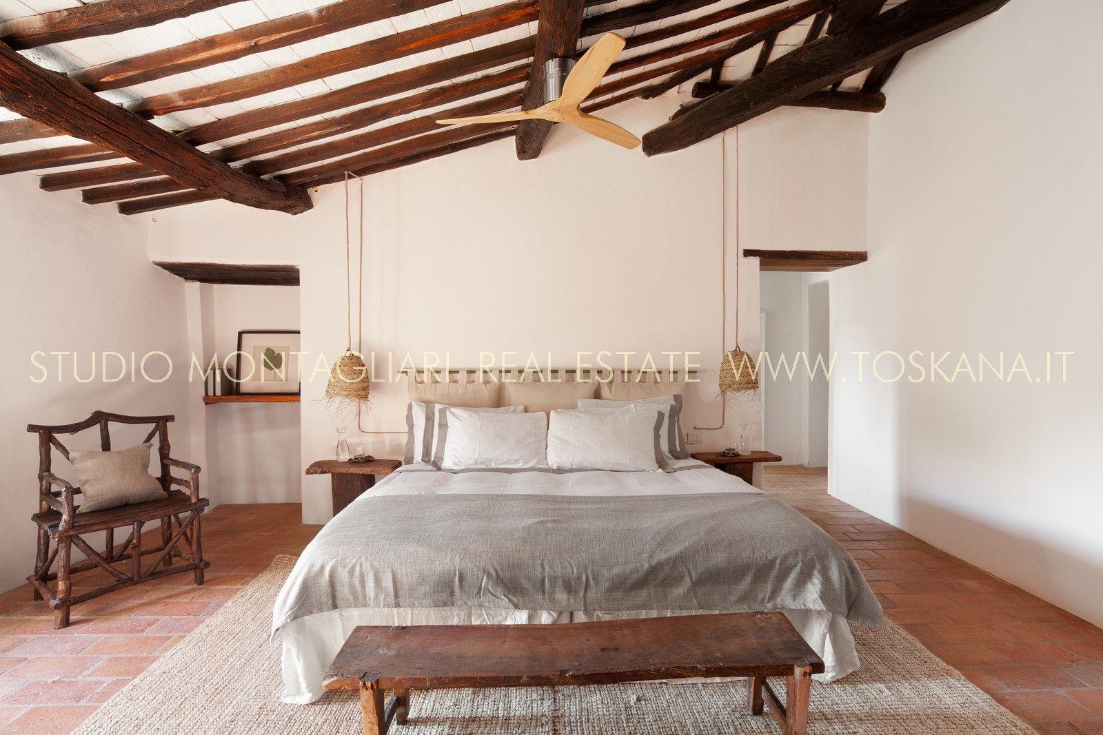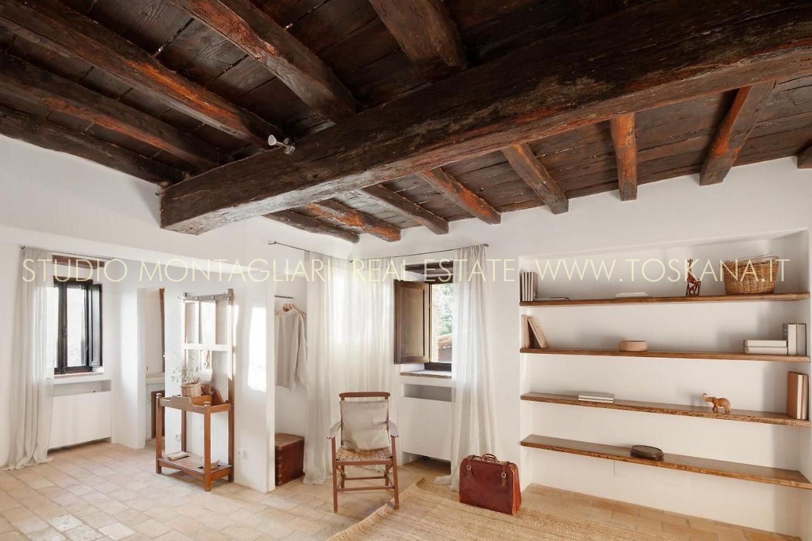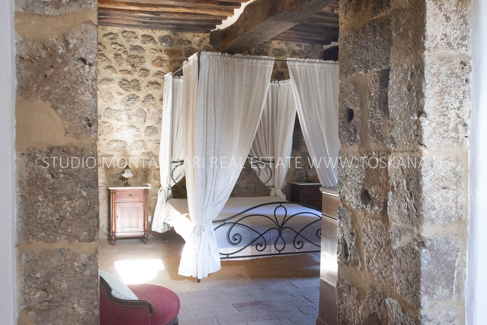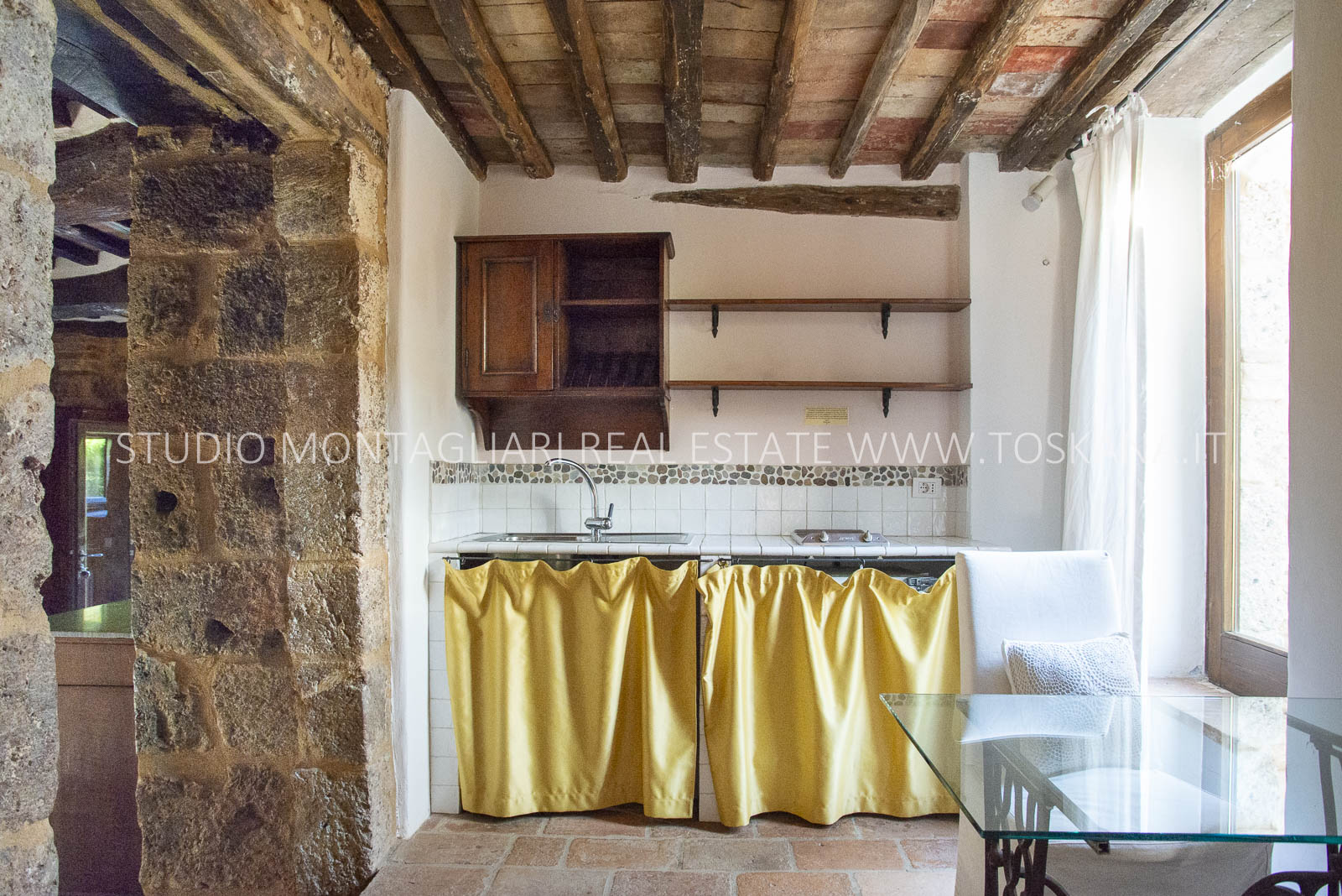 La superficie netta abitabile è di 900 mq è suddivisa su 4 edifici. Vi sono presenti ampi saloni con camini, ed un totale di 12 camere da letto e 13 bagni, una cucina professionale attrezzata per gruppi e cucine singole in caso di uso come appartamenti. Da notare inoltre sono la ampia sala con camino al primo piano, un cortile con portico, un antico forno in pietra e un’ampia terrazza pavimentata.