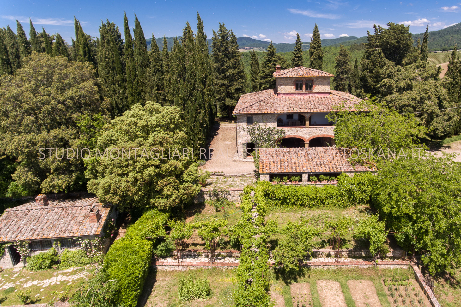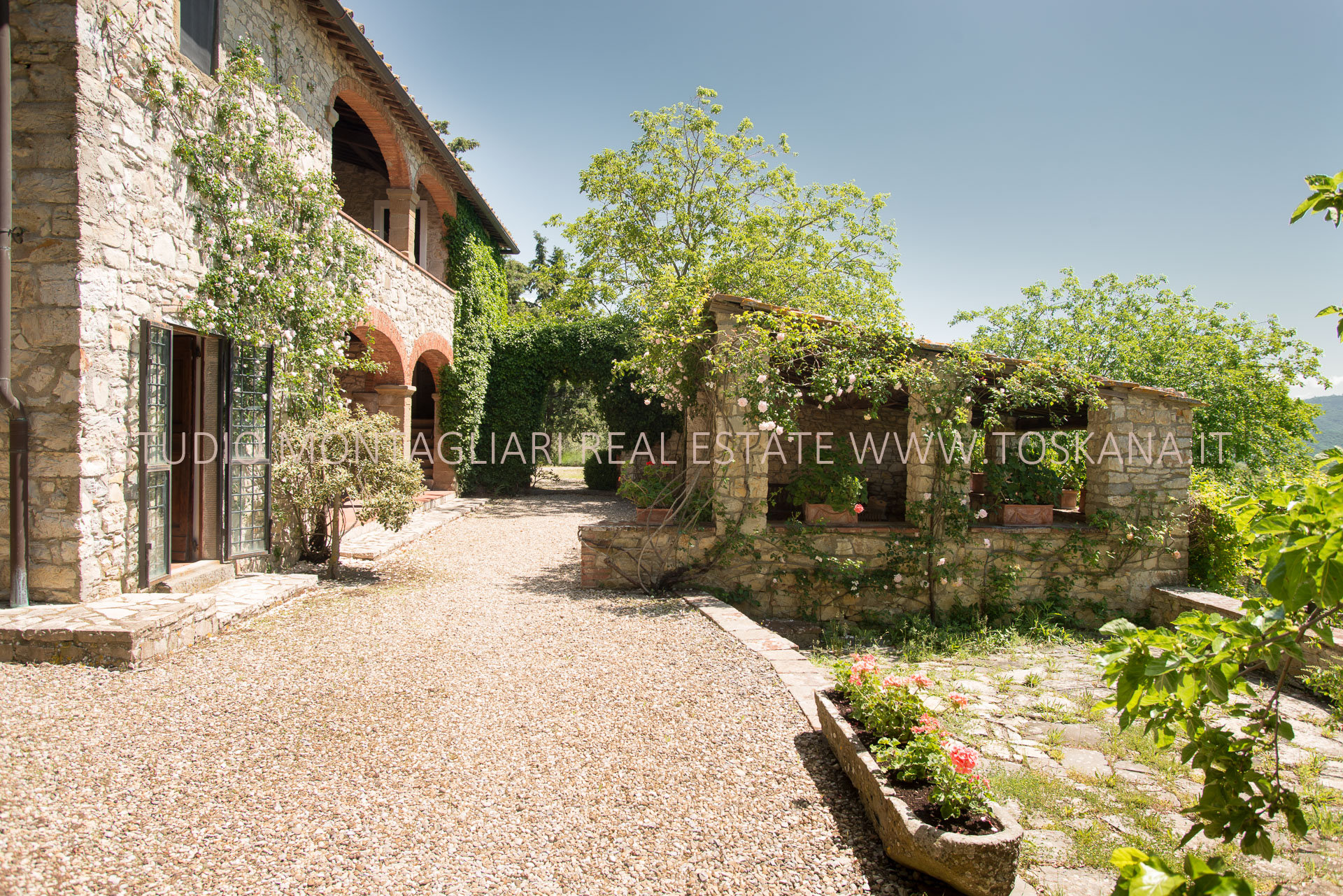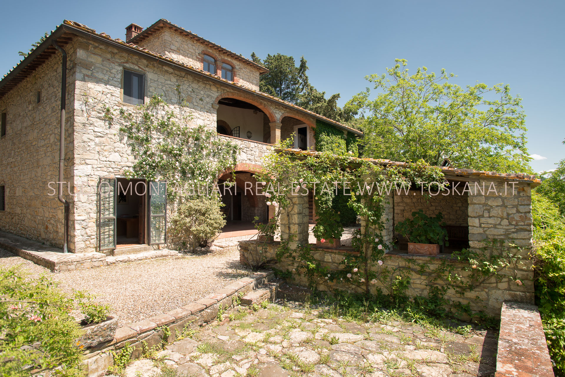 In posizione collinare, questa villa leopoldina di 500 mq nel cuore del Chianti gode di ampie viste sui vigneti e un delizioso borgo medioevale. La proprietà è circondata da 3 ettari di terreno ed è composta da una casa principale, un annesso per ospiti e una piscina. Antichi cipressi fiancheggiano il vialetto di questa classica "Leopoldina" risalente al 1790 con ampie logge al piano terra e una loggia in pietra coperta per mangiare all'aperto.