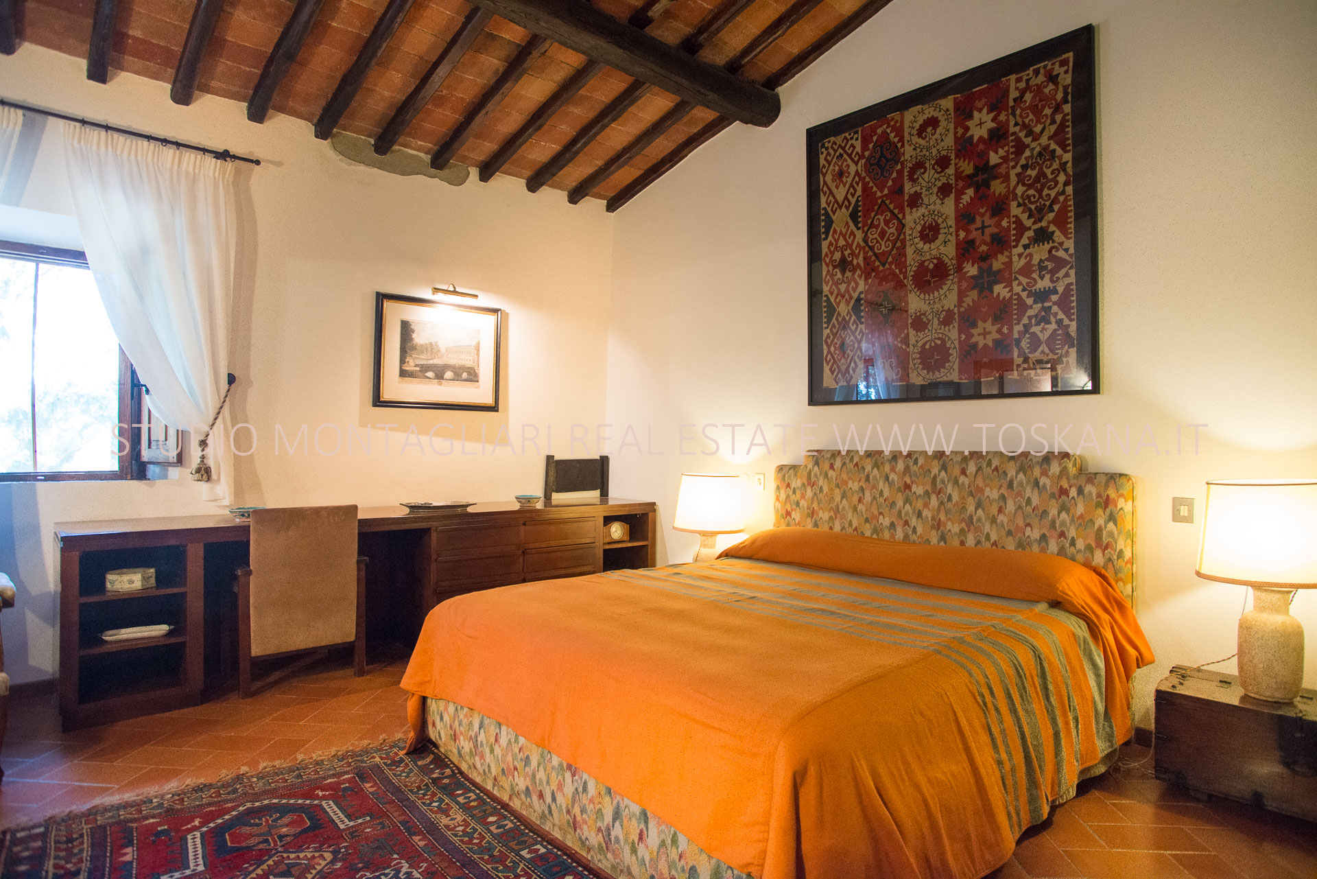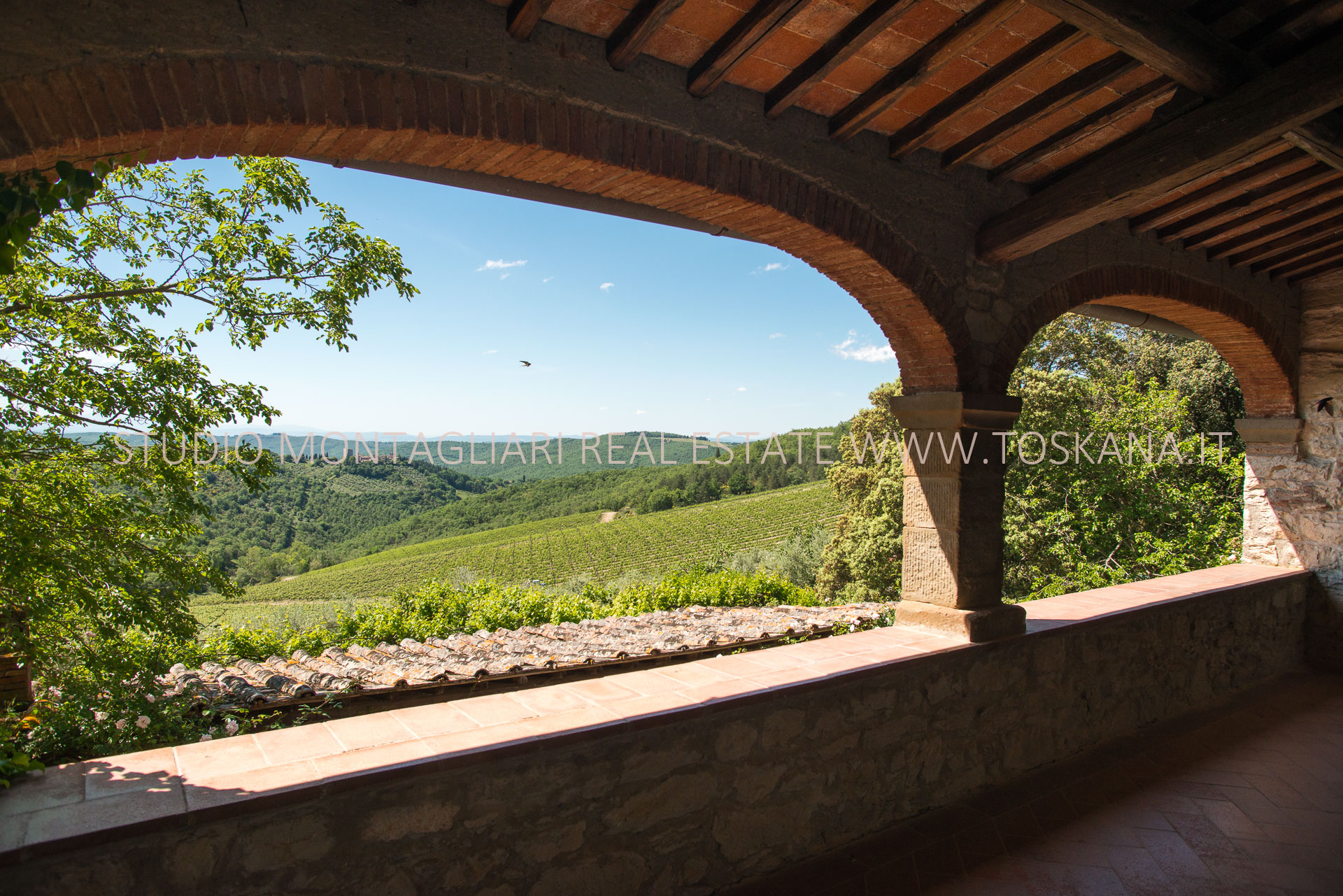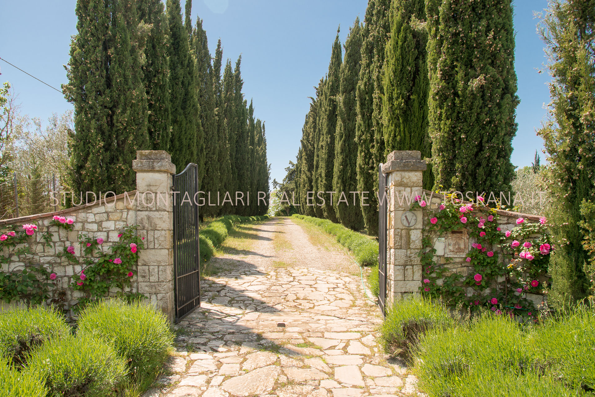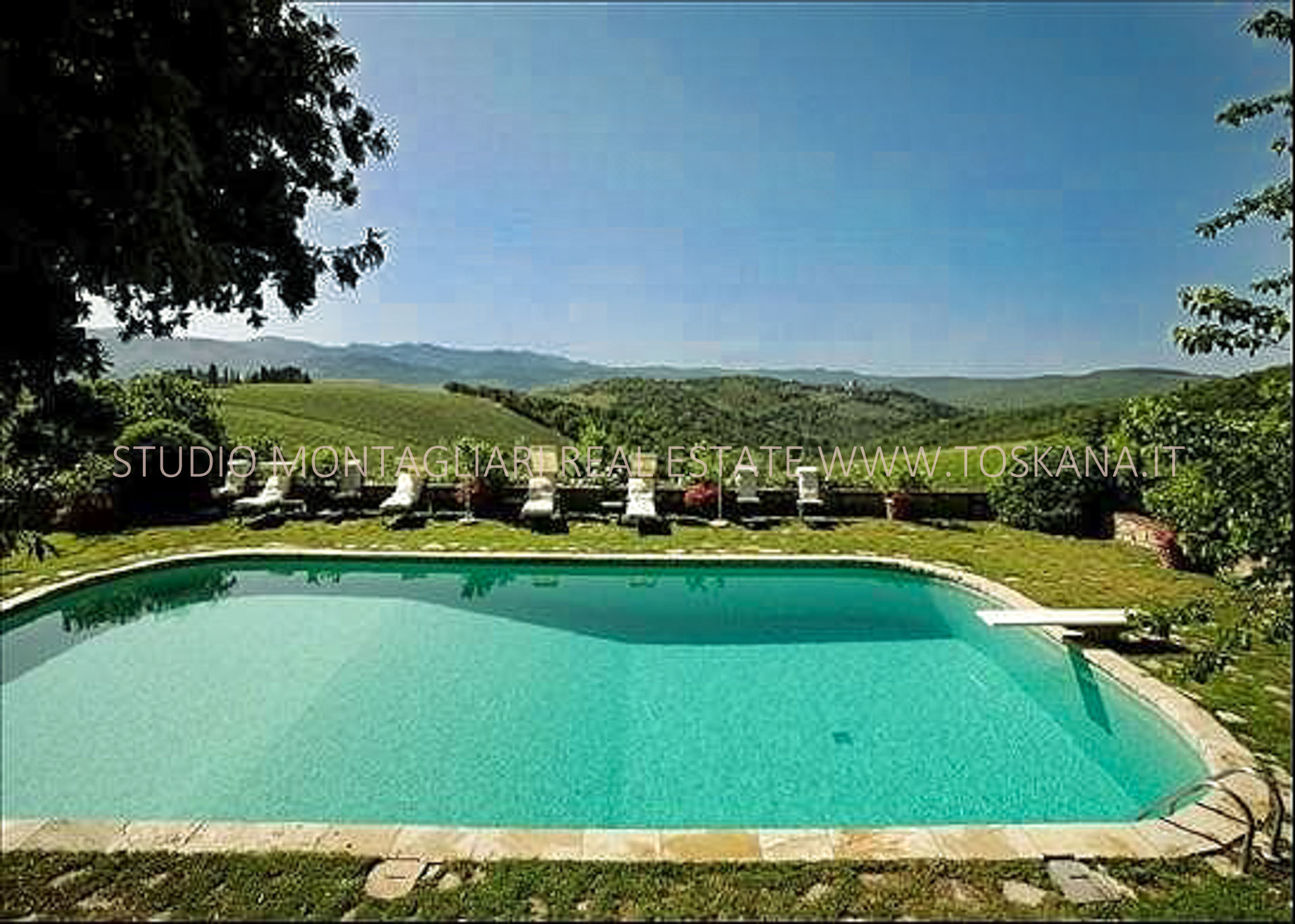In posizione collinare, questa villa leopoldina di 500 mq nel cuore del Chianti gode di ampie viste sui vigneti e un delizioso borgo medioevale. La proprietà è circondata da 3 ettari di terreno ed è composta da una casa principale, un annesso per ospiti e una piscina. Antichi cipressi fiancheggiano il vialetto di questa classica "Leopoldina" risalente al 1790 con ampie logge al piano terra e una loggia in pietra coperta per mangiare all'aperto.