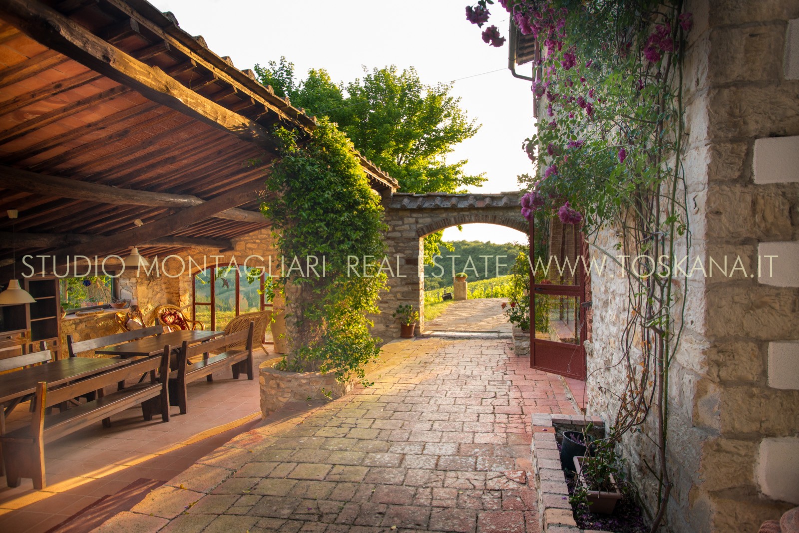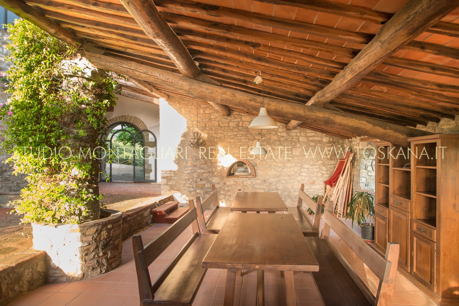 Un cortile interno semi coperto con loggia si presta perfettamente alla vita estiva.