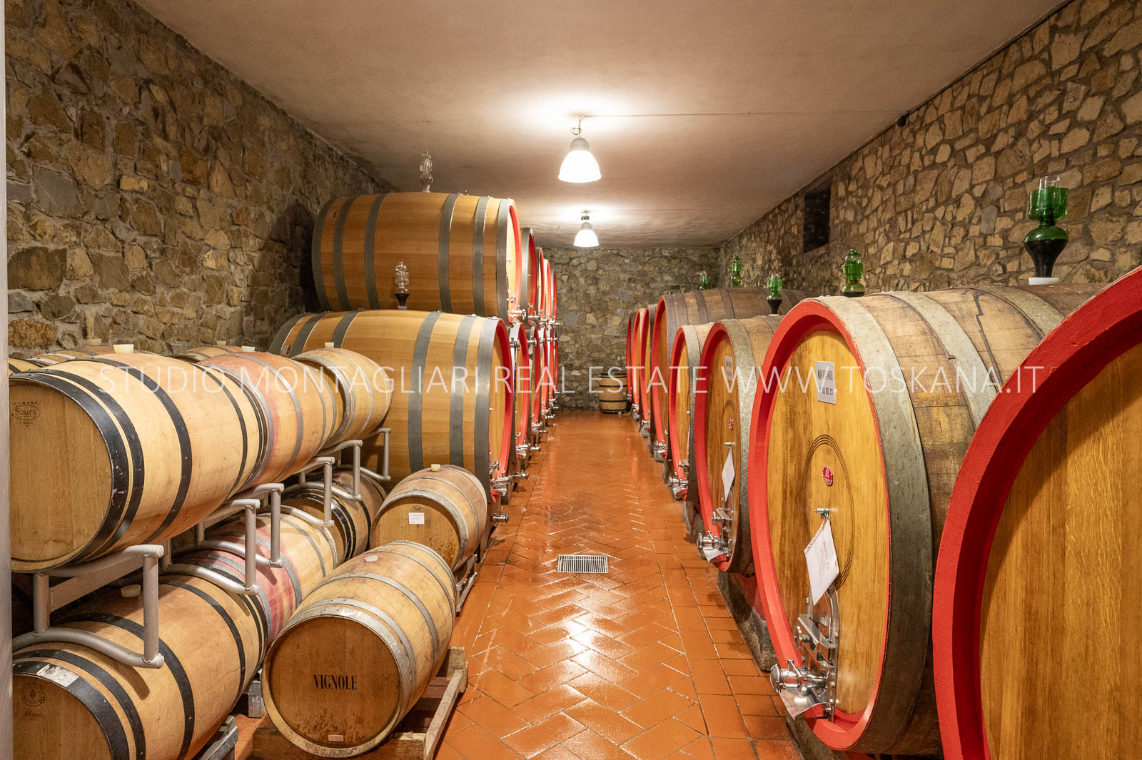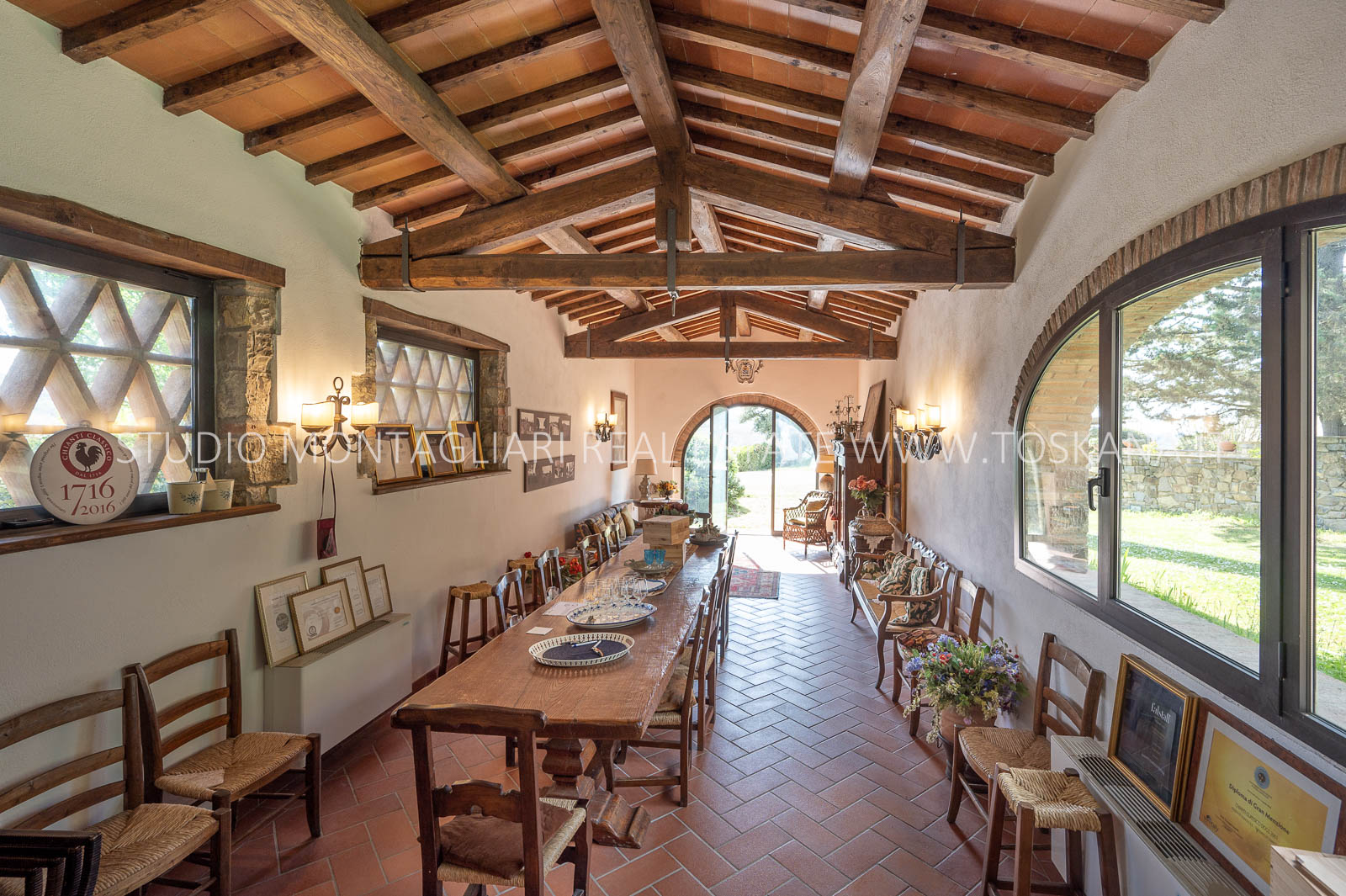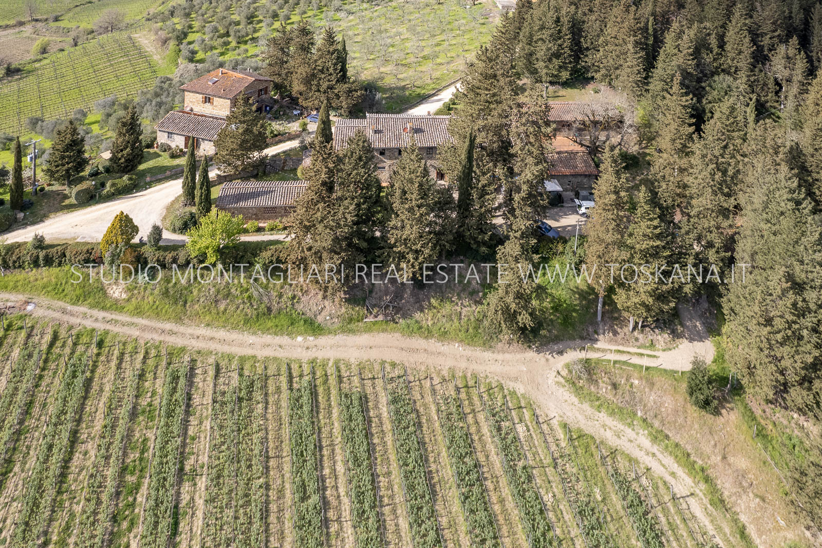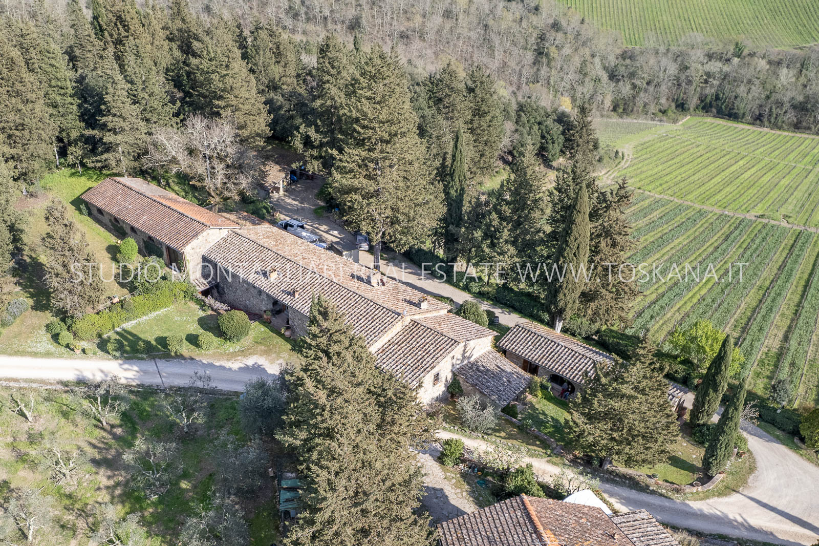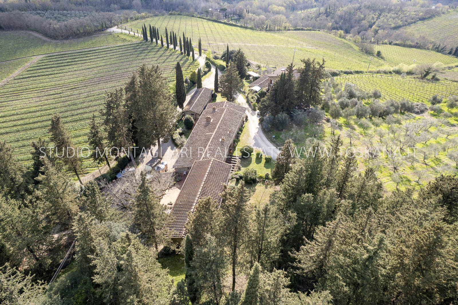 La proprietà è composta da un casale ristrutturato, edificato nel 15° secolo, di circa 400 mq su due livelli. Dal cortile esterno si accede nella zona giorno con luminosa zona reception, un'ampia cucina, una seconda zona giorno e un ufficio. Il primo piano è composto da 5 camere matrimoniali e due bagni. All'esterno della casa si trova il forno originale oltre ad un'ampia terrazza con vista panoramica su vigneti, uliveti e boschi ed una sala degustazione con cucina e bagno.