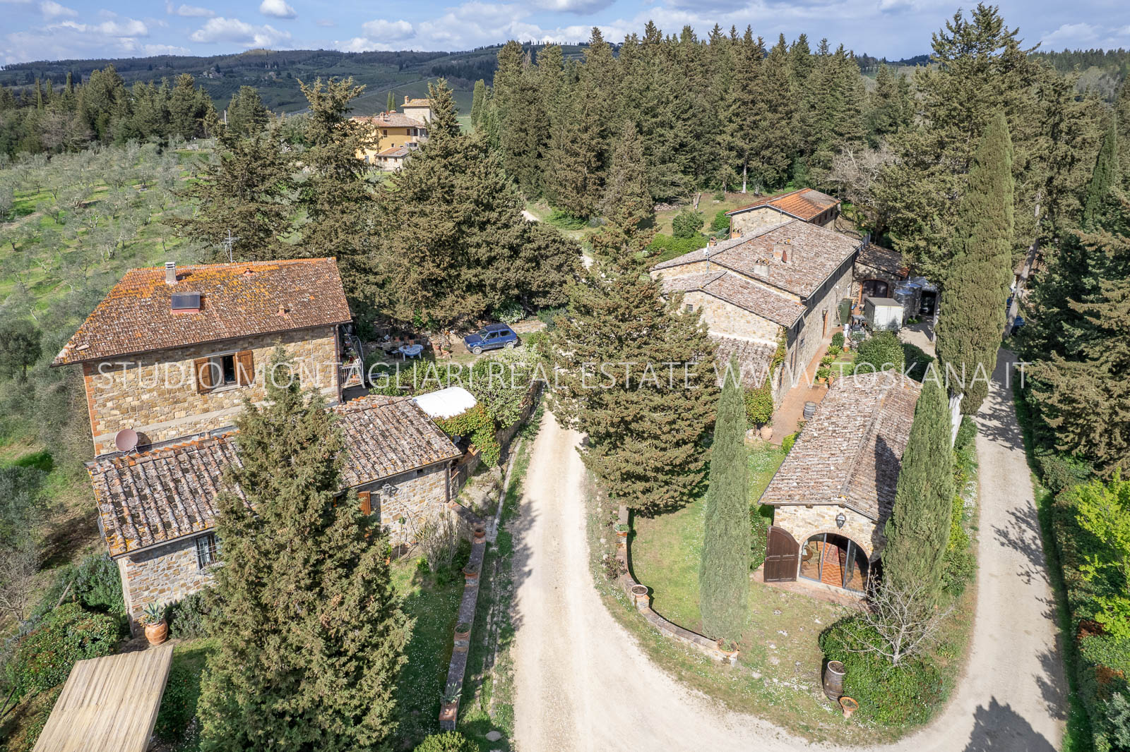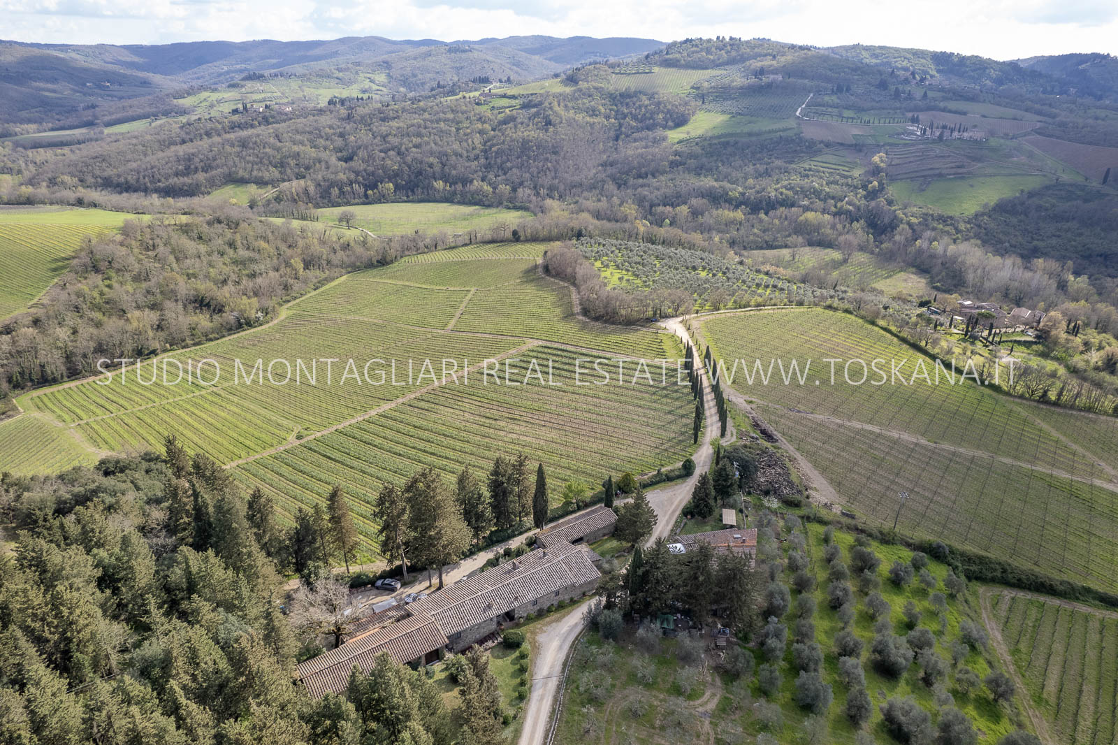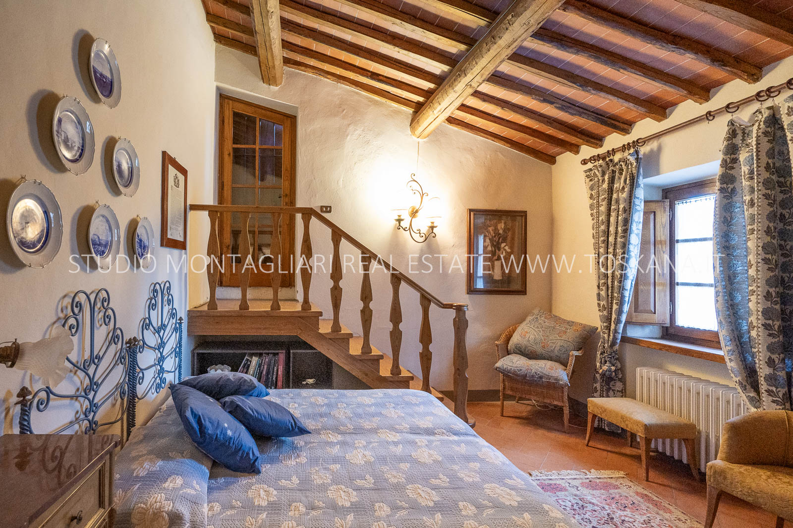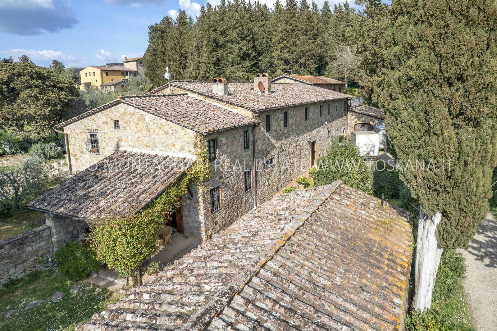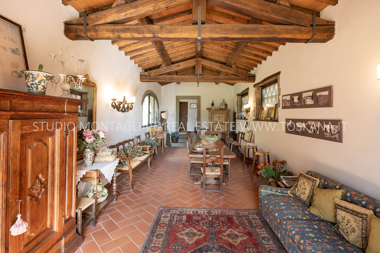 La proprietà è composta da un casale ristrutturato, edificato nel 15° secolo, di circa 400 mq su due livelli. Dal cortile esterno si accede nella zona giorno con luminosa zona reception, un'ampia cucina, una seconda zona giorno e un ufficio. Il primo piano è composto da 5 camere matrimoniali e due bagni. All'esterno della casa si trova il forno originale oltre ad un'ampia terrazza con vista panoramica su vigneti, uliveti e boschi ed una sala degustazione con cucina e bagno.