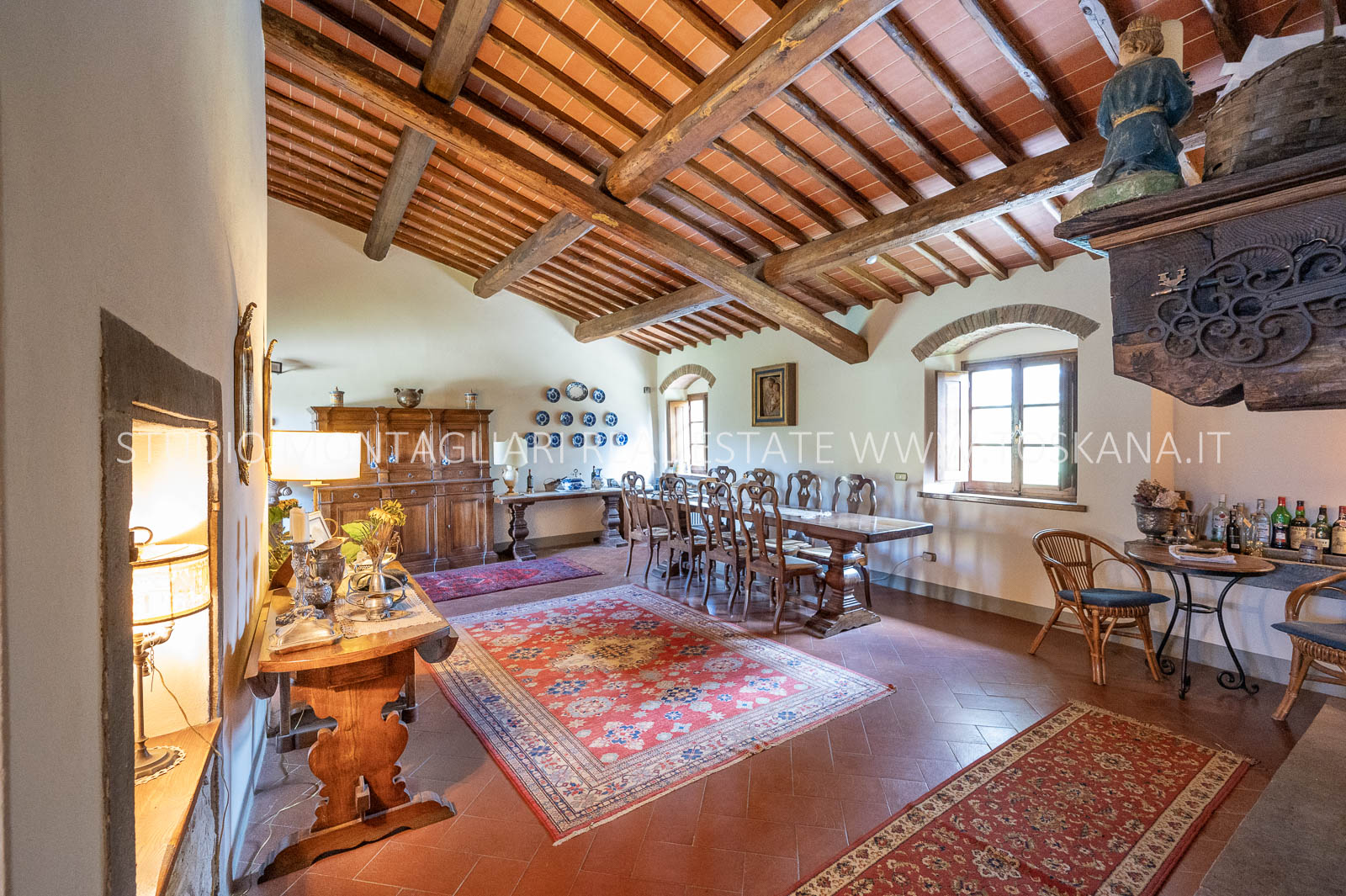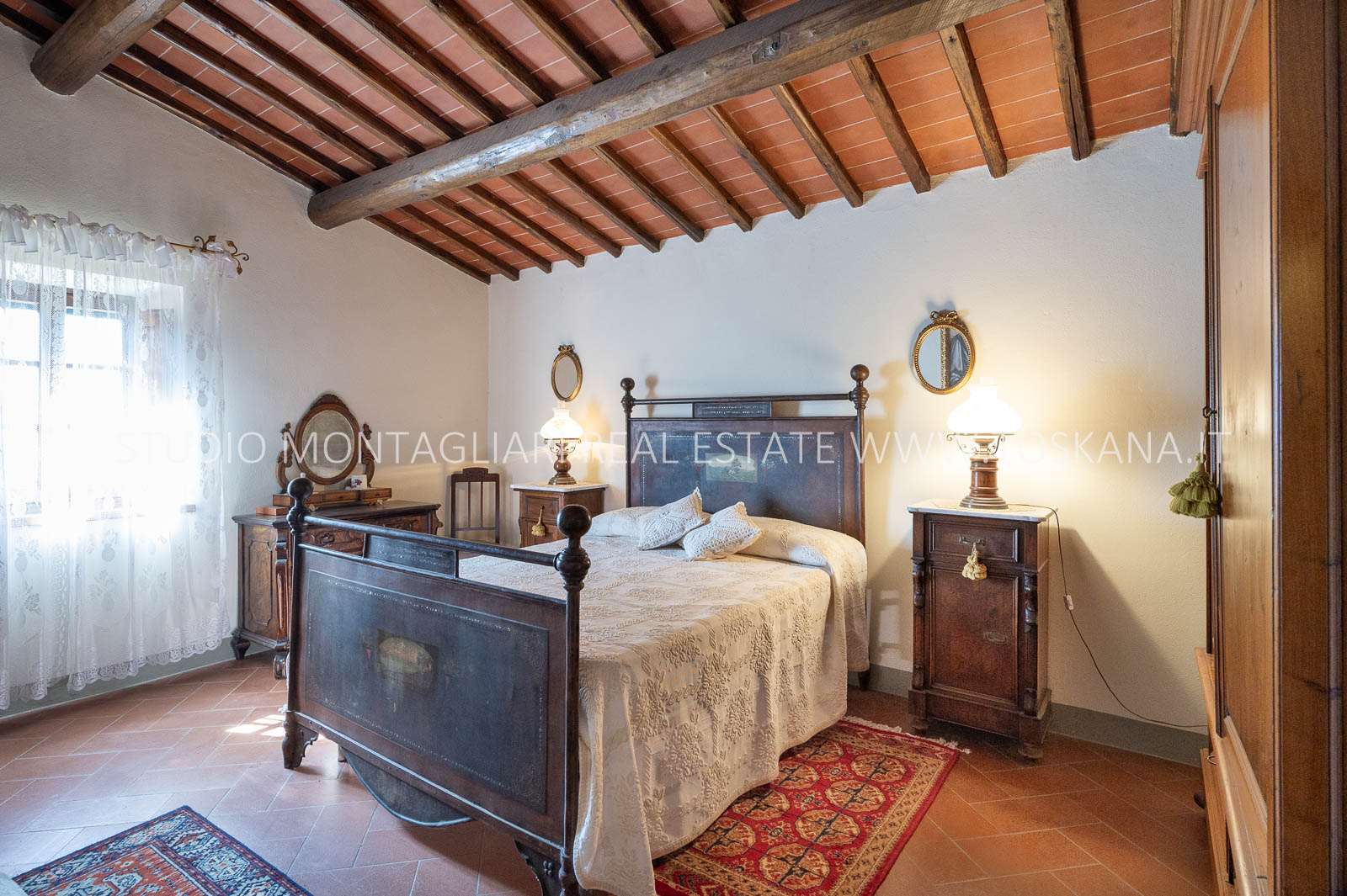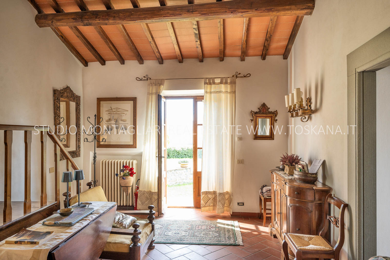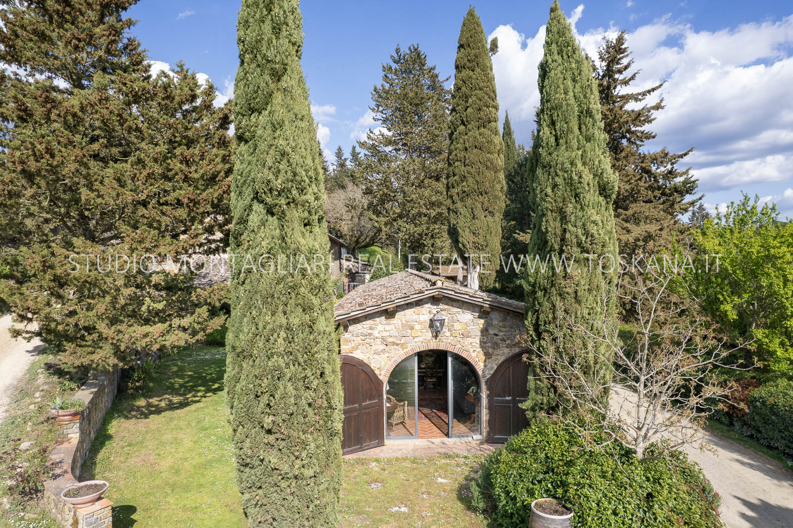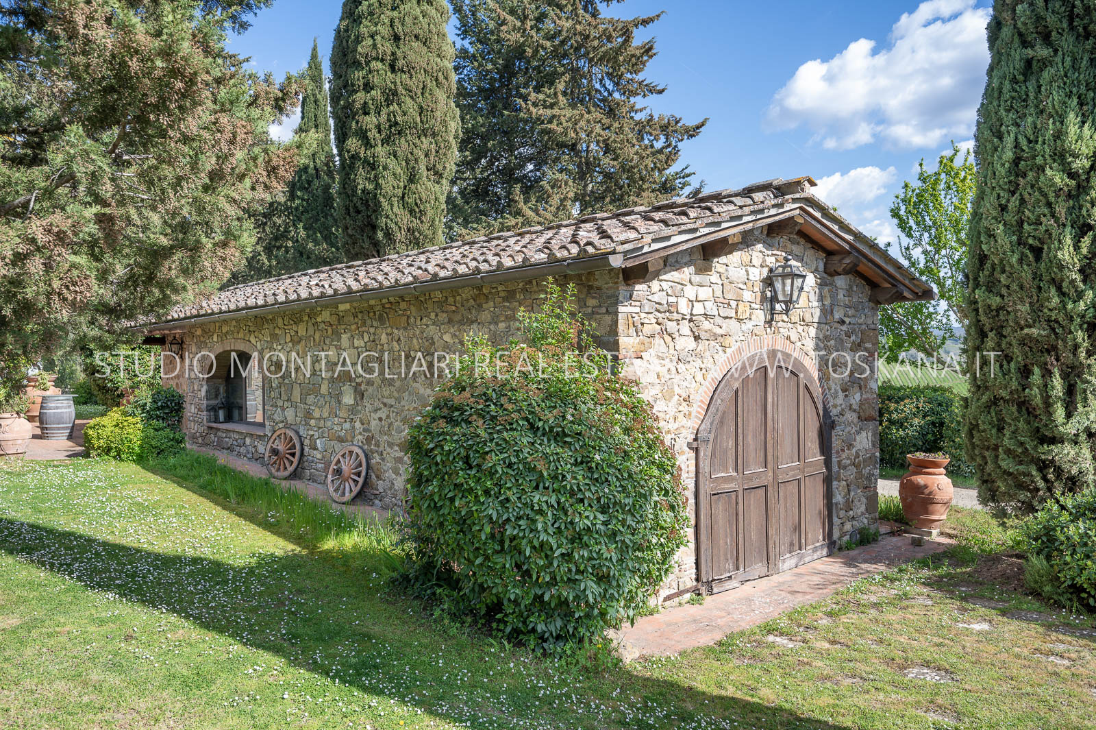 La proprietà è composta da un casale ristrutturato, edificato nel 15° secolo, di circa 400 mq su due livelli. Dal cortile esterno si accede nella zona giorno con luminosa zona reception, un'ampia cucina, una seconda zona giorno e un ufficio. Il primo piano è composto da 5 camere matrimoniali e due bagni. All'esterno della casa si trova il forno originale oltre ad un'ampia terrazza con vista panoramica su vigneti, uliveti e boschi ed una sala degustazione con cucina e bagno.