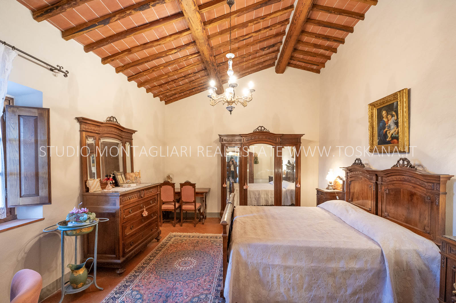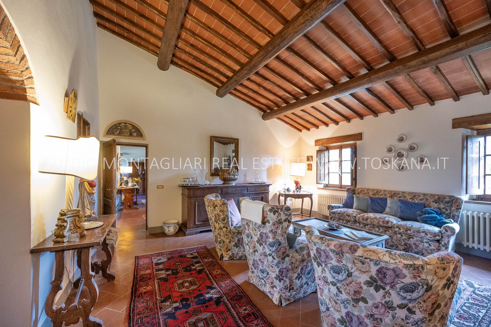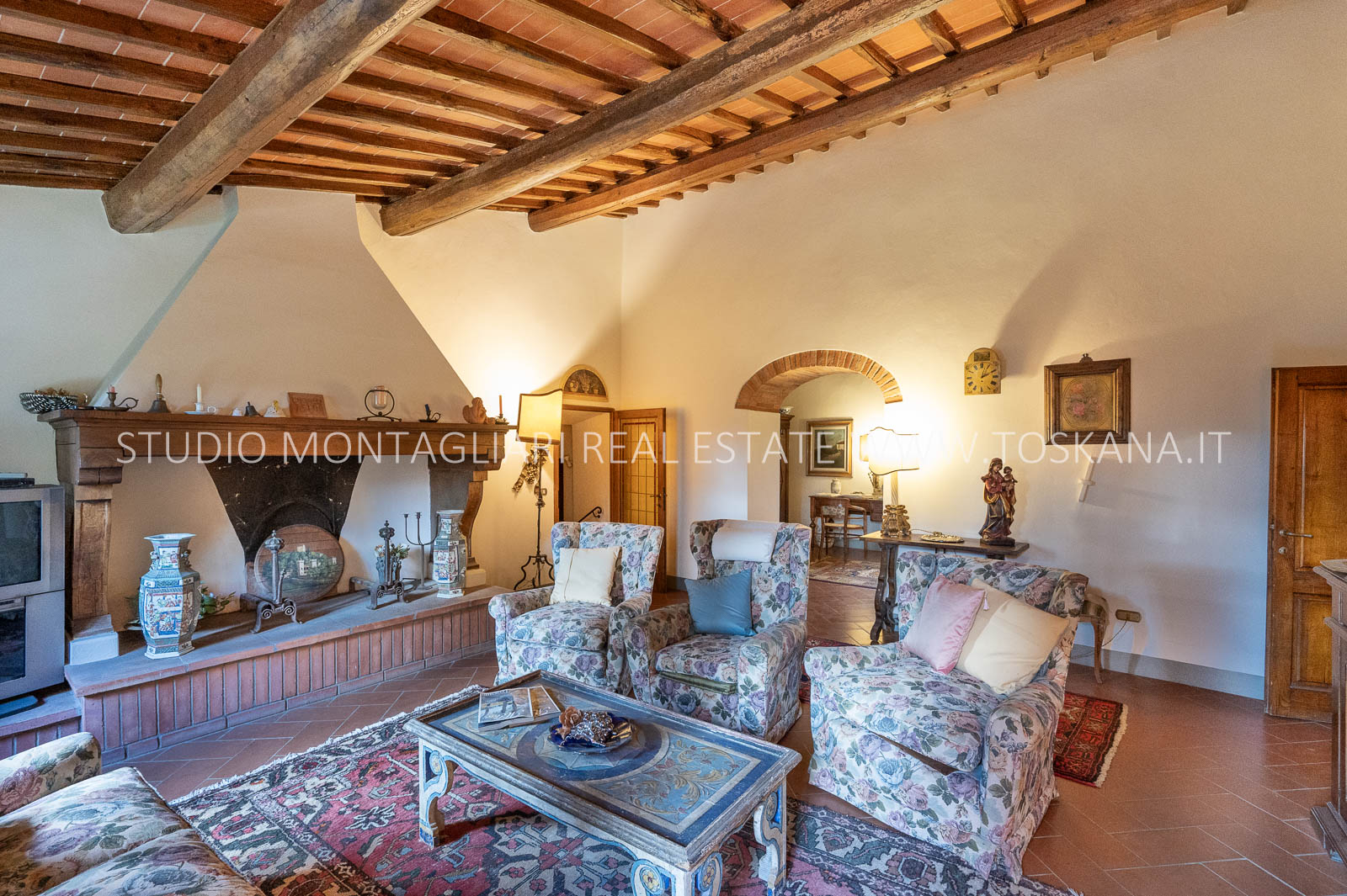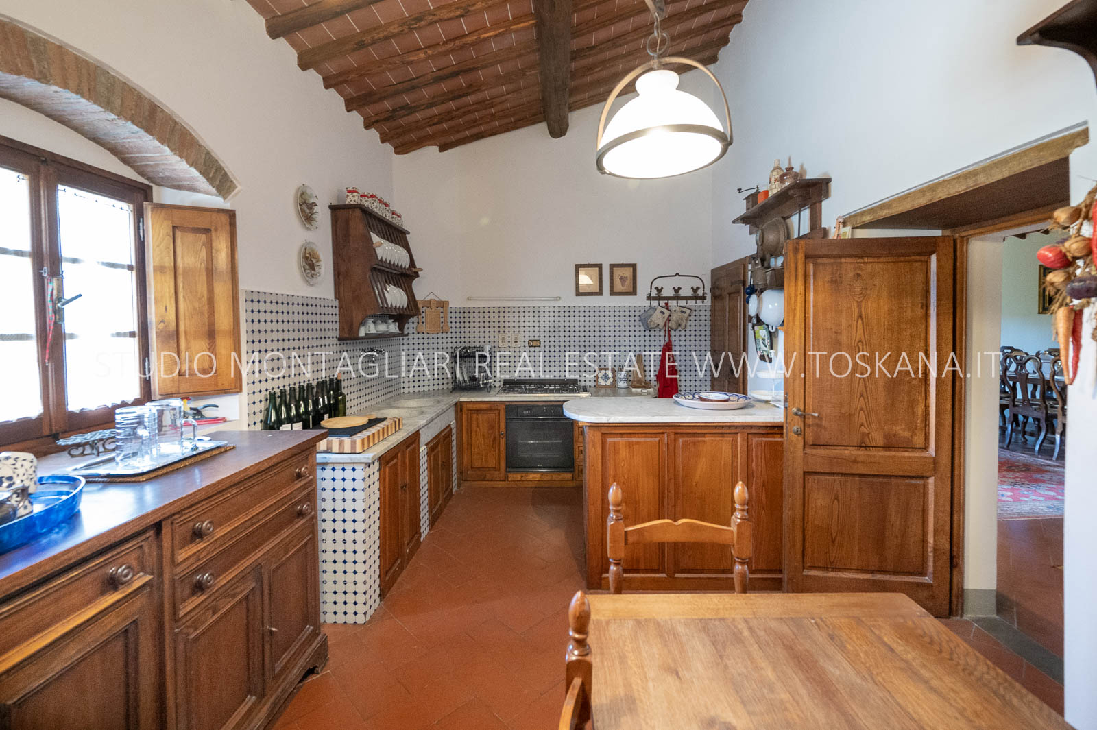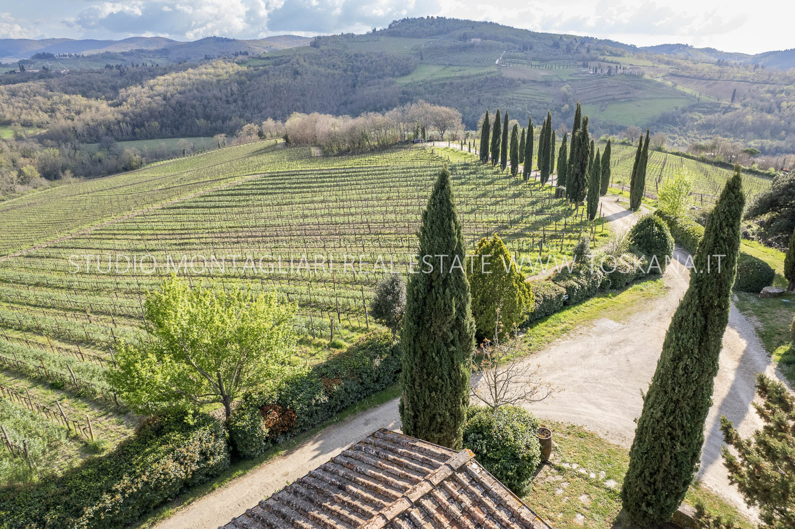 La proprietà è composta da un casale ristrutturato, edificato nel 15° secolo, di circa 400 mq su due livelli. Dal cortile esterno si accede nella zona giorno con luminosa zona reception, un'ampia cucina, una seconda zona giorno e un ufficio. Il primo piano è composto da 5 camere matrimoniali e due bagni. All'esterno della casa si trova il forno originale oltre ad un'ampia terrazza con vista panoramica su vigneti, uliveti e boschi ed una sala degustazione con cucina e bagno.