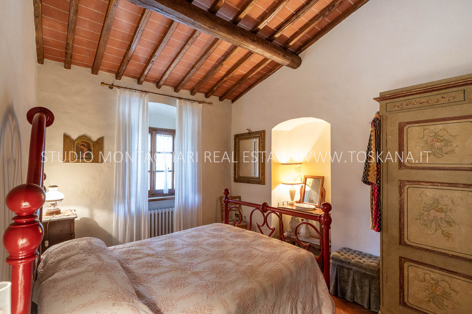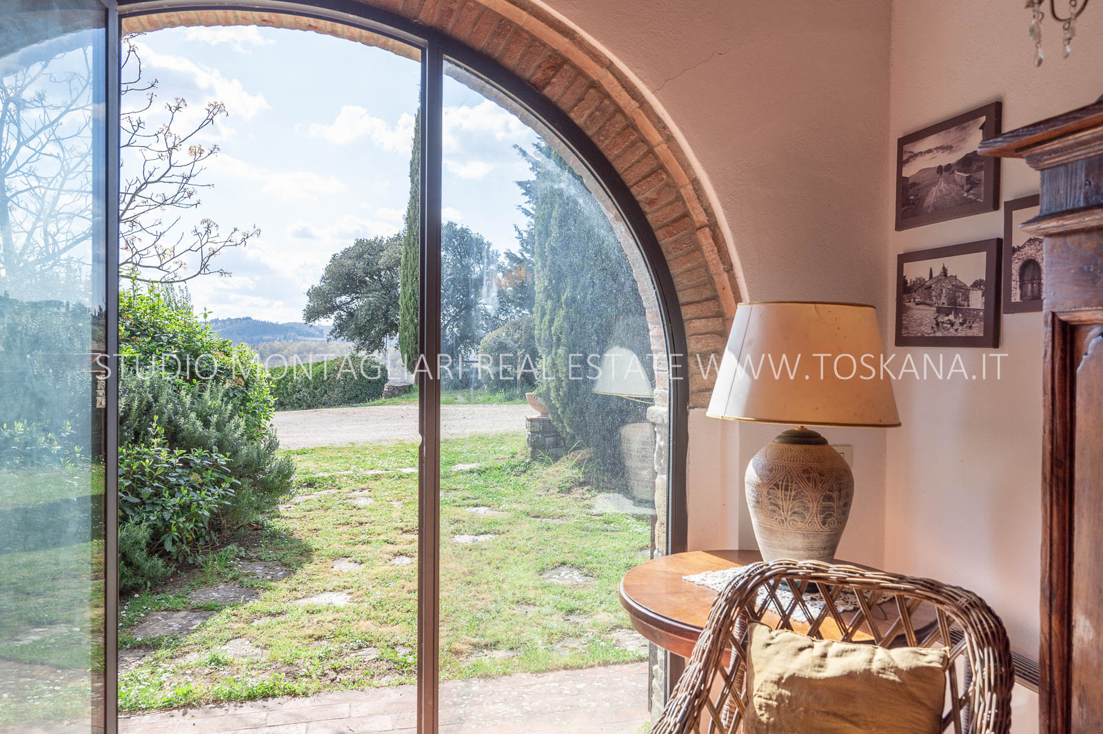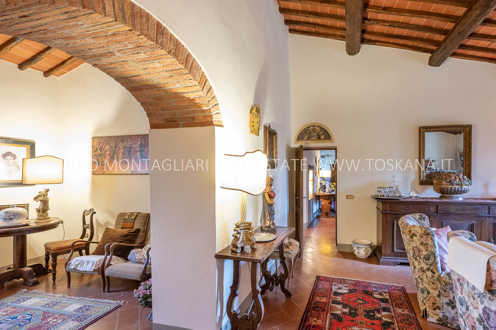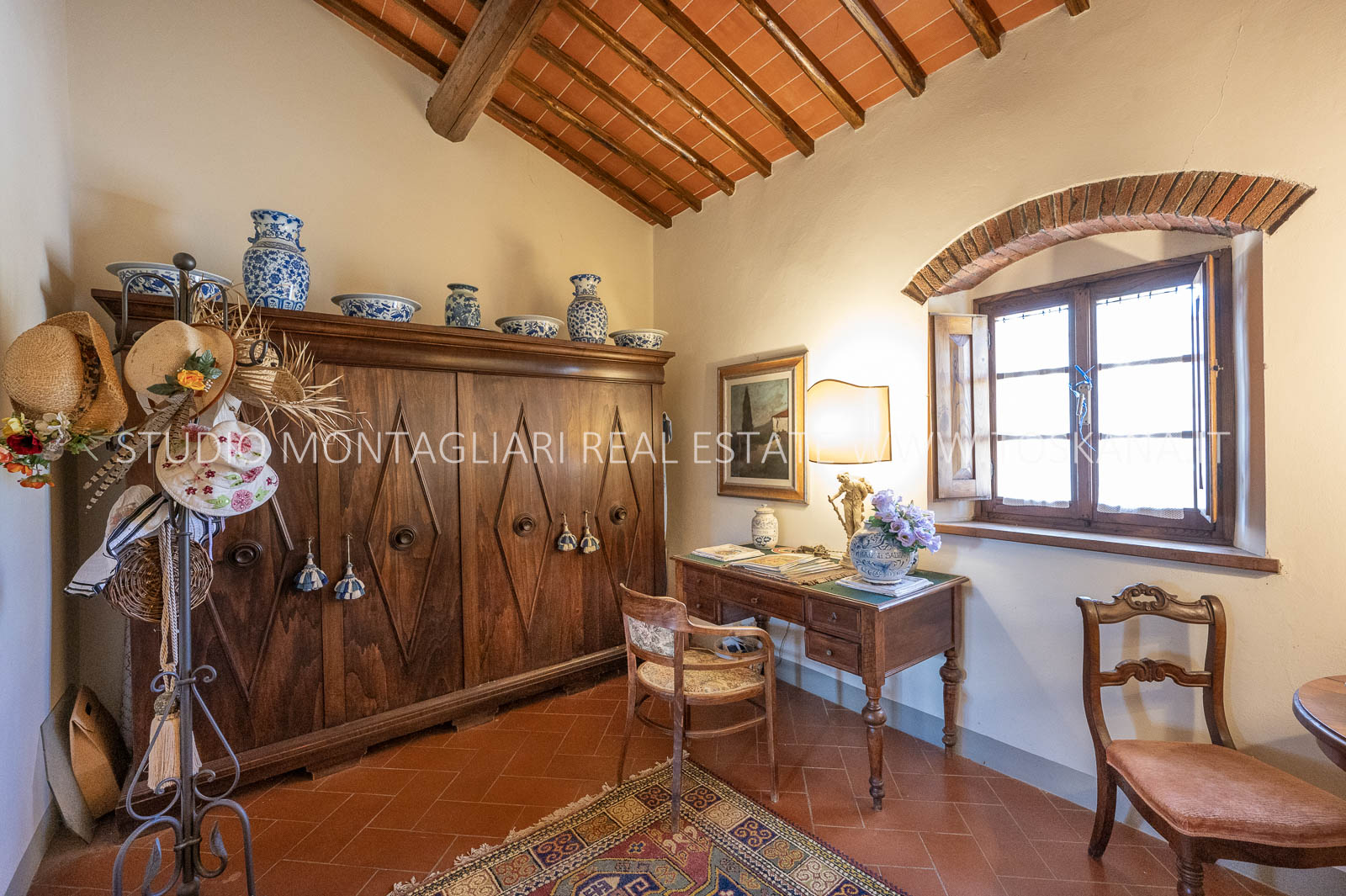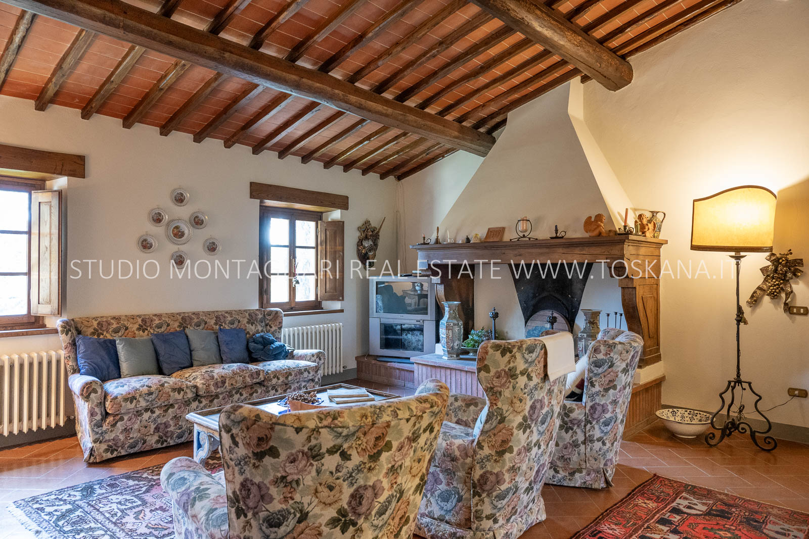 La proprietà è composta da un casale ristrutturato, edificato nel 15° secolo, di circa 400 mq su due livelli. Dal cortile esterno si accede nella zona giorno con luminosa zona reception, un'ampia cucina, una seconda zona giorno e un ufficio. Il primo piano è composto da 5 camere matrimoniali e due bagni. All'esterno della casa si trova il forno originale oltre ad un'ampia terrazza con vista panoramica su vigneti, uliveti e boschi ed una sala degustazione con cucina e bagno.