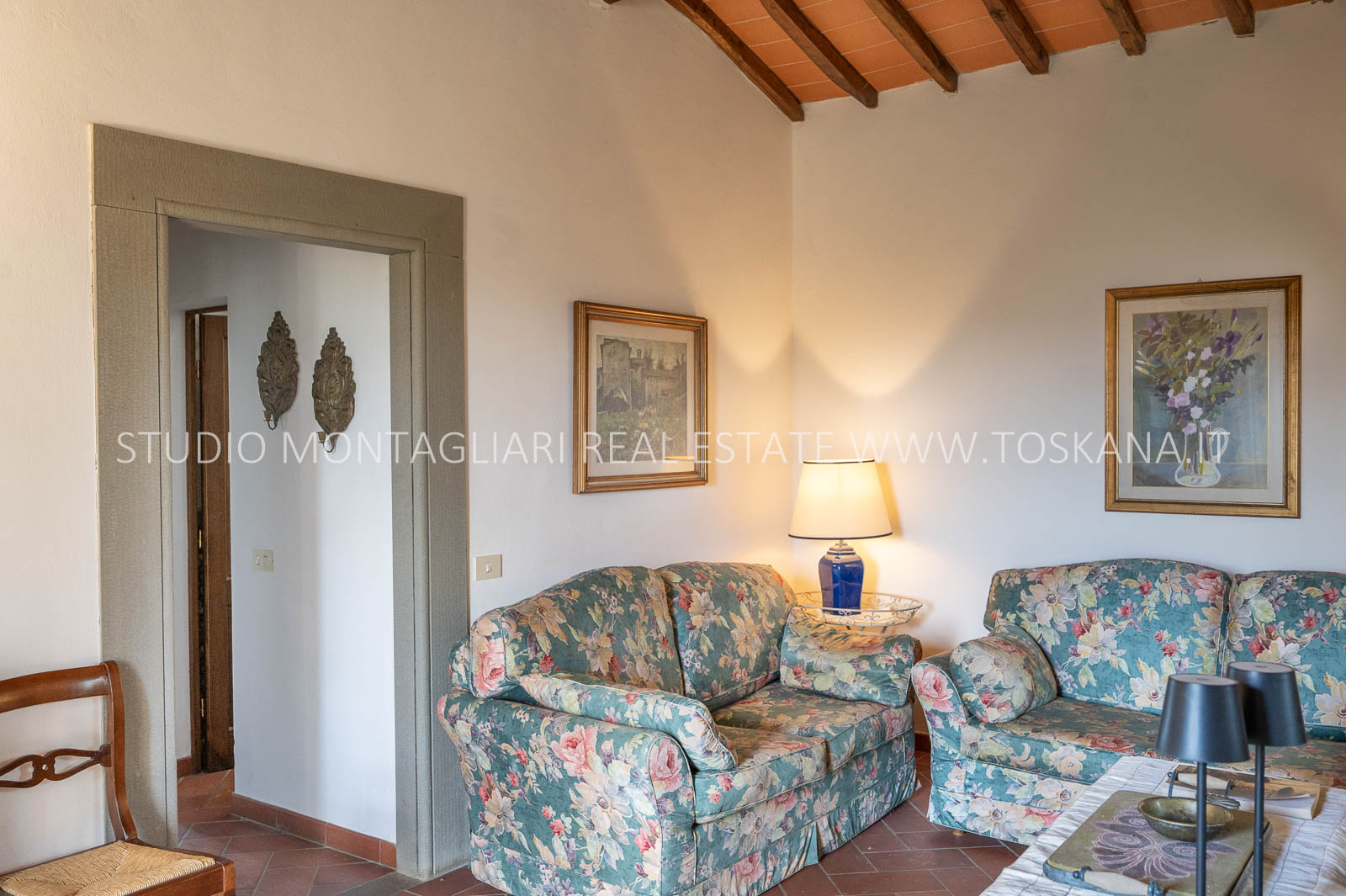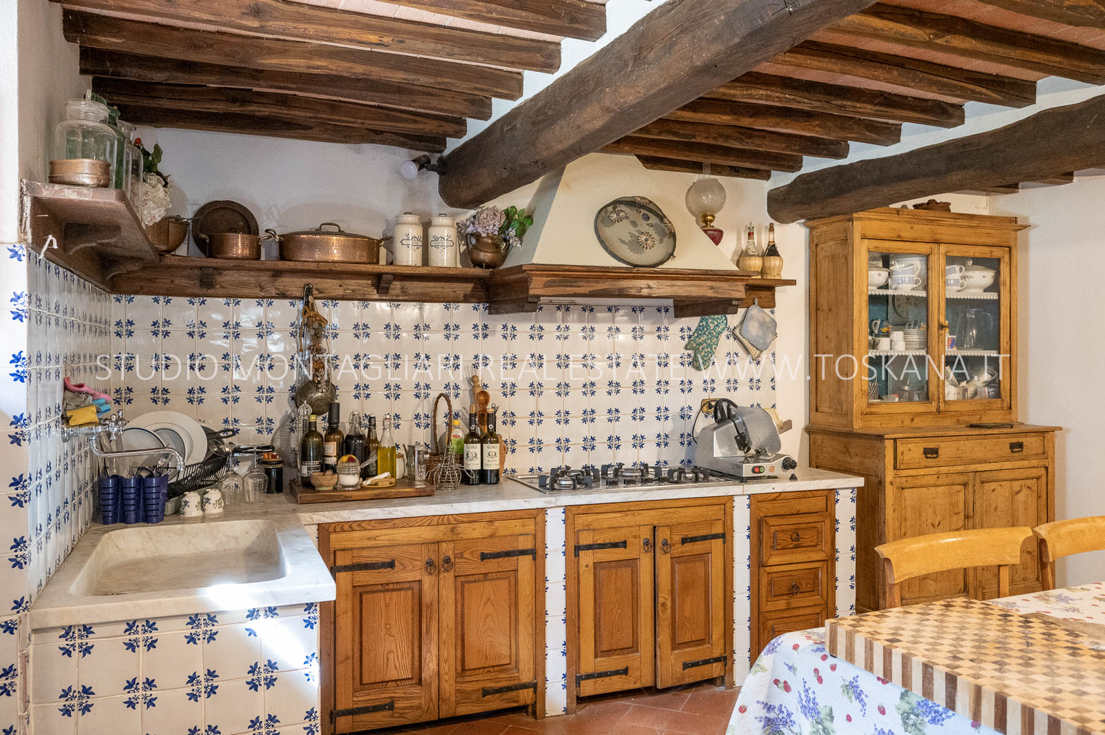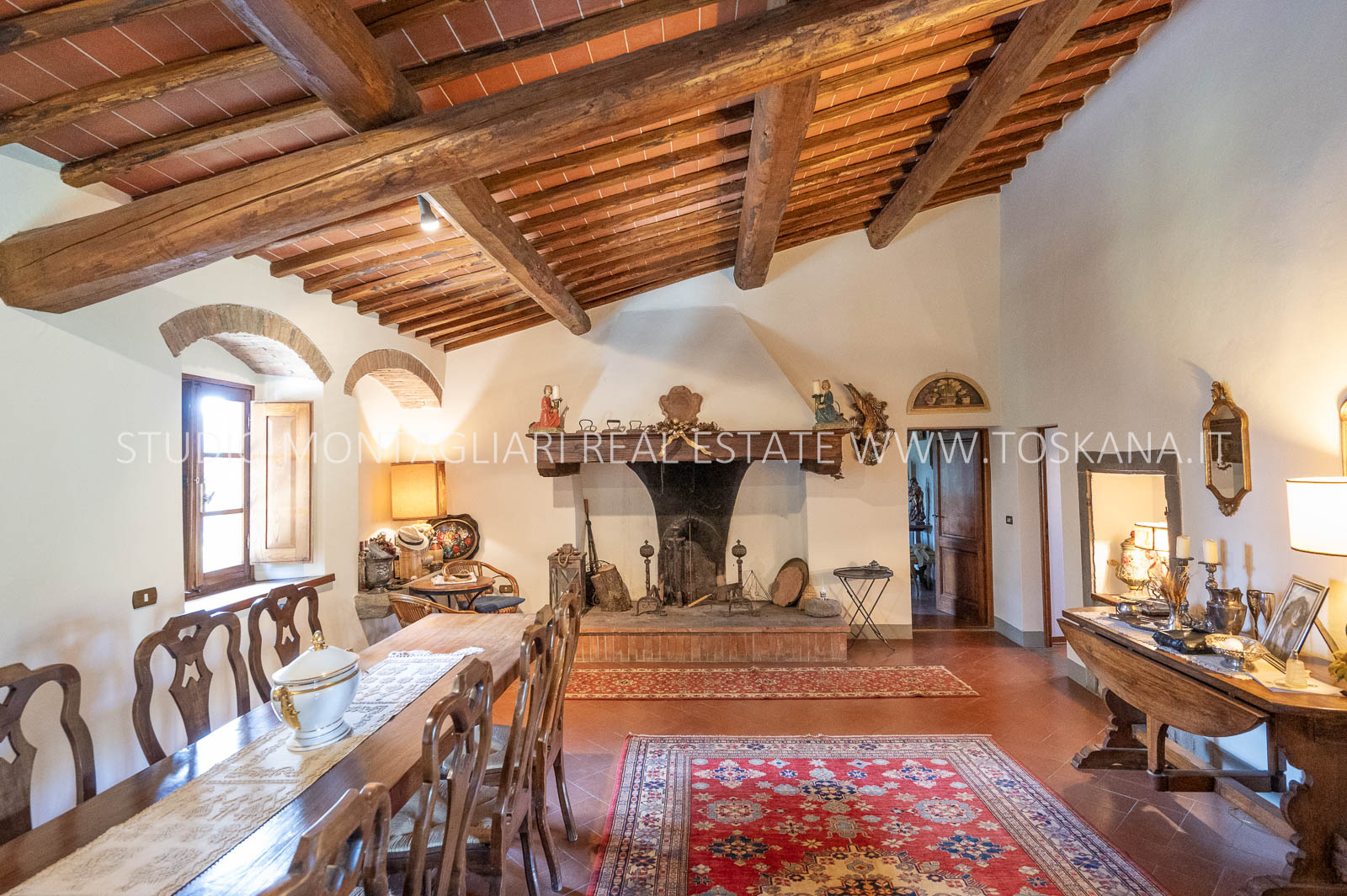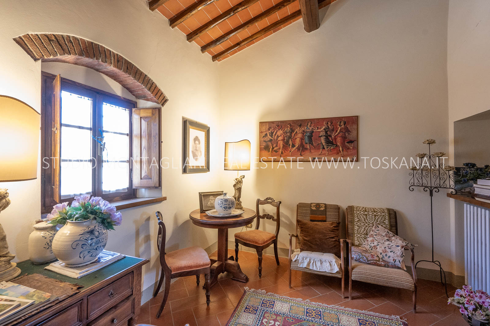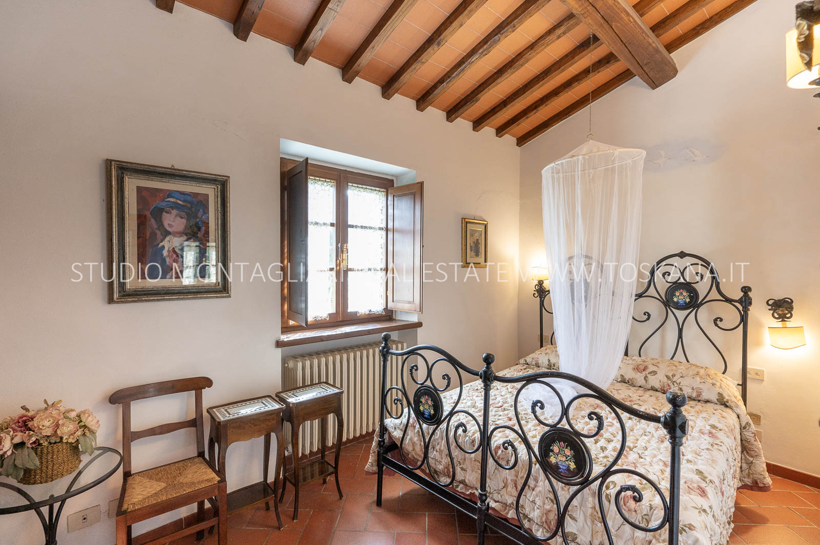 La proprietà è composta da un casale ristrutturato, edificato nel 15° secolo, di circa 400 mq su due livelli. Dal cortile esterno si accede nella zona giorno con luminosa zona reception, un'ampia cucina, una seconda zona giorno e un ufficio. Il primo piano è composto da 5 camere matrimoniali e due bagni. All'esterno della casa si trova il forno originale oltre ad un'ampia terrazza con vista panoramica su vigneti, uliveti e boschi ed una sala degustazione con cucina e bagno.