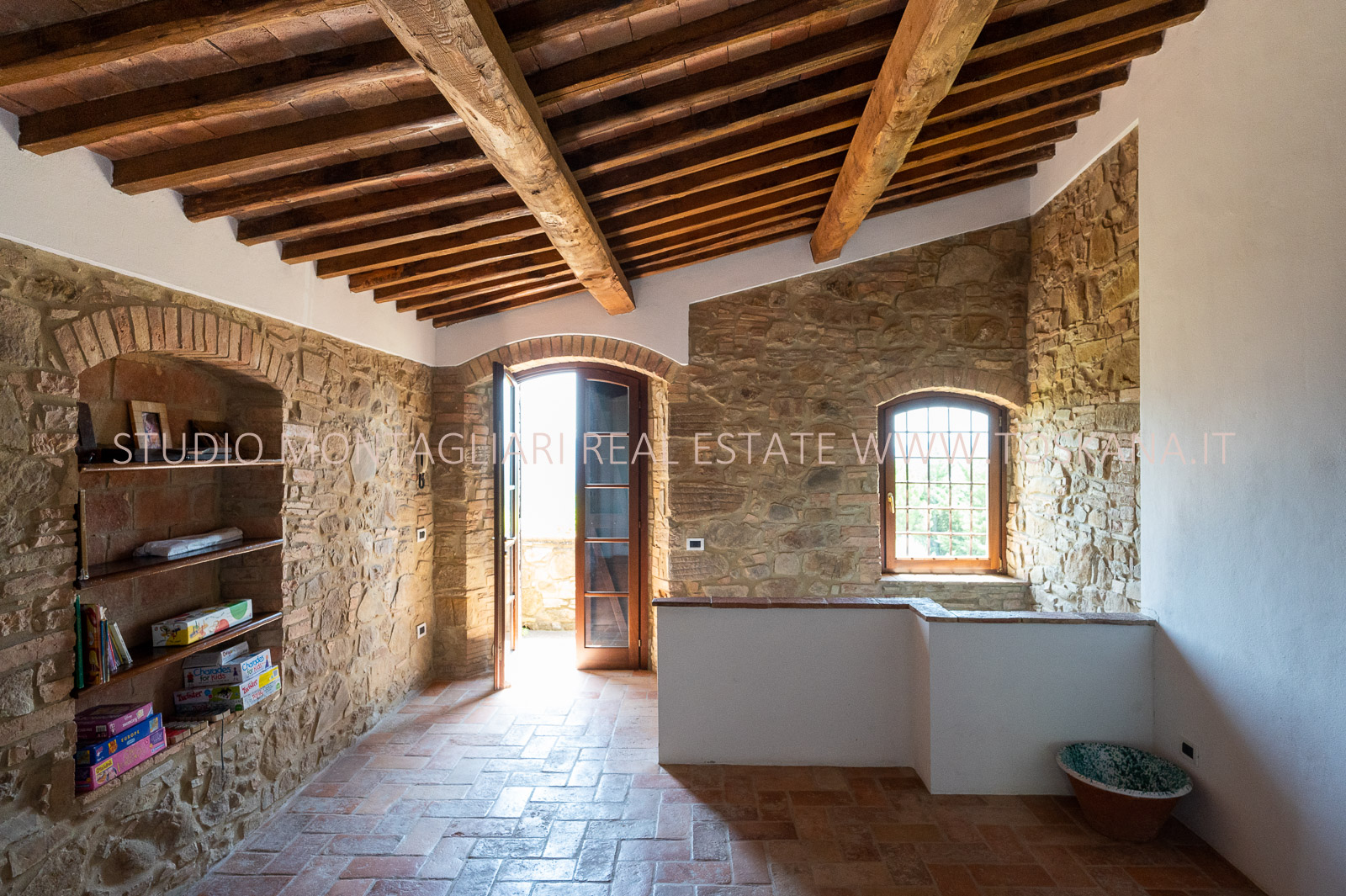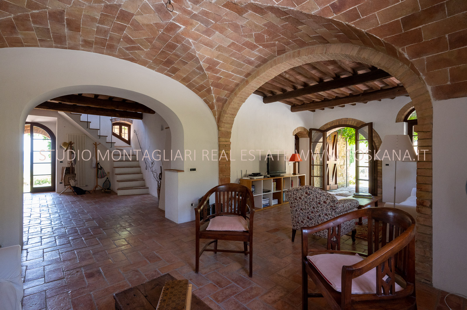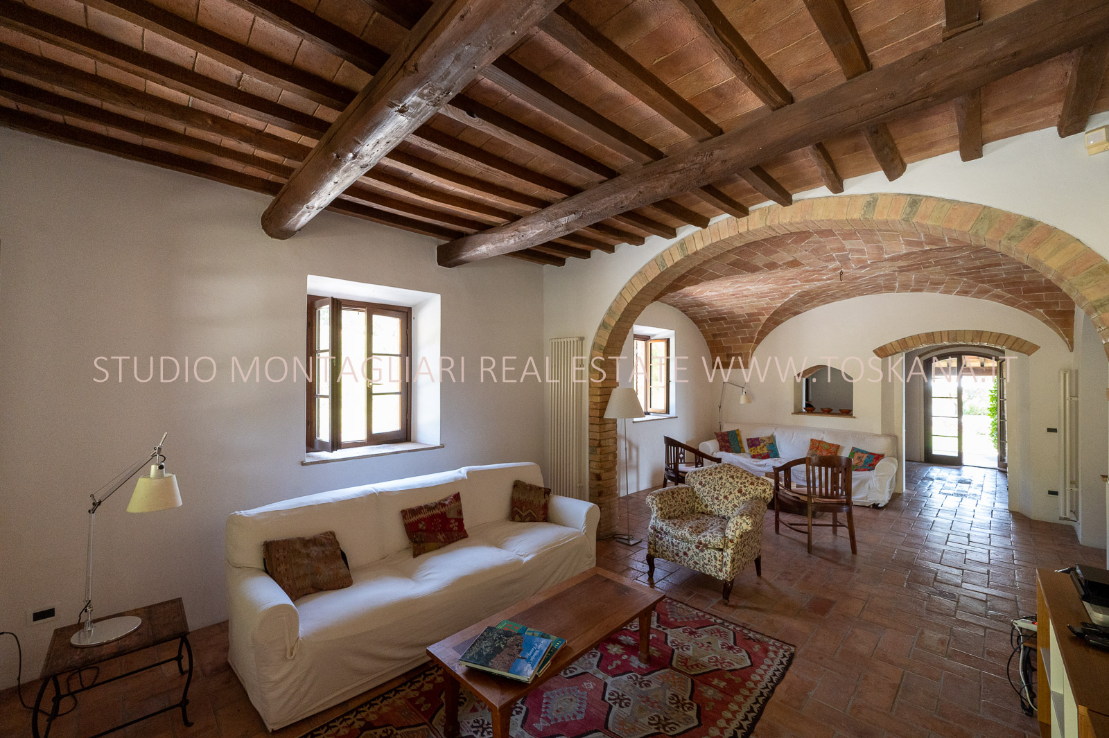 La proprietà è stata meticolosamente e finemente restaurata, con materiali originali come pavimenti in cotto, soffitti a volta e travi in legno.