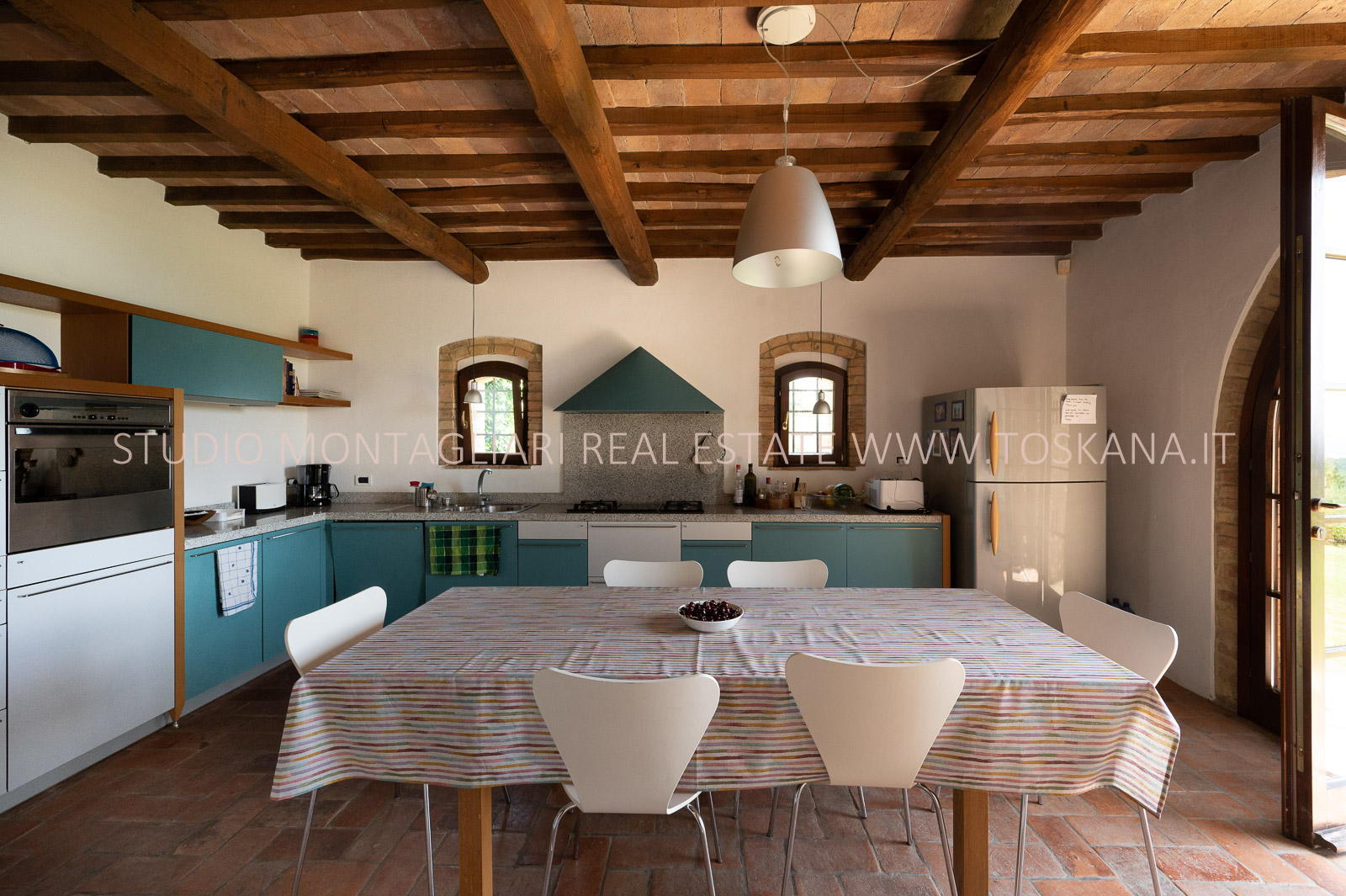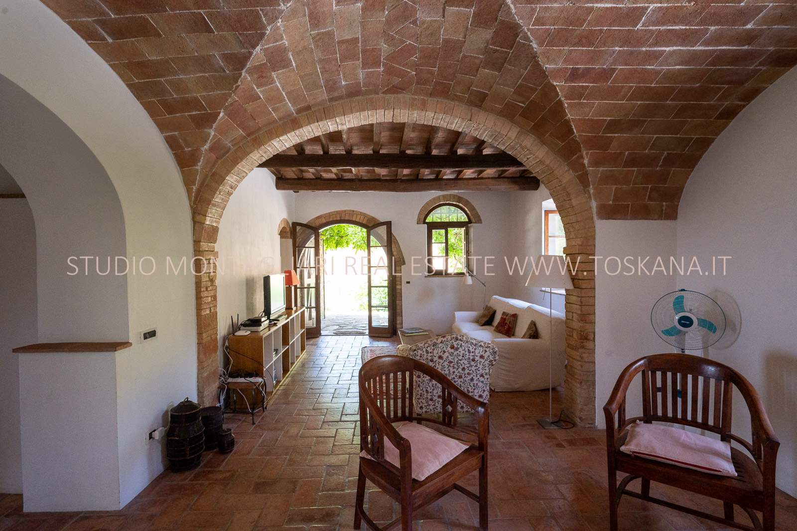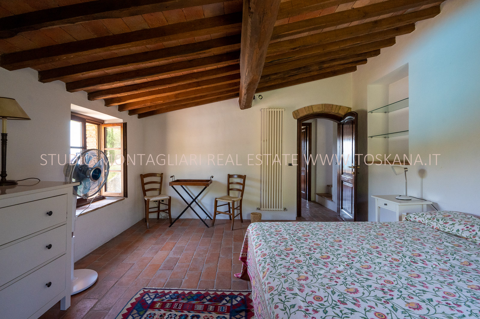 La proprietà è stata meticolosamente e finemente restaurata, con materiali originali come pavimenti in cotto, soffitti a volta e travi in legno.