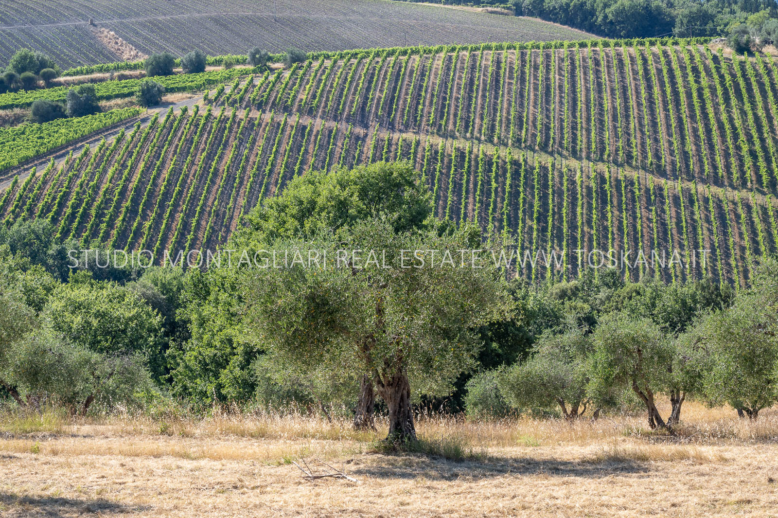 51 ha di terreno di cui 25,5 ha di seminativo, 14,5 ha di bosco e 8,7 ha di uliveto con circa 600 piante completano il podere.