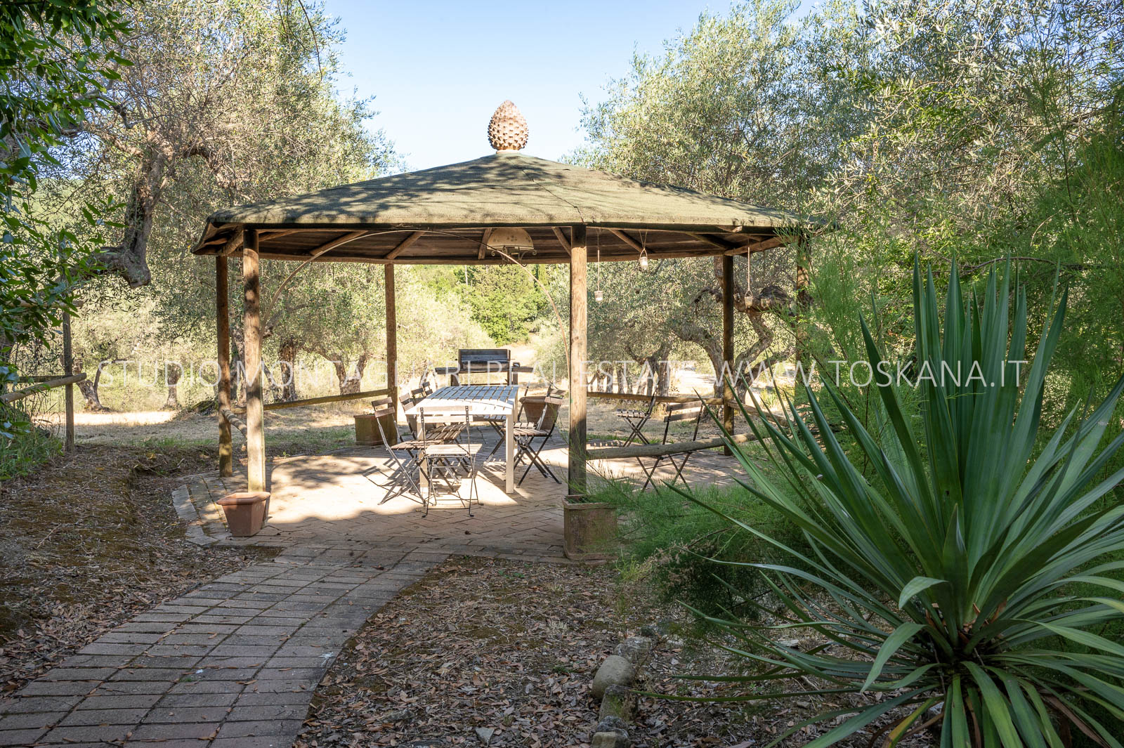 Il curatissimo giardino offre vari spazi attrezzati per mangiare all'aperto e dispone di una piscina (12x5mt), dalla quale si gode di un panorama mozzafiato e tramonti unici.