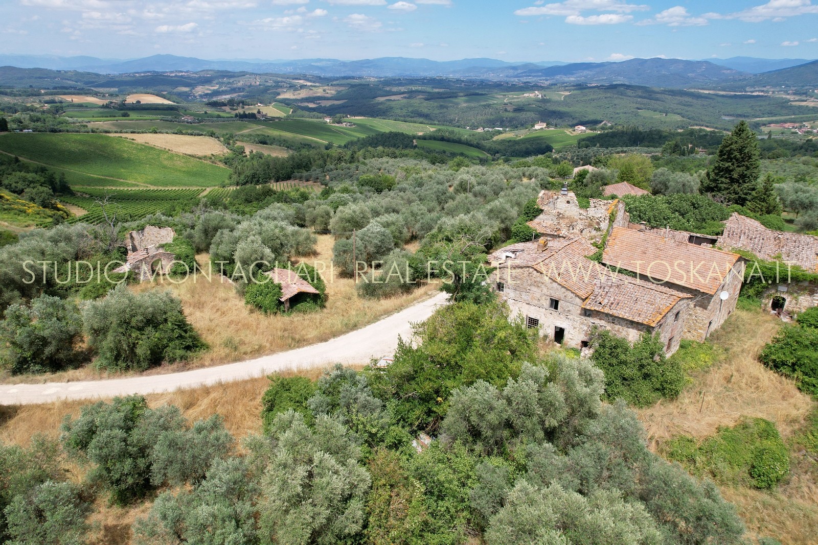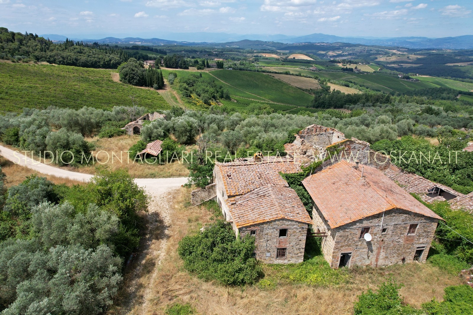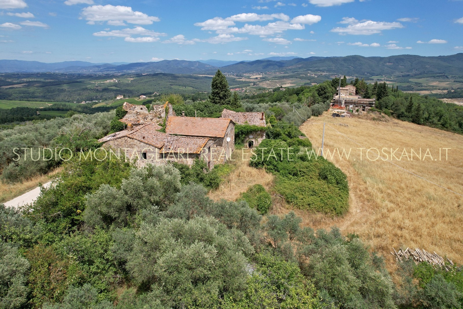 Questo storico borgo in pietra a vista risale al XII secolo ed è situato in posizione panoramica a soli 16 km da Firenze e necessita di un intervento di restauro completo. Intorno ai fabbricati pressoché diruti si estende un terreno di complessivi di 80 ha di cui 12.24.26 di vigneto Chianti Classico DOCG in piena produzione e ulteriori diritti di re impianto per 8 ha di vigneti Chianti Classico. Restano 20 ha di uliveto specializzato, 20 ha di seminativo e 20 ha di bosco.