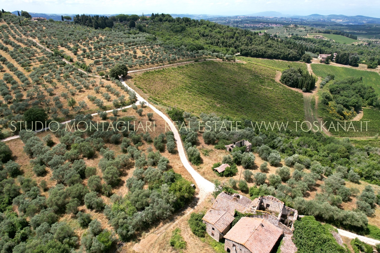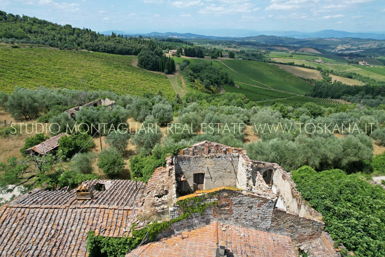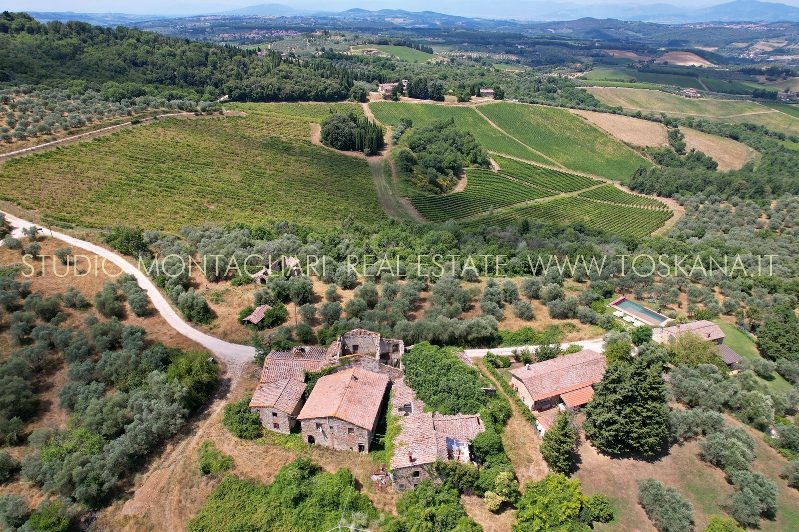 Questo storico borgo in pietra a vista risale al XII secolo ed è situato in posizione panoramica a soli 16 km da Firenze e necessita di un intervento di restauro completo. Intorno ai fabbricati pressoché diruti si estende un terreno di complessivi di 80 ha di cui 12.24.26 di vigneto Chianti Classico DOCG in piena produzione e ulteriori diritti di re impianto per 8 ha di vigneti Chianti Classico. Restano 20 ha di uliveto specializzato, 20 ha di seminativo e 20 ha di bosco.