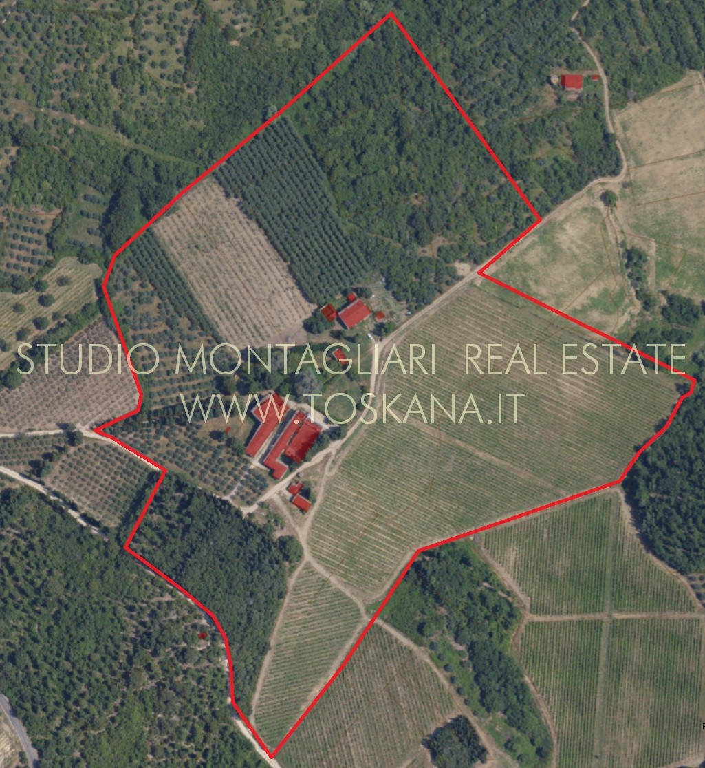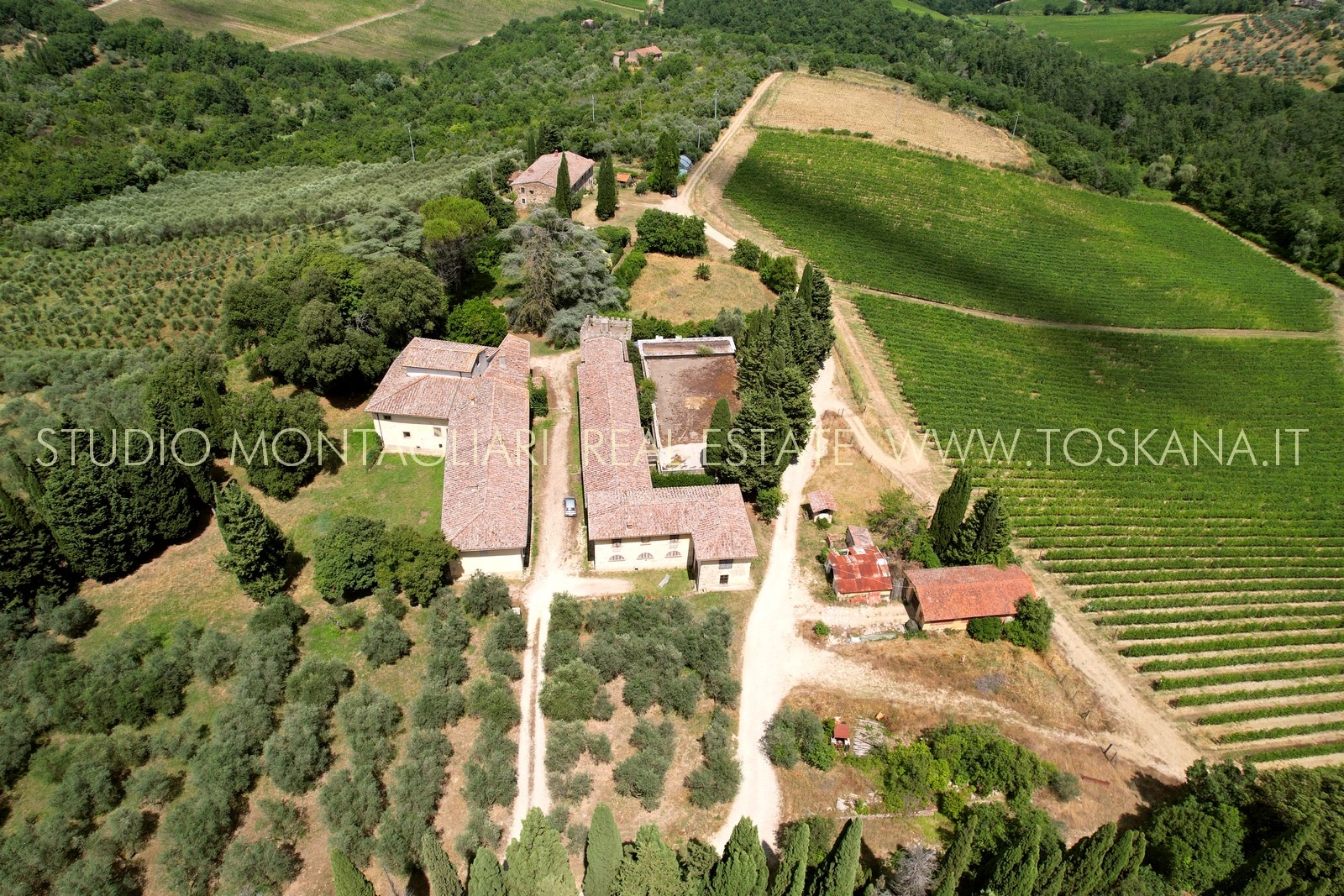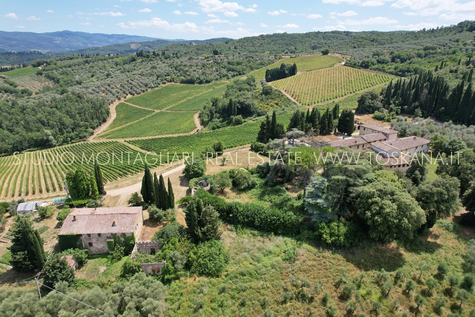 L'antica Villa è raggiungibile attraverso un viale di cipressi e si sviluppa su tre livelli (1.624 mq). Di fronte si trovano i fabbricati che servivano come cantine, stalle e scuderie nonché la vinsantaia e il frantoio. La superficie totale è di 3.160 mq lordi , tra cui l’antico castello con la sua caratteristica torre a punta di diamante nonchè una cantina per la vinificazione, costruita negli anni '70, ( 502 mq). Adiacente al centro aziendale si trova una colonica con annesso di ben 819 mq. La colonica con annesso dispone di caratteristiche architettoniche ugualmente elevate. Il terreno circostante è di 13 ettari di cui 5 ha sono di vigneto Chianti Classico e 5,5 ha di uliveto specializzato.