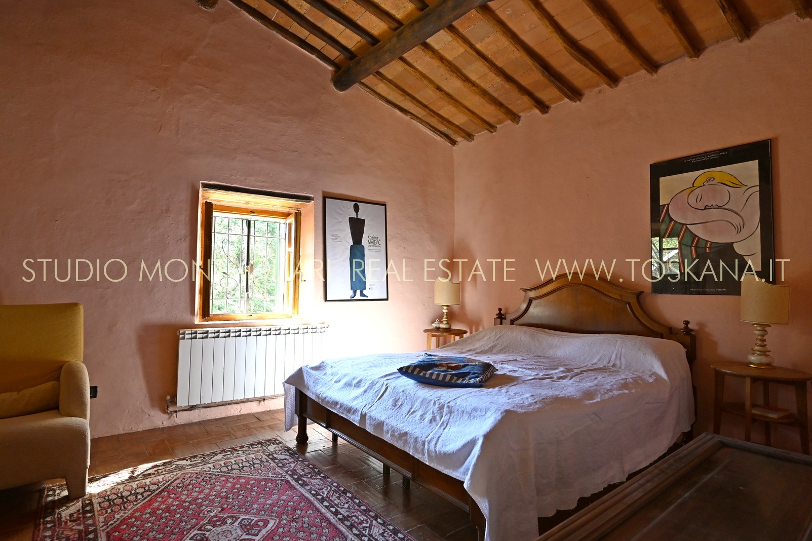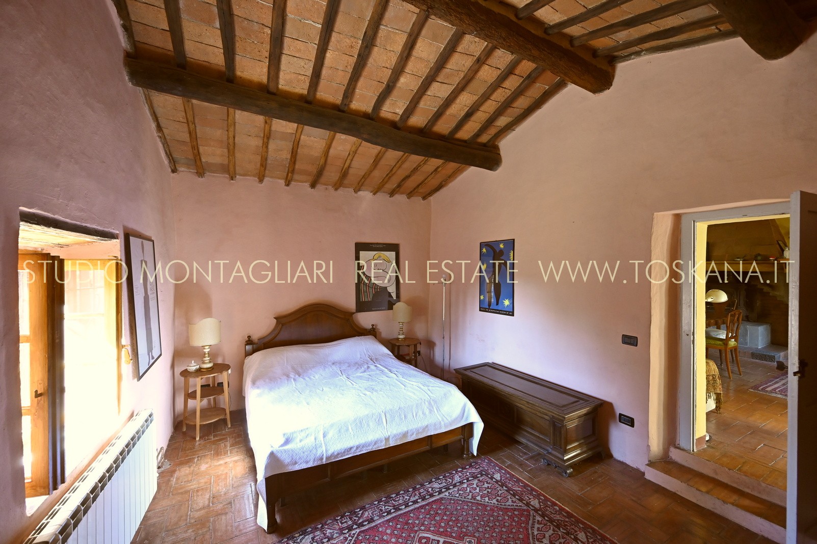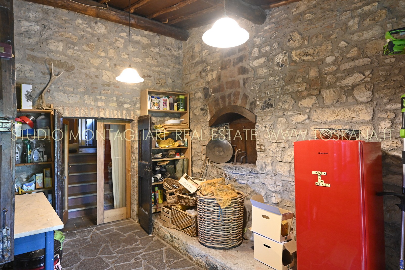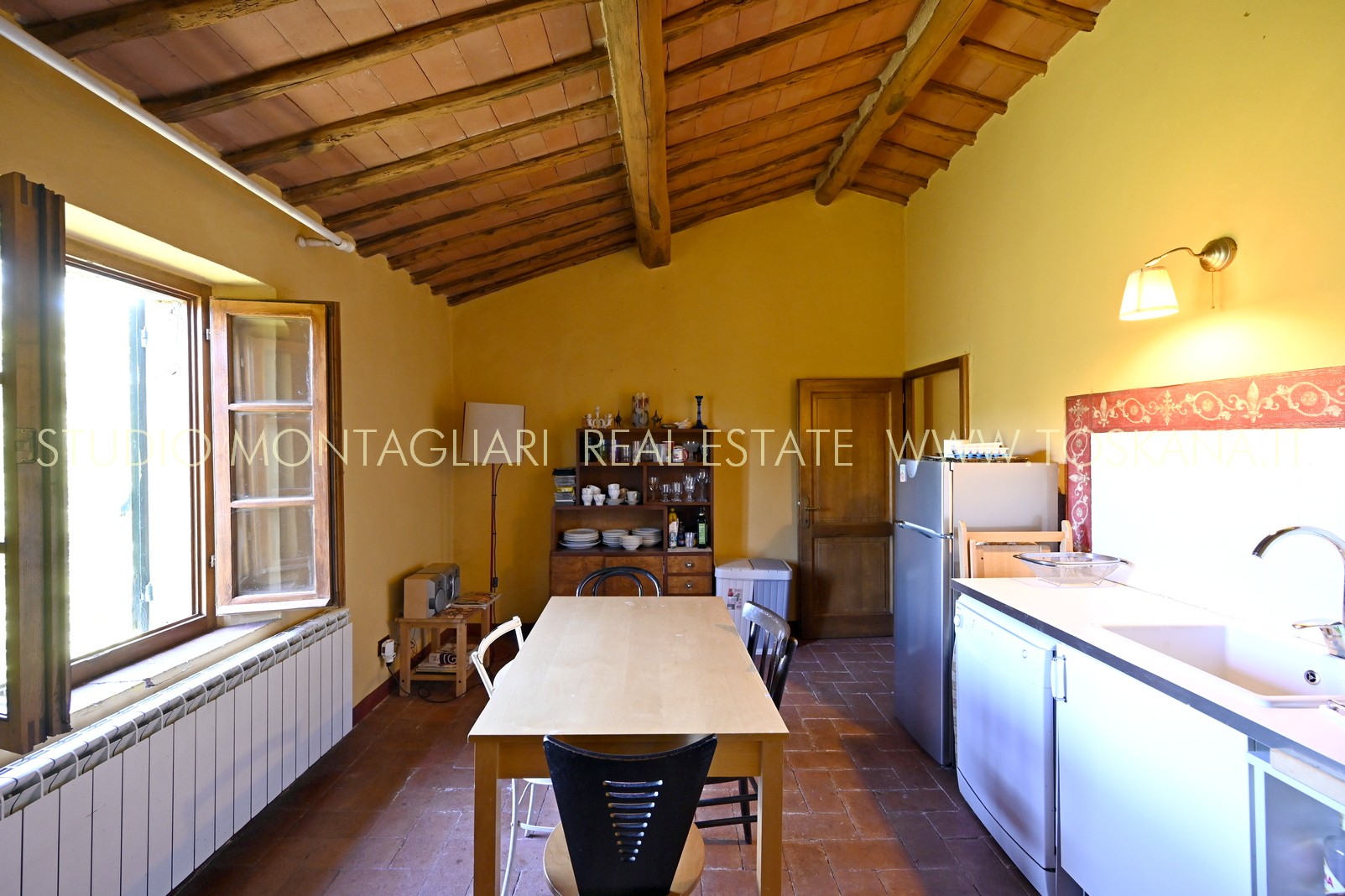 Il casale principale ha una superficie di mq. 410 mq su due livelli ed è attualmente divisa in due appartamenti collegati internamente. Il piano terra è composto da una loggia con forno originale, un ingresso, una cucina con zona pranzo, un bagno, due camere da letto e un locale accessorio. Al piano seminterrato si trova un locale accessorio, la lavanderia e un bagno. Tramite una scala interna ed anche esterna si raggiunge il primo piano con soggiorno con antico camino, cucina, 3 camere da letto ed un bagno.