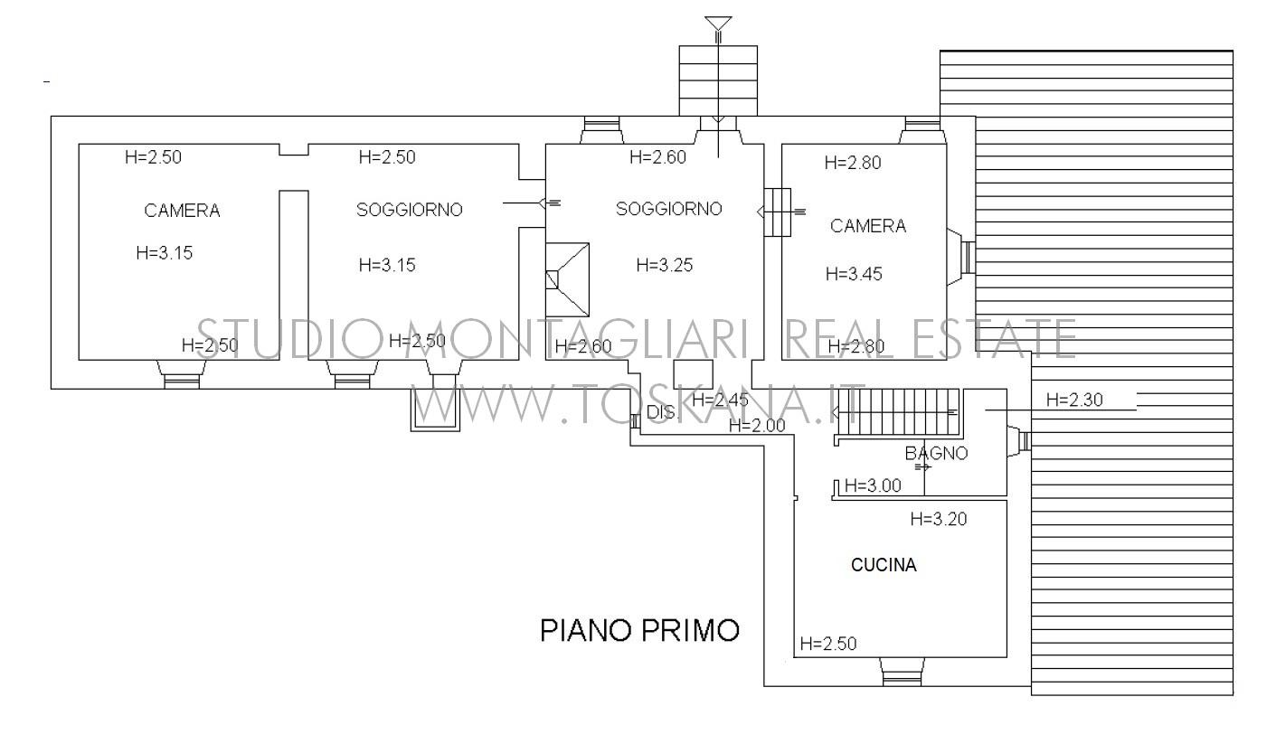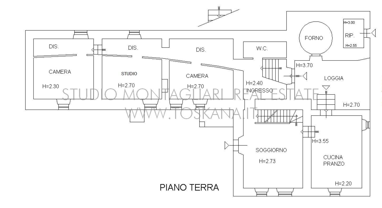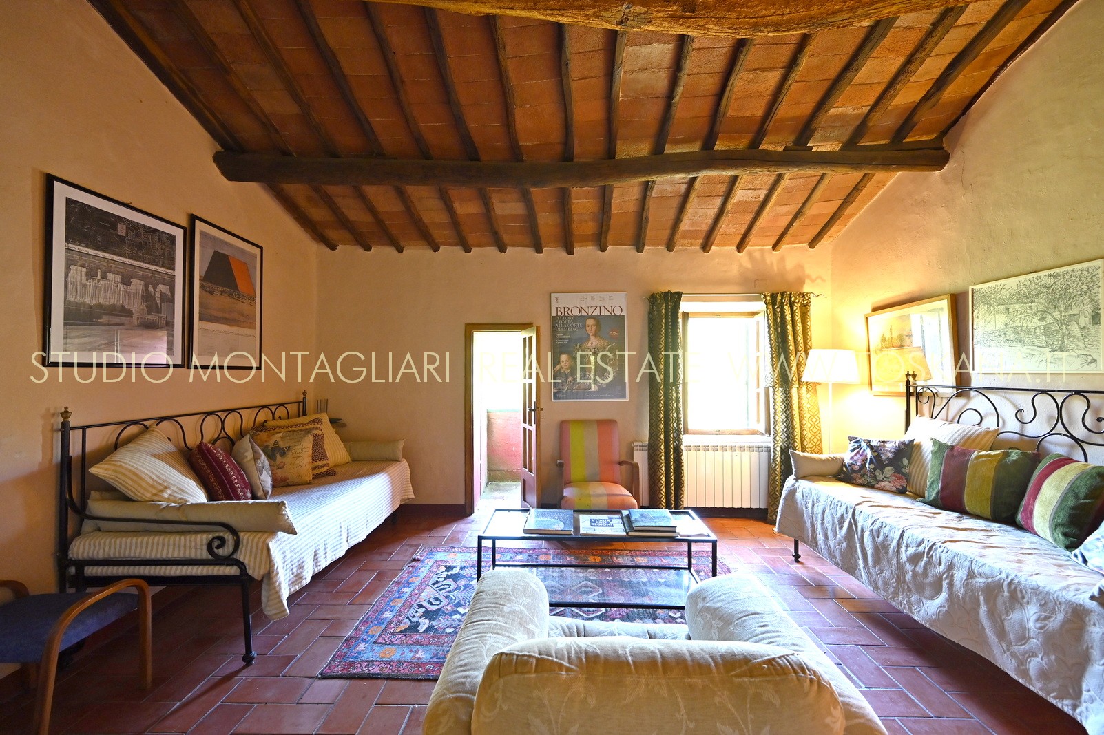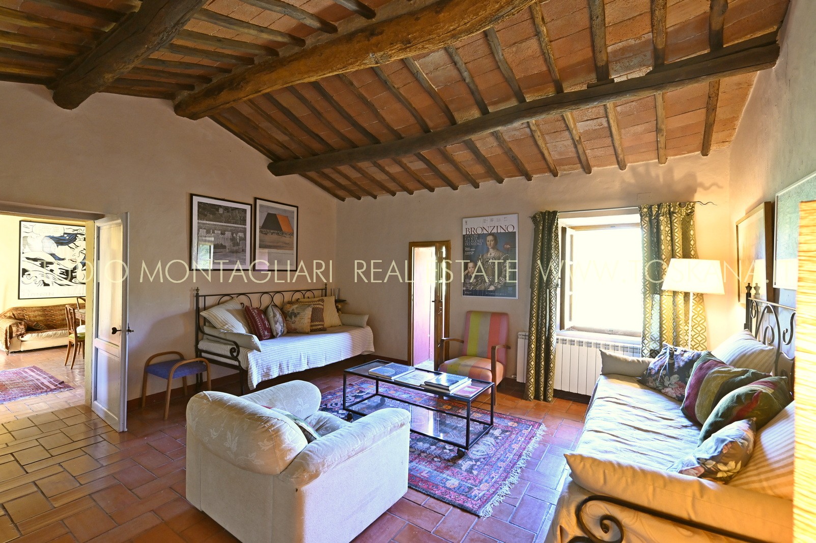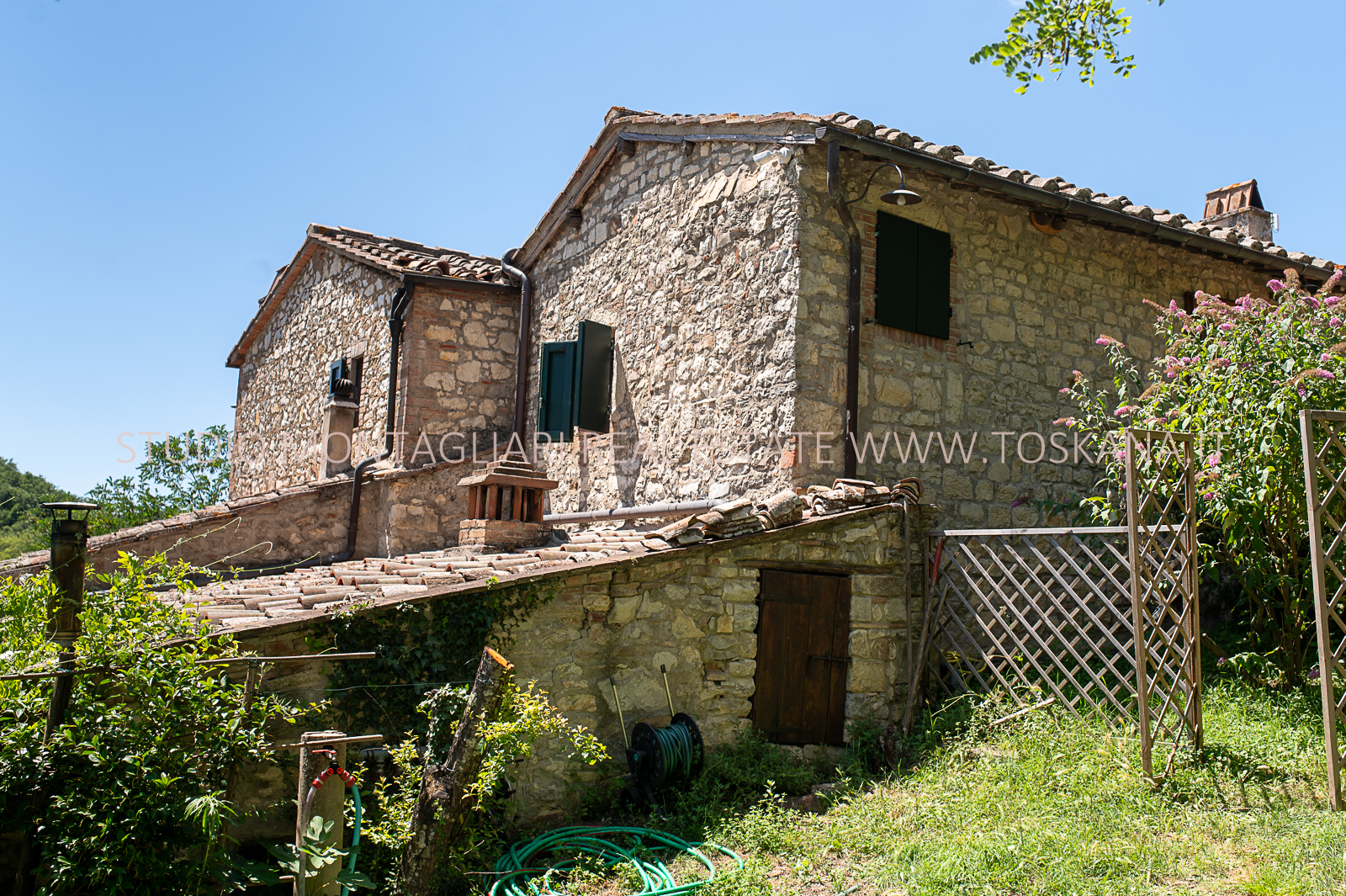 Il casale principale ha una superficie di mq. 410 mq su due livelli ed è attualmente divisa in due appartamenti collegati internamente. Il piano terra è composto da una loggia con forno originale, un ingresso, una cucina con zona pranzo, un bagno, due camere da letto e un locale accessorio. Al piano seminterrato si trova un locale accessorio, la lavanderia e un bagno. Tramite una scala interna ed anche esterna si raggiunge il primo piano con soggiorno con antico camino, cucina, 3 camere da letto ed un bagno.