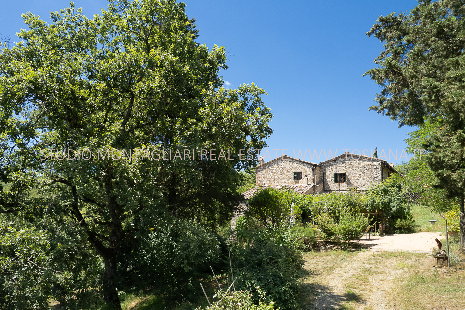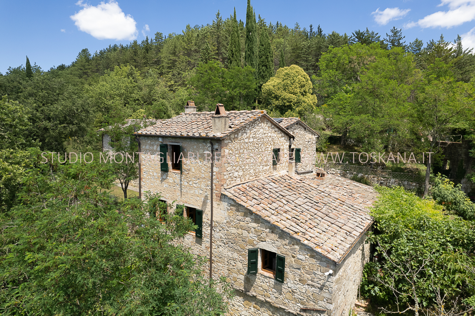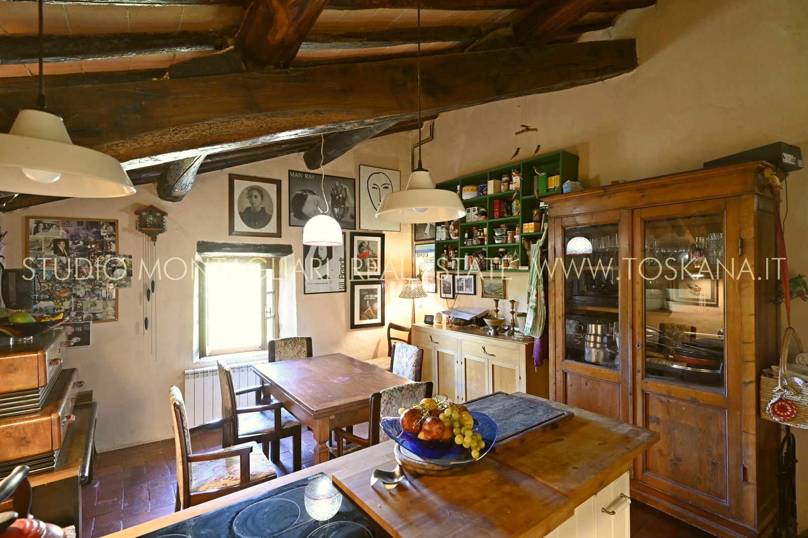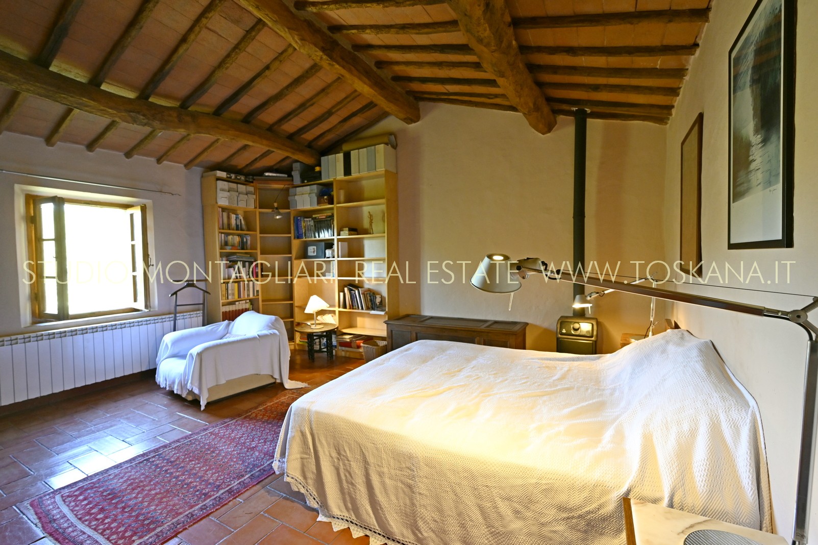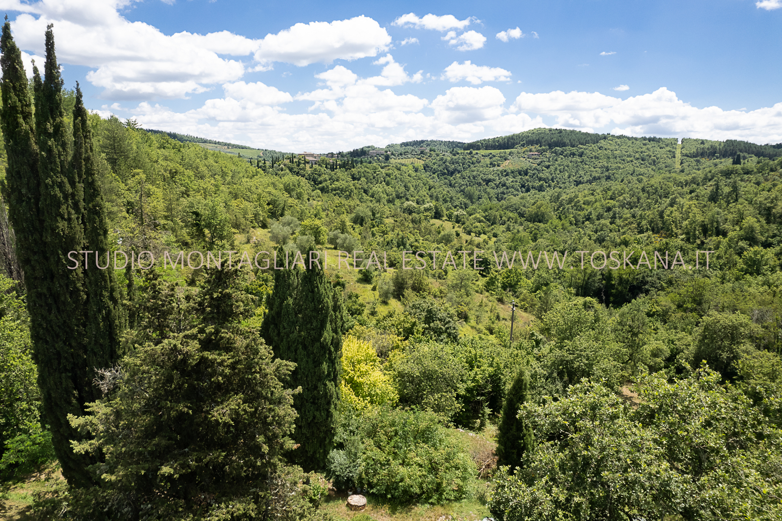 Nel cuore del Chianti Classico, tra Radda e Castellina, immerso in un luogo incantato fatto di boschi e accompagnato dal dolce suono di un ruscello, si trova questo tipico casale toscano con annesso e 3,5 ettari di terreno.