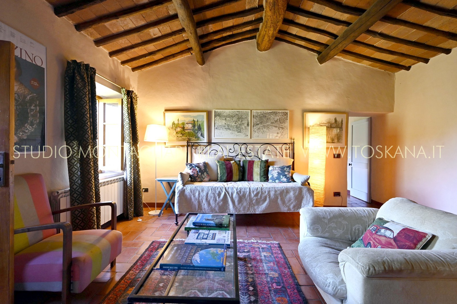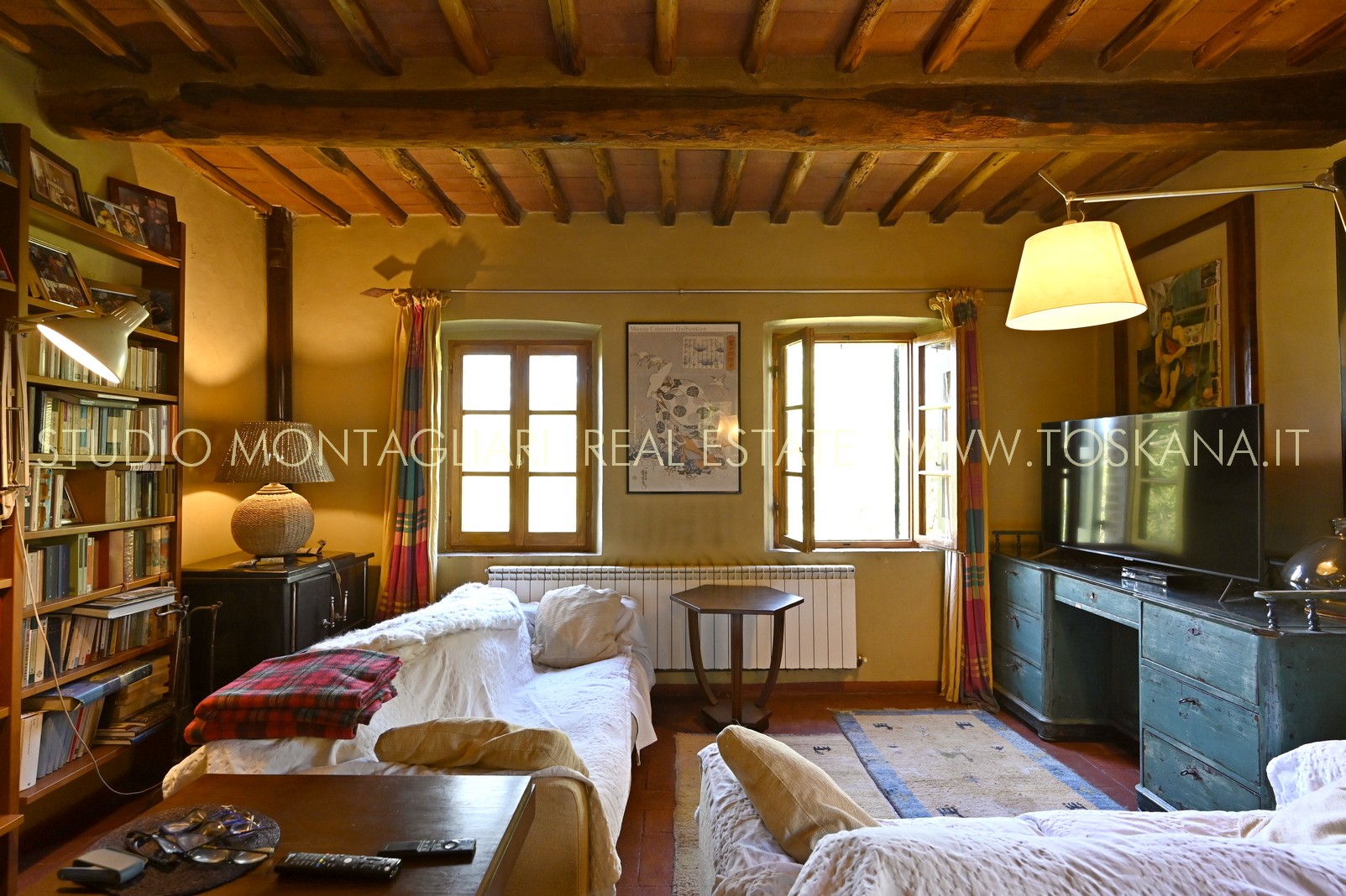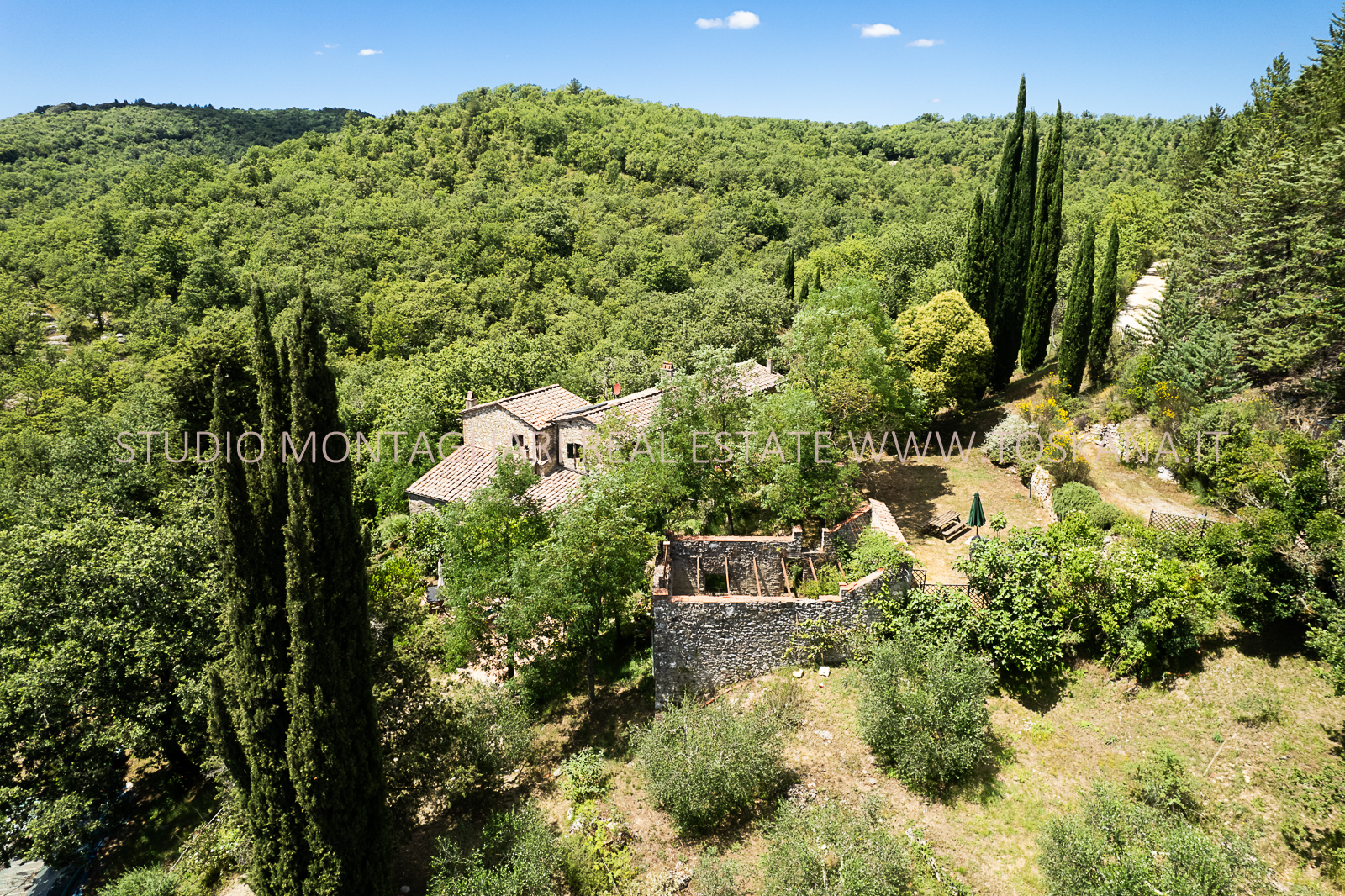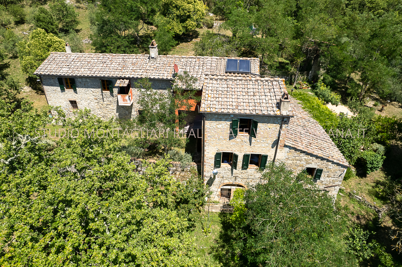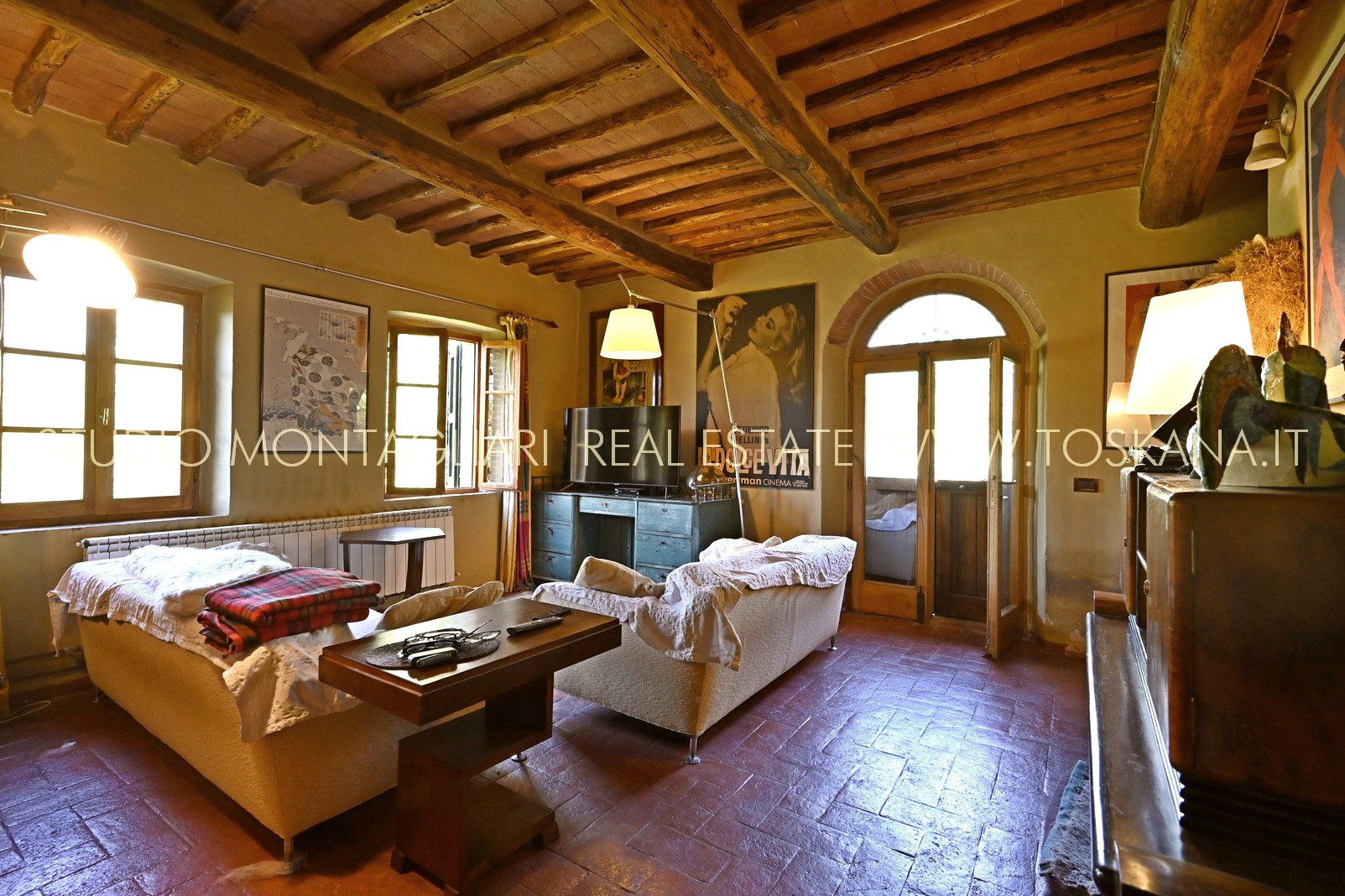 Nel cuore del Chianti Classico, tra Radda e Castellina, immerso in un luogo incantato fatto di boschi e accompagnato dal dolce suono di un ruscello, si trova questo tipico casale toscano con annesso e 3,5 ettari di terreno.