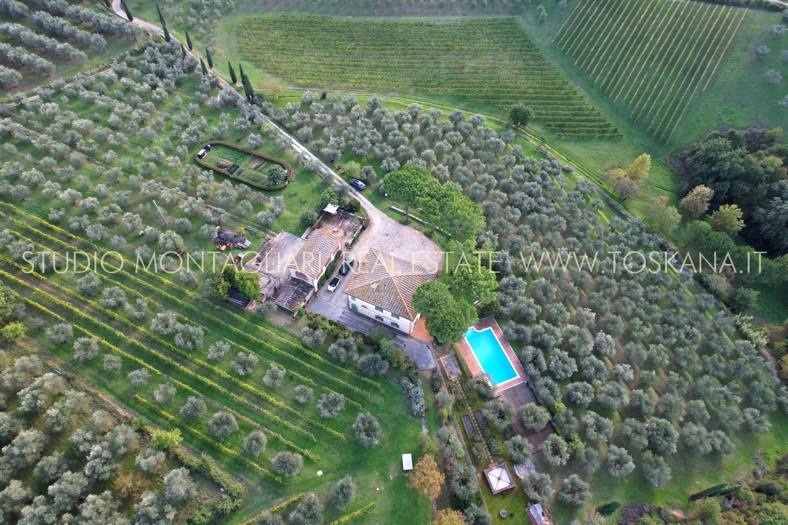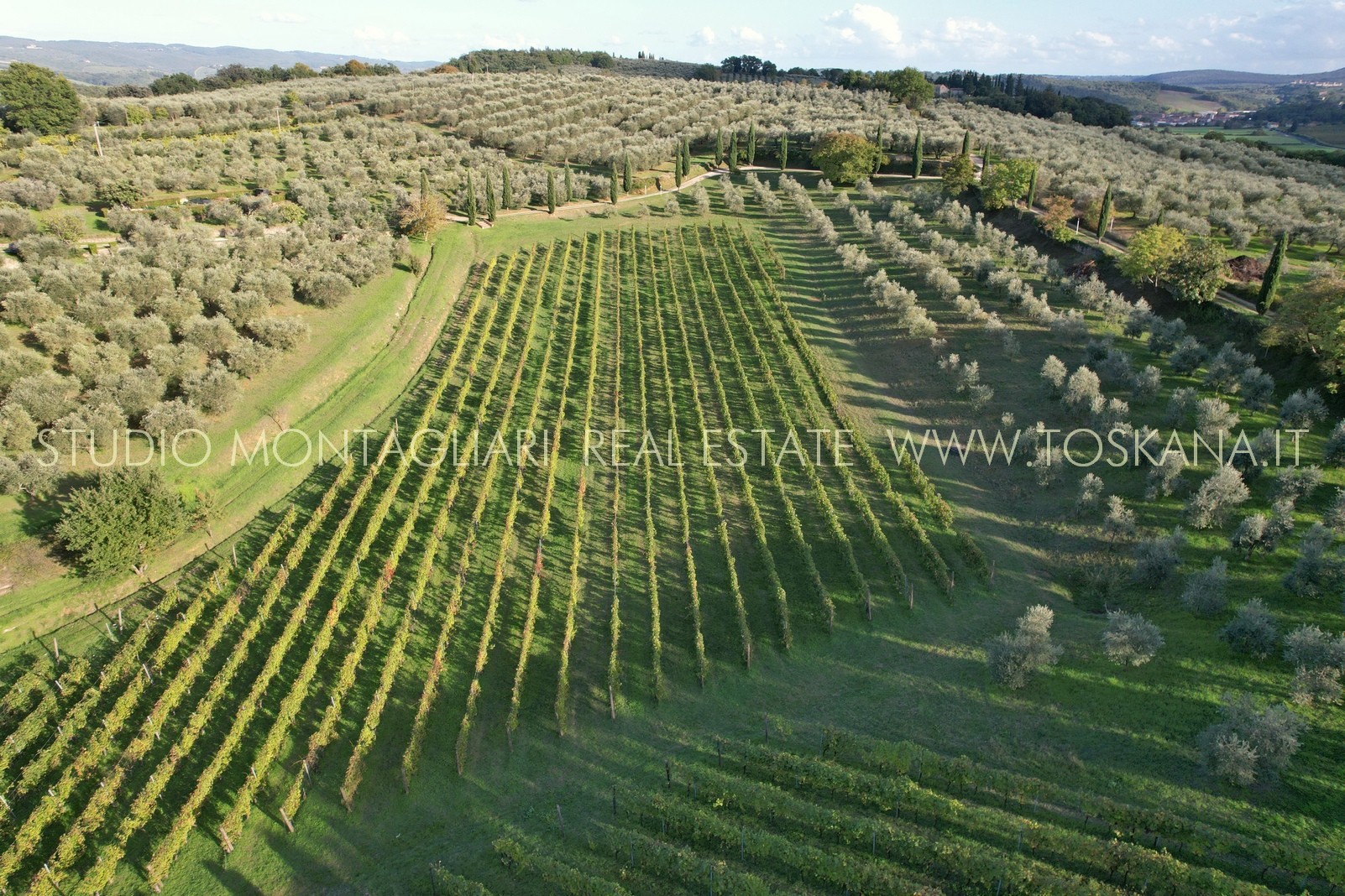 Tre IGT vengono vinificati ed invecchiati nel legno nel ex-fienile il quale ha un doppio volume con galleria ed è enologicamente ben attrezzato. Il terreno è composto da 12 ha di cui quasi 2 ha di vigneto, uliveto con 550 alberi e bosco misto. Ci sono tre vigneti di cui circa 1,5 ettari di Sangiovese, con le restanti parcelle equamente divise tra Merlot e Cabernet Sauvignon. Due campi di seminativo si prestano anche per tenere cavalli. Vicino ai prati vi è un annesso in pietra il quale dispone dell'allacciamento dell' acqua e elettricità.