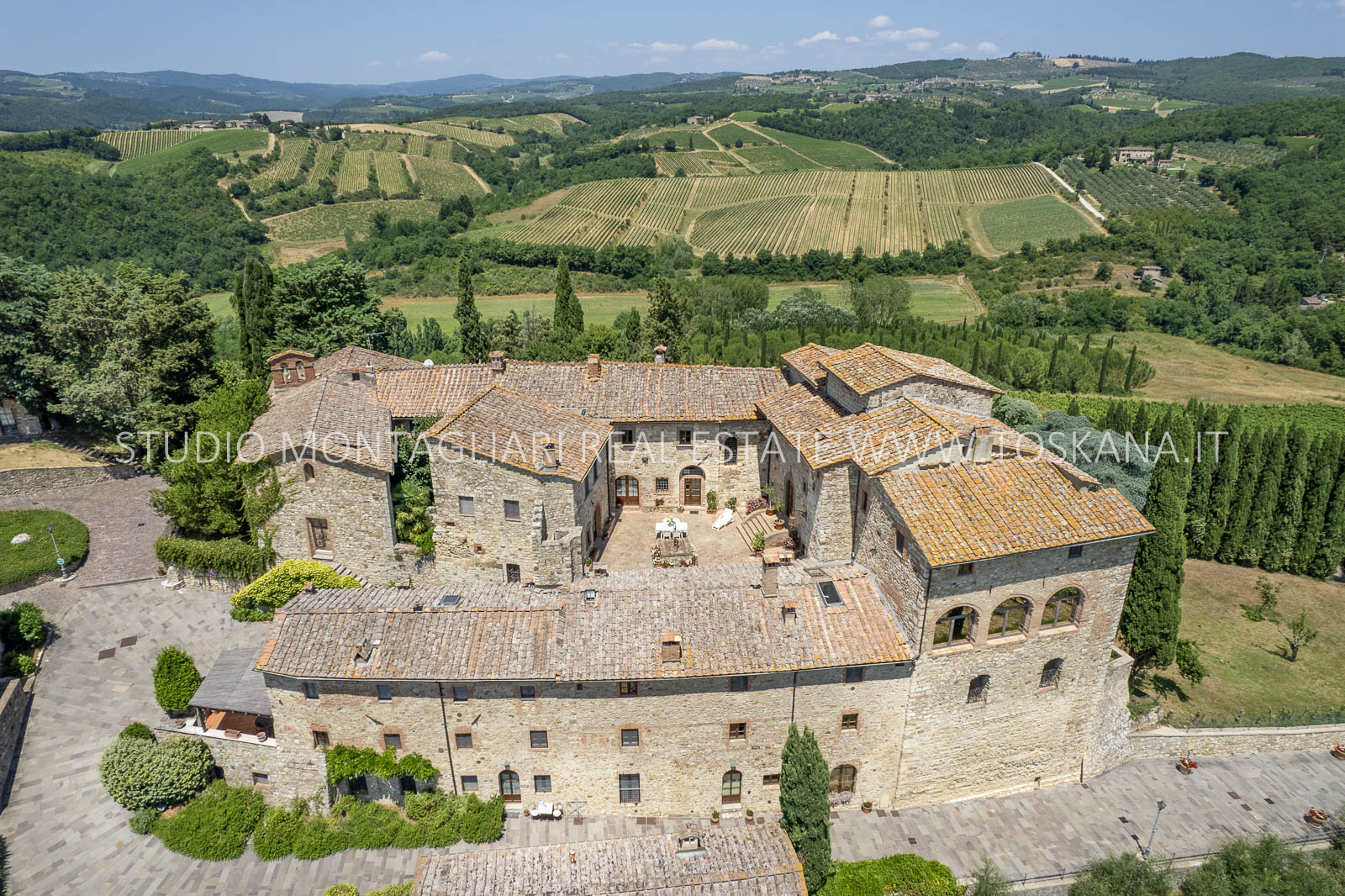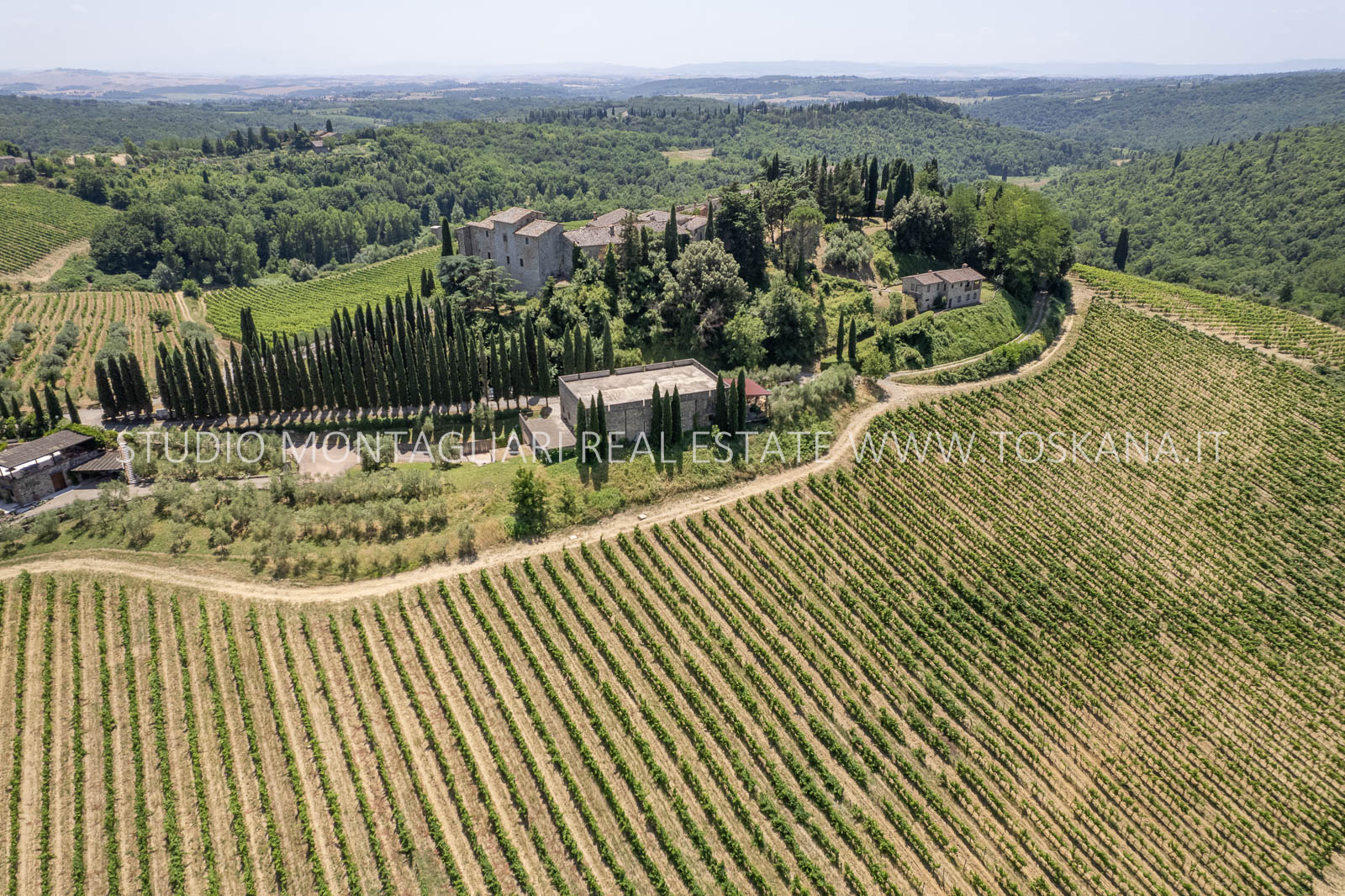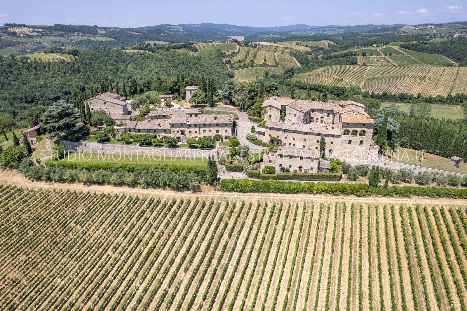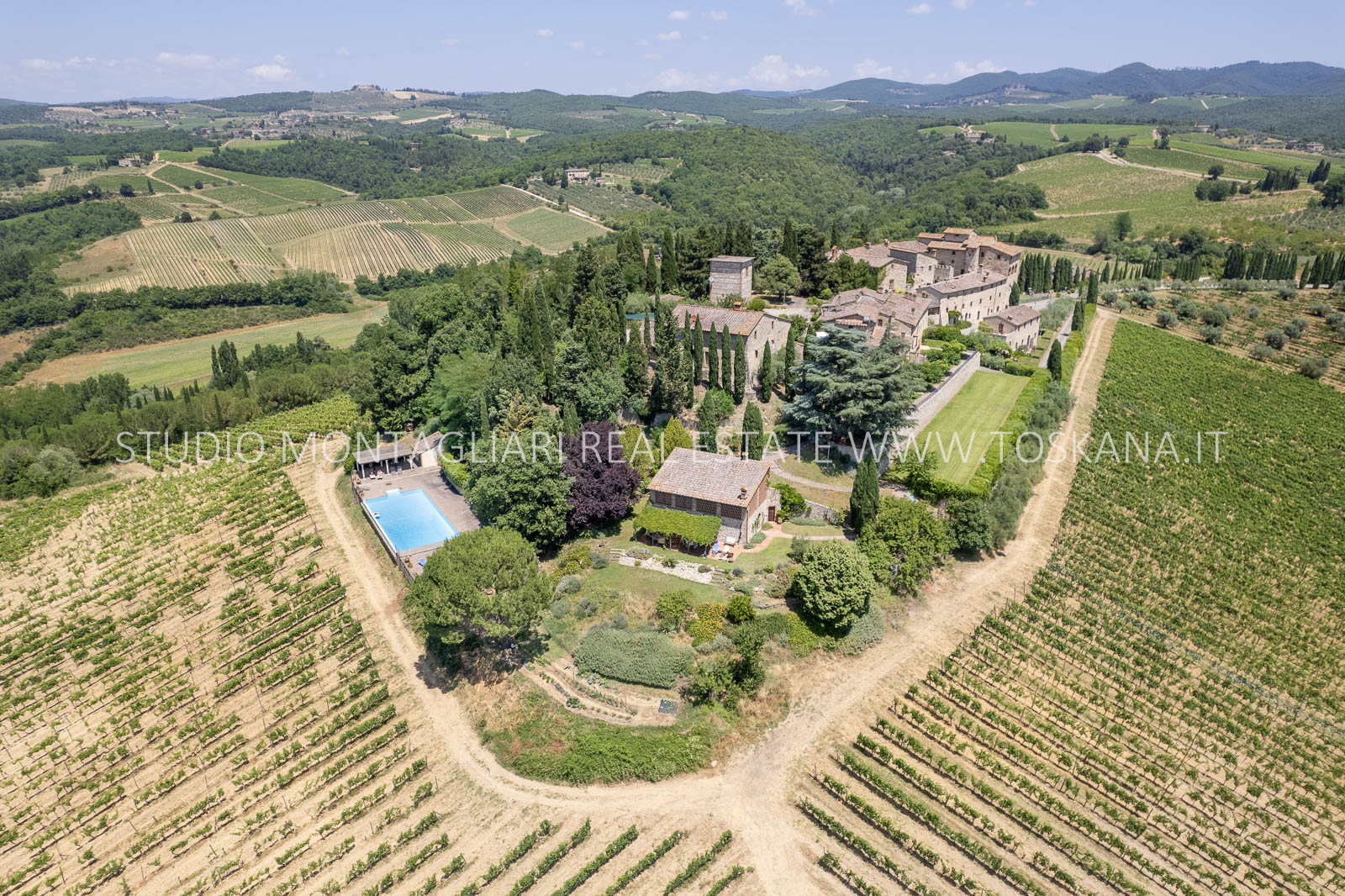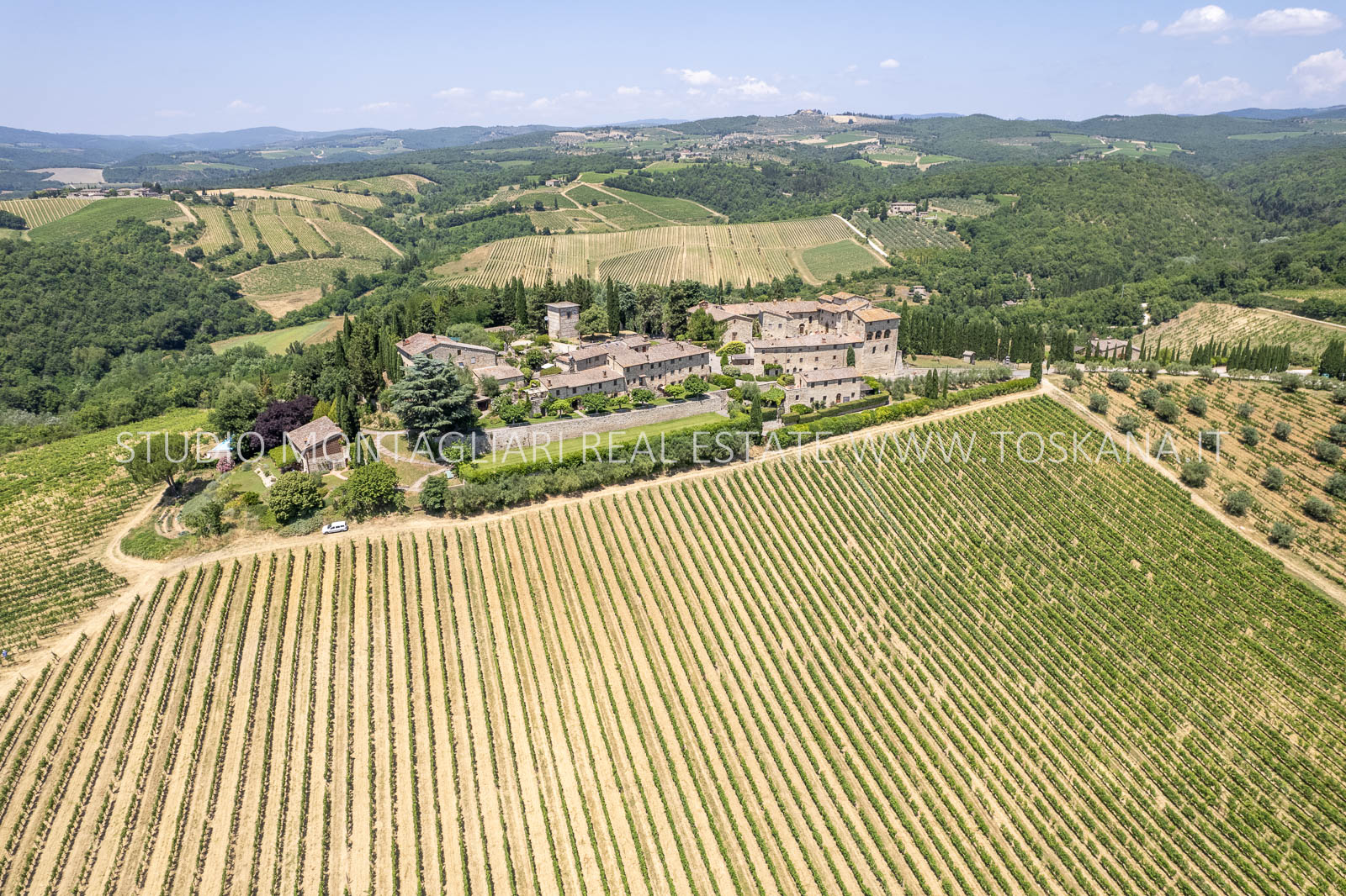 Nel cuore della famosa regione vinicola del Chianti Classico, a soli 12 km da Siena, sorge questa storica ed elegante azienda vinicola che include un antico castello dalla vista spettacolare a 360 gradi sulle colline circostanti. La proprietà si estende su circa 48 ettari di terreno con ottima esposizione, di cui 14 ettari di vigneto Chianti Classico DOCG (12 ettari sono in produzione), 3 ettari di uliveto, bosco, terreni coltivabili e pascoli.