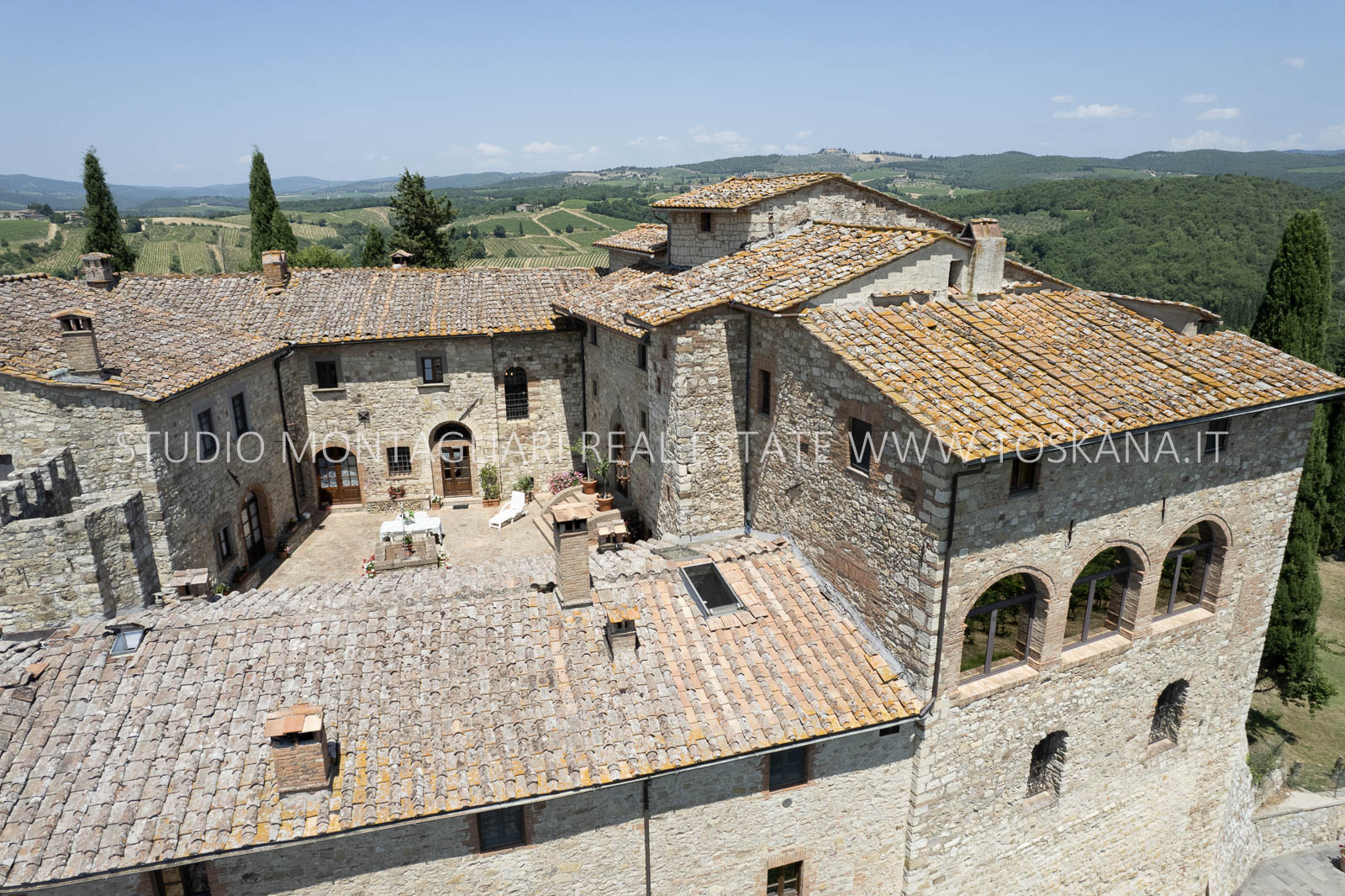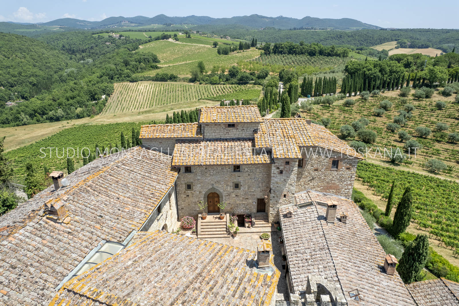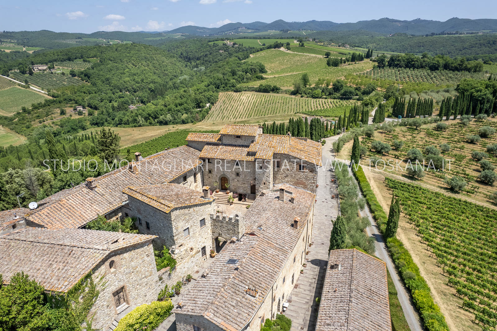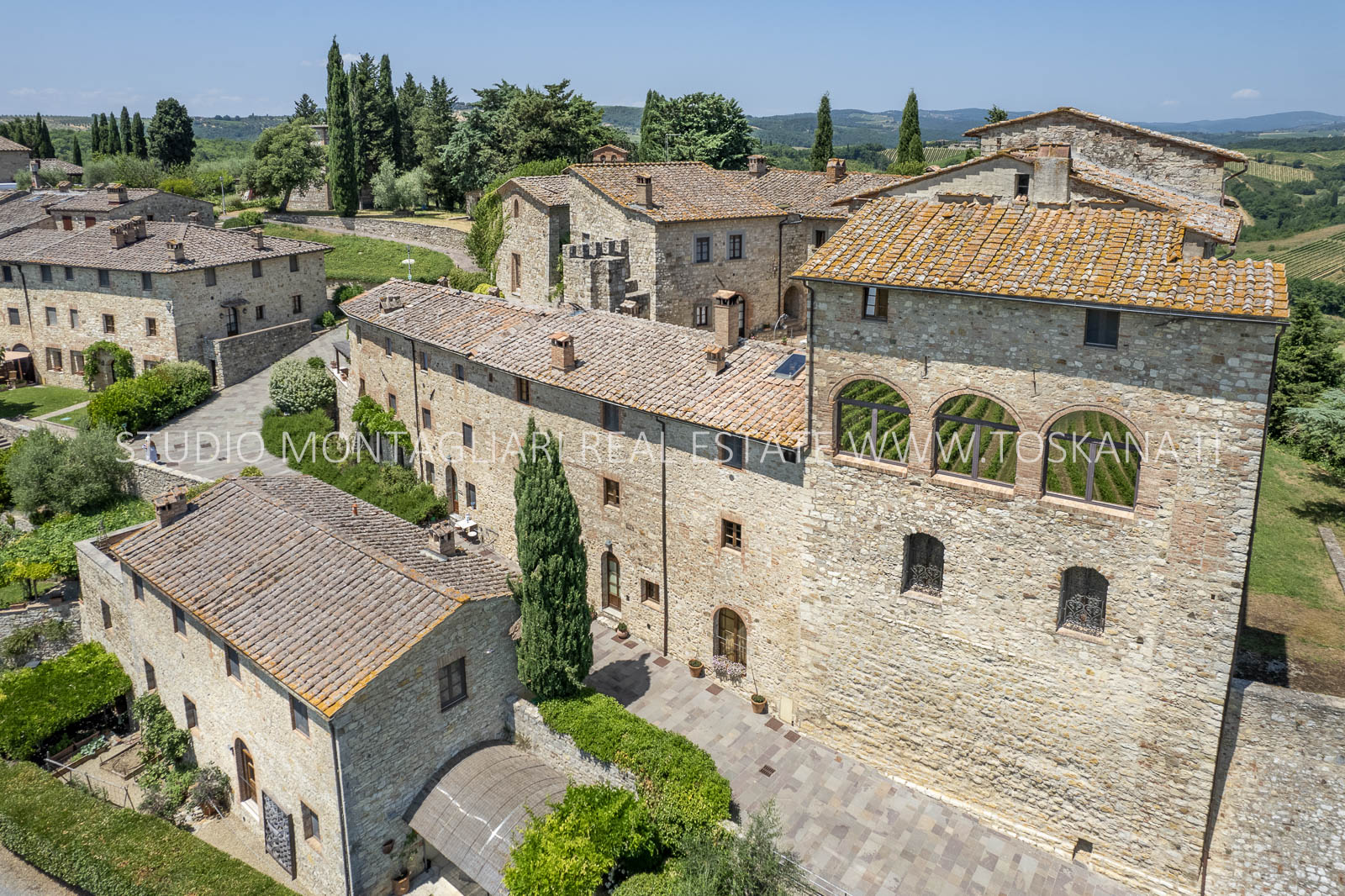 Nel cuore della famosa regione vinicola del Chianti Classico, a soli 12 km da Siena, sorge questa storica ed elegante azienda vinicola che include un antico castello dalla vista spettacolare a 360 gradi sulle colline circostanti. La proprietà si estende su circa 48 ettari di terreno con ottima esposizione, di cui 14 ettari di vigneto Chianti Classico DOCG (12 ettari sono in produzione), 3 ettari di uliveto, bosco, terreni coltivabili e pascoli.