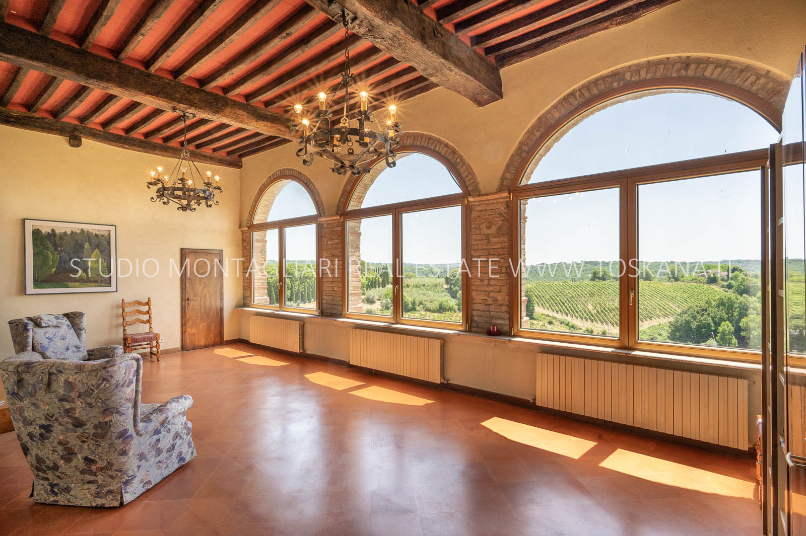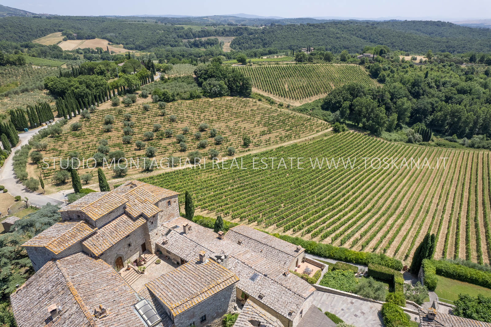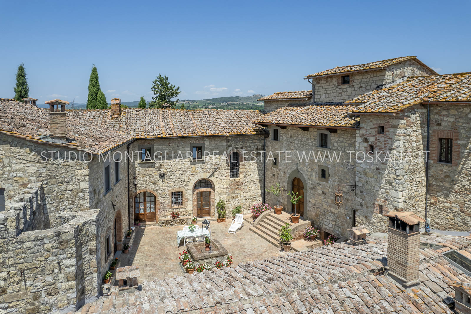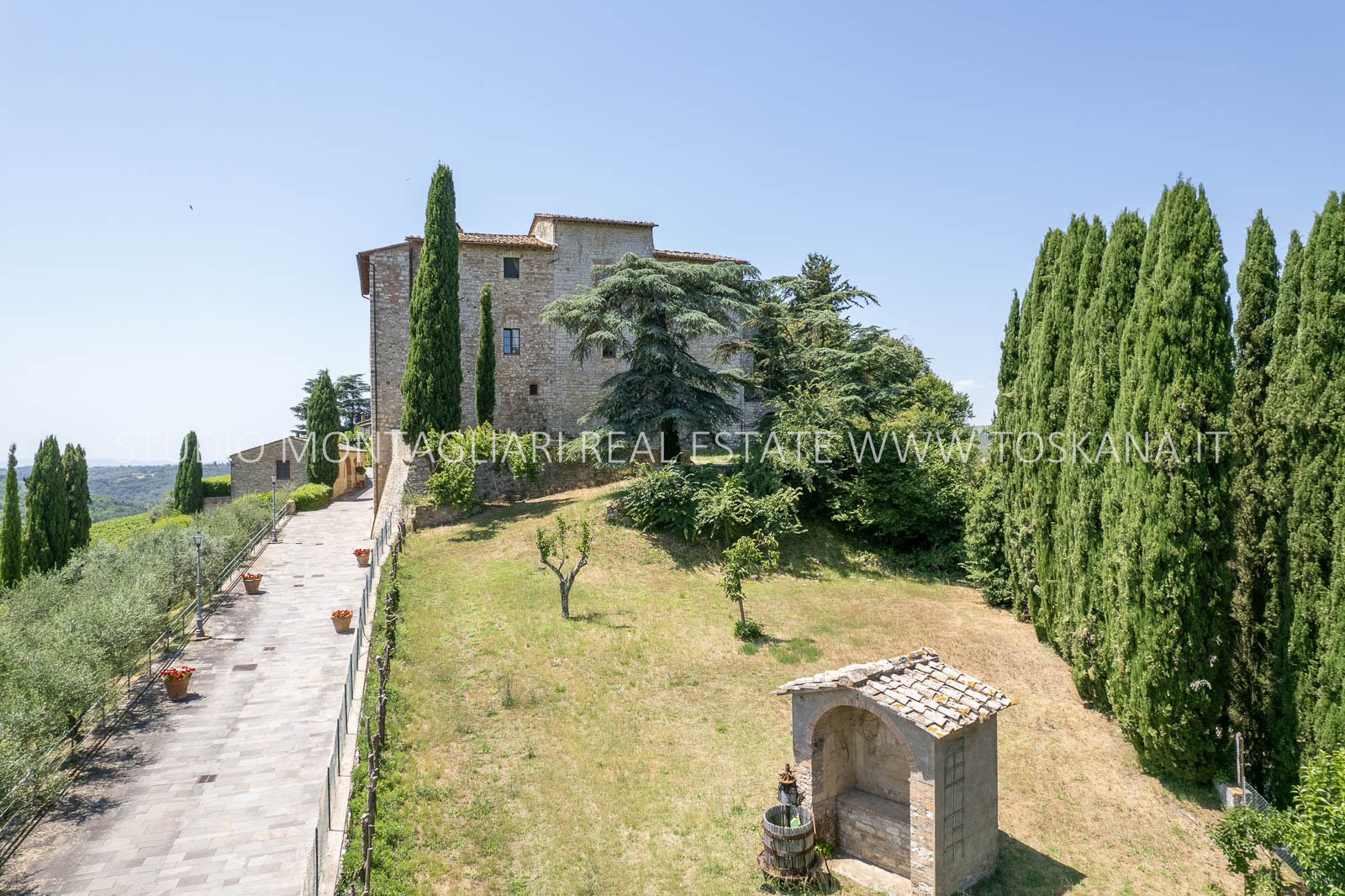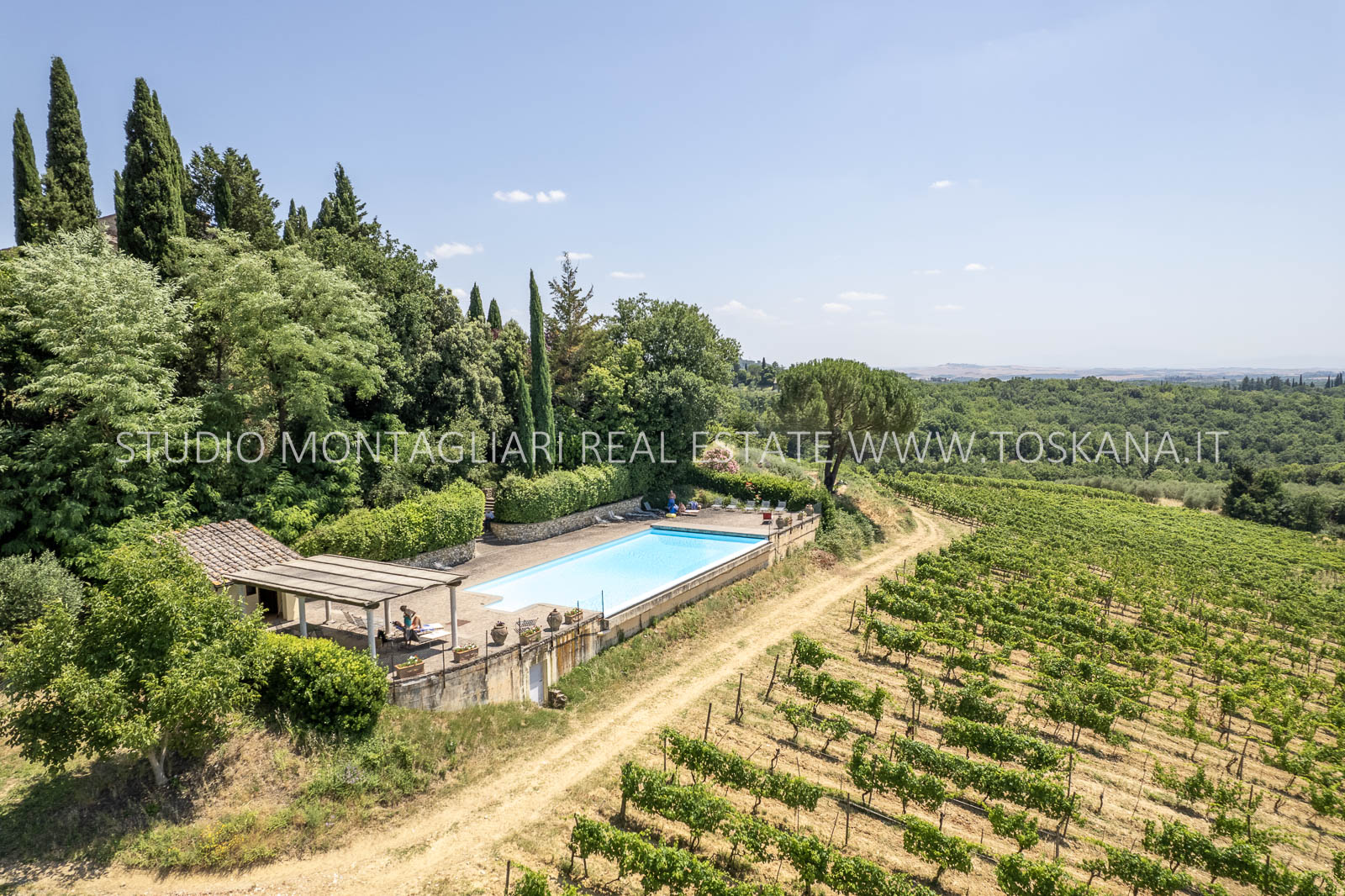 Nel cuore della famosa regione vinicola del Chianti Classico, a soli 12 km da Siena, sorge questa storica ed elegante azienda vinicola che include un antico castello dalla vista spettacolare a 360 gradi sulle colline circostanti. La proprietà si estende su circa 48 ettari di terreno con ottima esposizione, di cui 14 ettari di vigneto Chianti Classico DOCG (12 ettari sono in produzione), 3 ettari di uliveto, bosco, terreni coltivabili e pascoli.