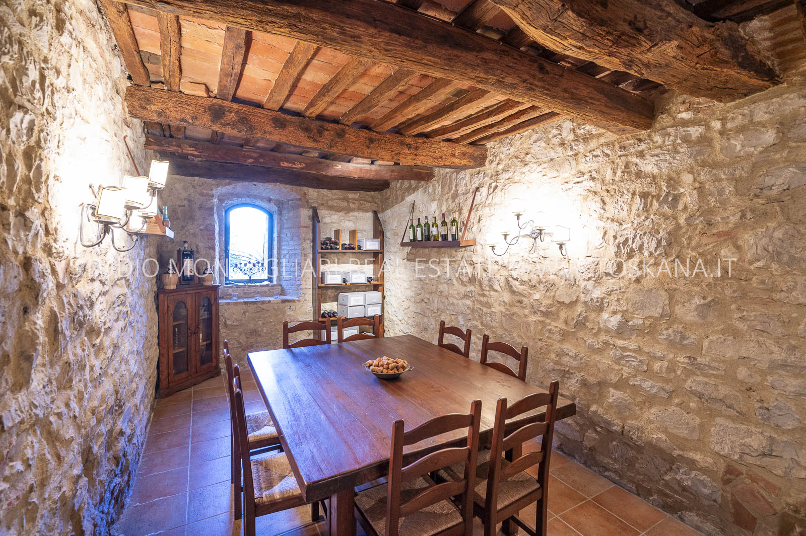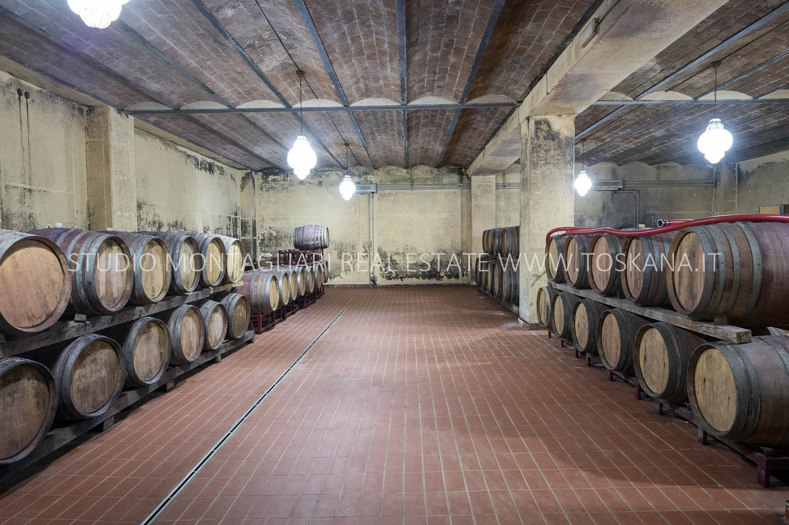 La storica cantina, di circa 300 mq, presenta soffitti alti 6 metri e include un muro romano. Adiacente al castello si trova un giardino privato di 4.200 mq, mentre sul versante sud del borgo si trova una piscina a sfioro di 18 x 9 m con un pergolato, un bagno e dei spogliatoi che si affacciano sui vigneti e i terreni circostanti.
