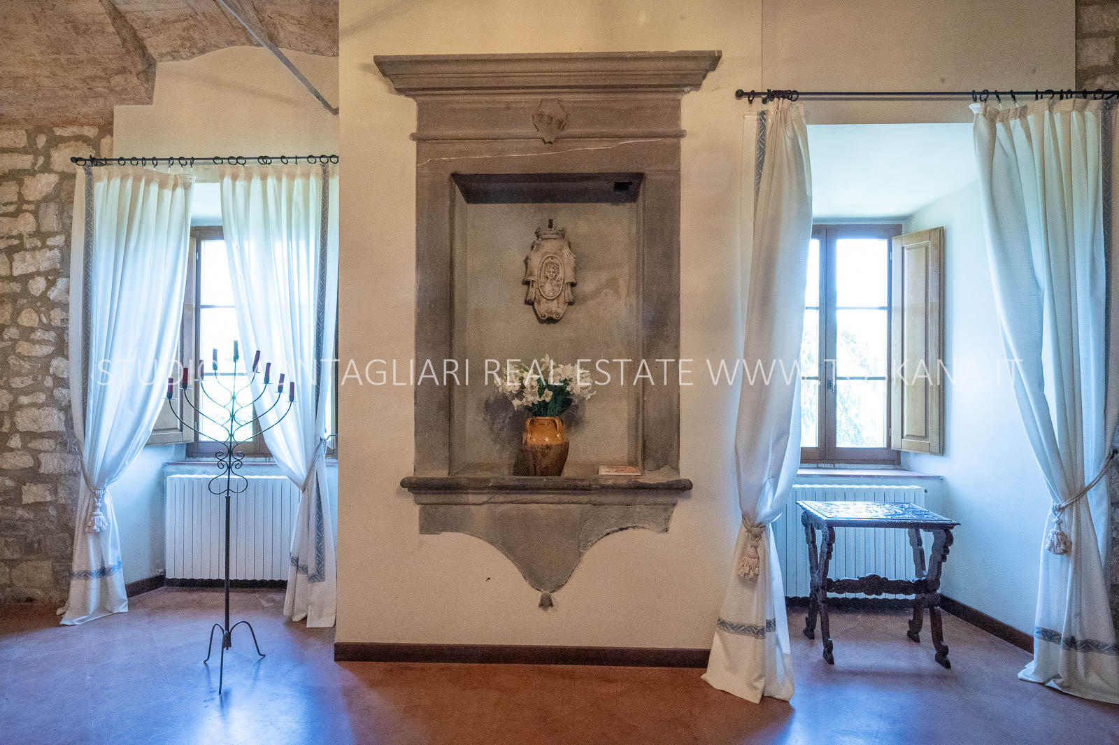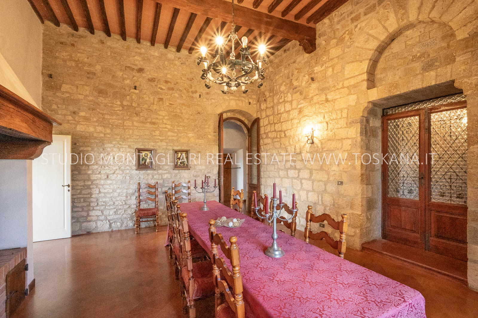 Il castello, accuratamente restaurato, ha una superficie netta di circa 1.300 mq e comprende 4 camere da letto, 5 bagni, una grande cucina, un salone, una sala da pranzo, diverse sale per ricevimenti e una impressionante biblioteca/studio con camino. Inoltre, è presente un appartamento indipendente con cucina, soggiorno/sala da pranzo con camino, 3 camere da letto e 2 bagni. Entrambe le unità sono collegate internamente.