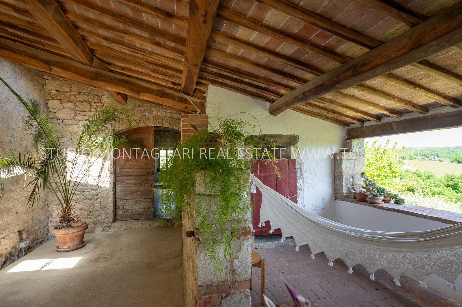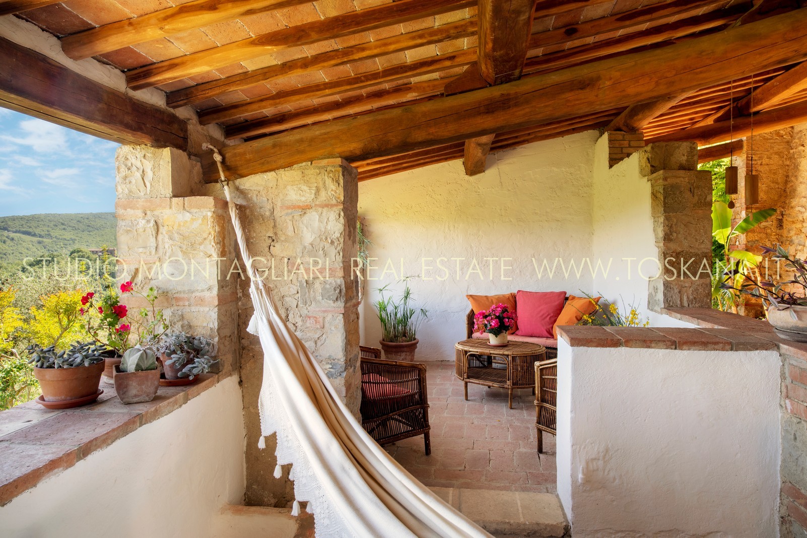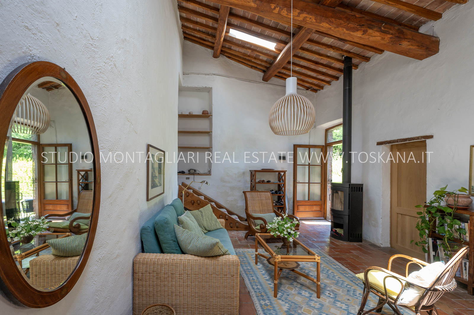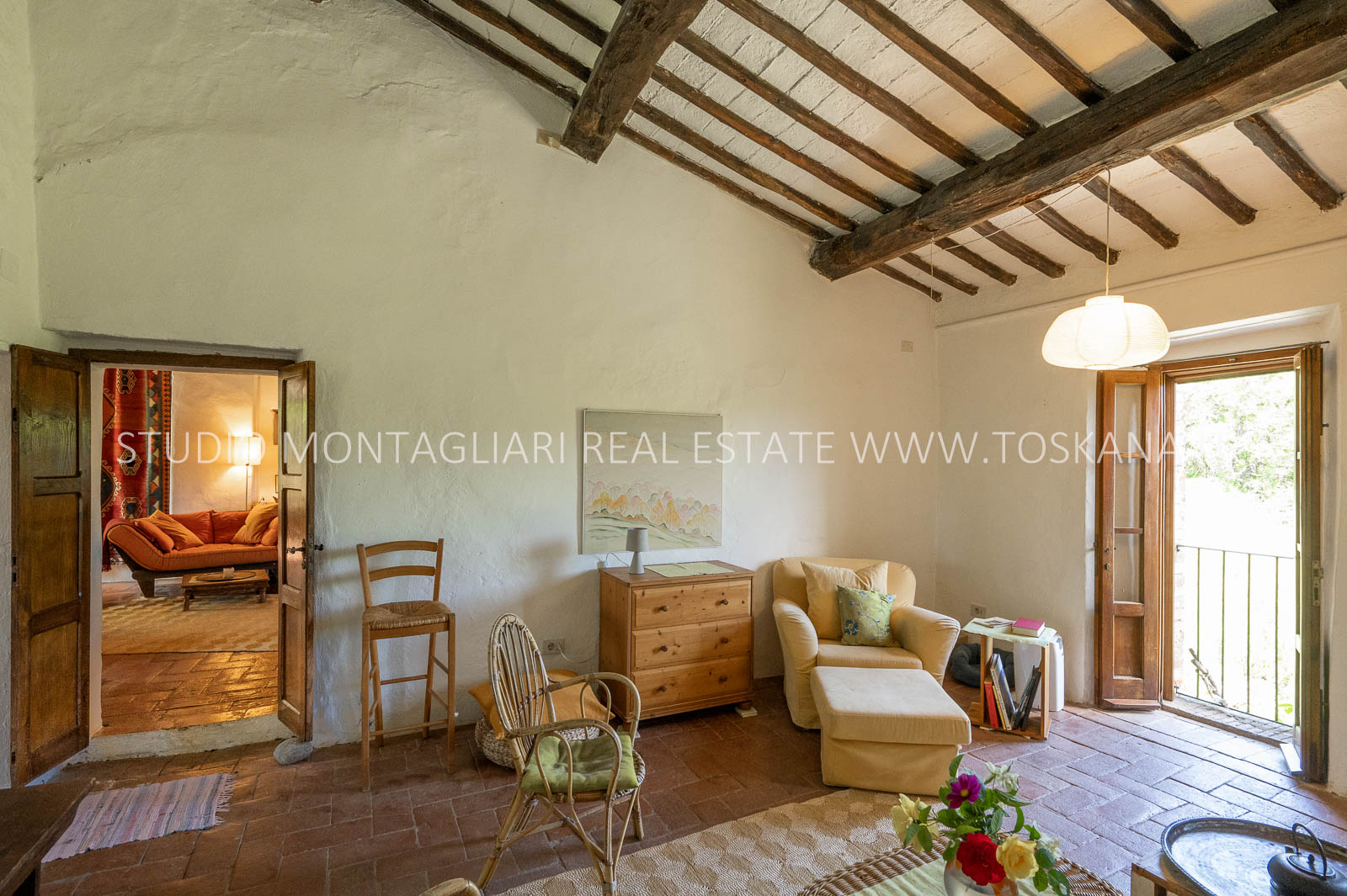 La superficie abitabile totale è di 585 mq, con ulteriori 480 mq disponibili per nuovi sviluppi. Questi includono una splendida loggia, un ampio ex locale vinicolo a livello del suolo con grandi finestre, e un fienile non ristrutturato di 100 mq con il potenziale per realizzare due ulteriori appartamenti.Gli ambienti sono spaziosi, inondati di luce naturale e godono di viste panoramiche mozzafiato sulla natura circostante, fino al Monte Amiata, distante 70 km.