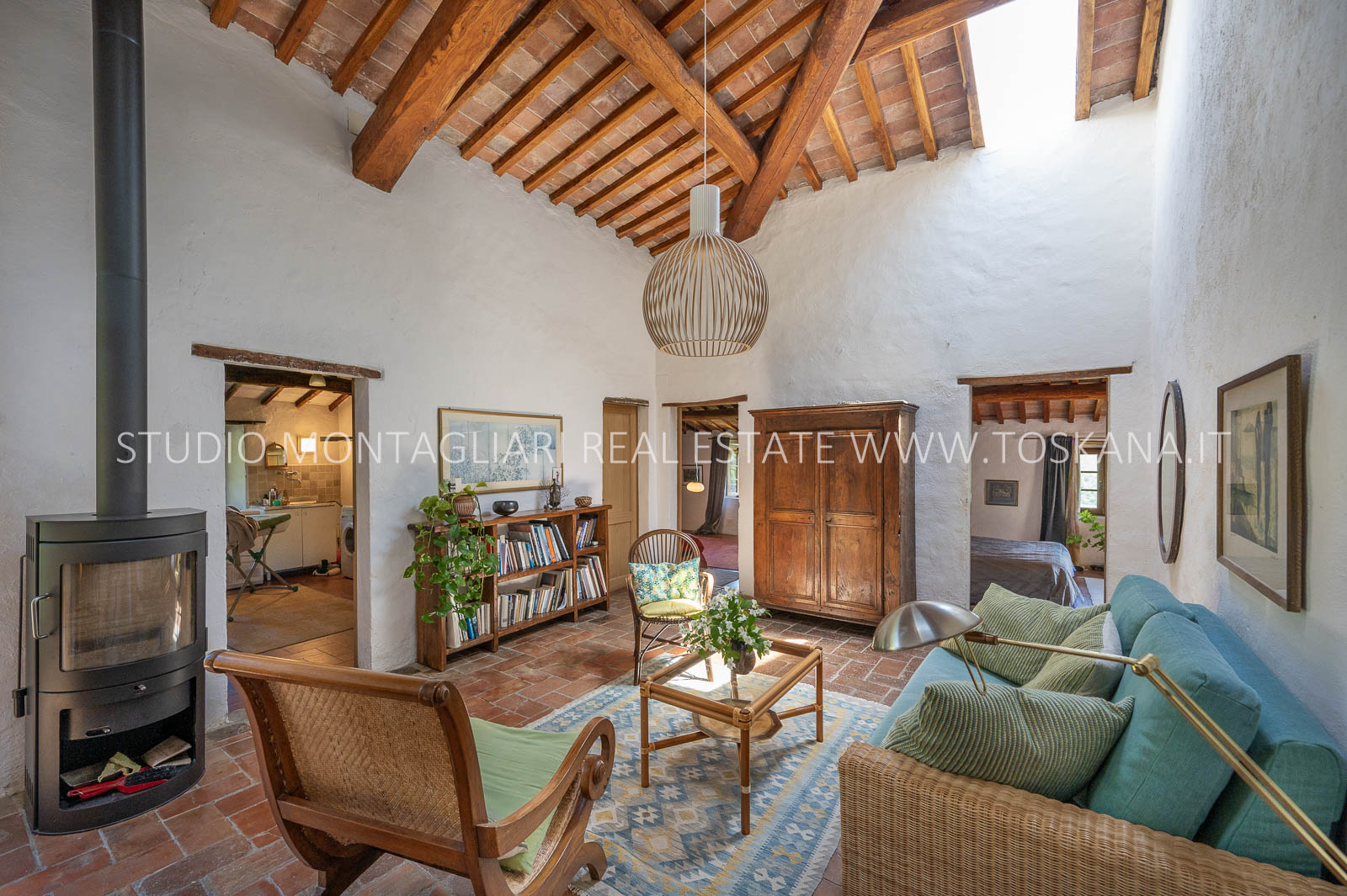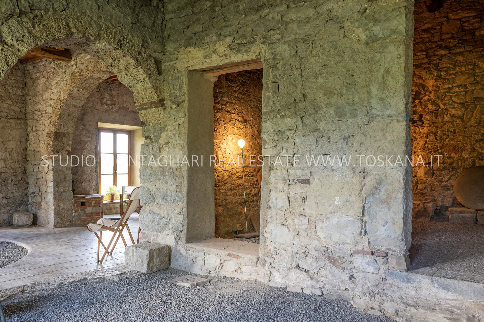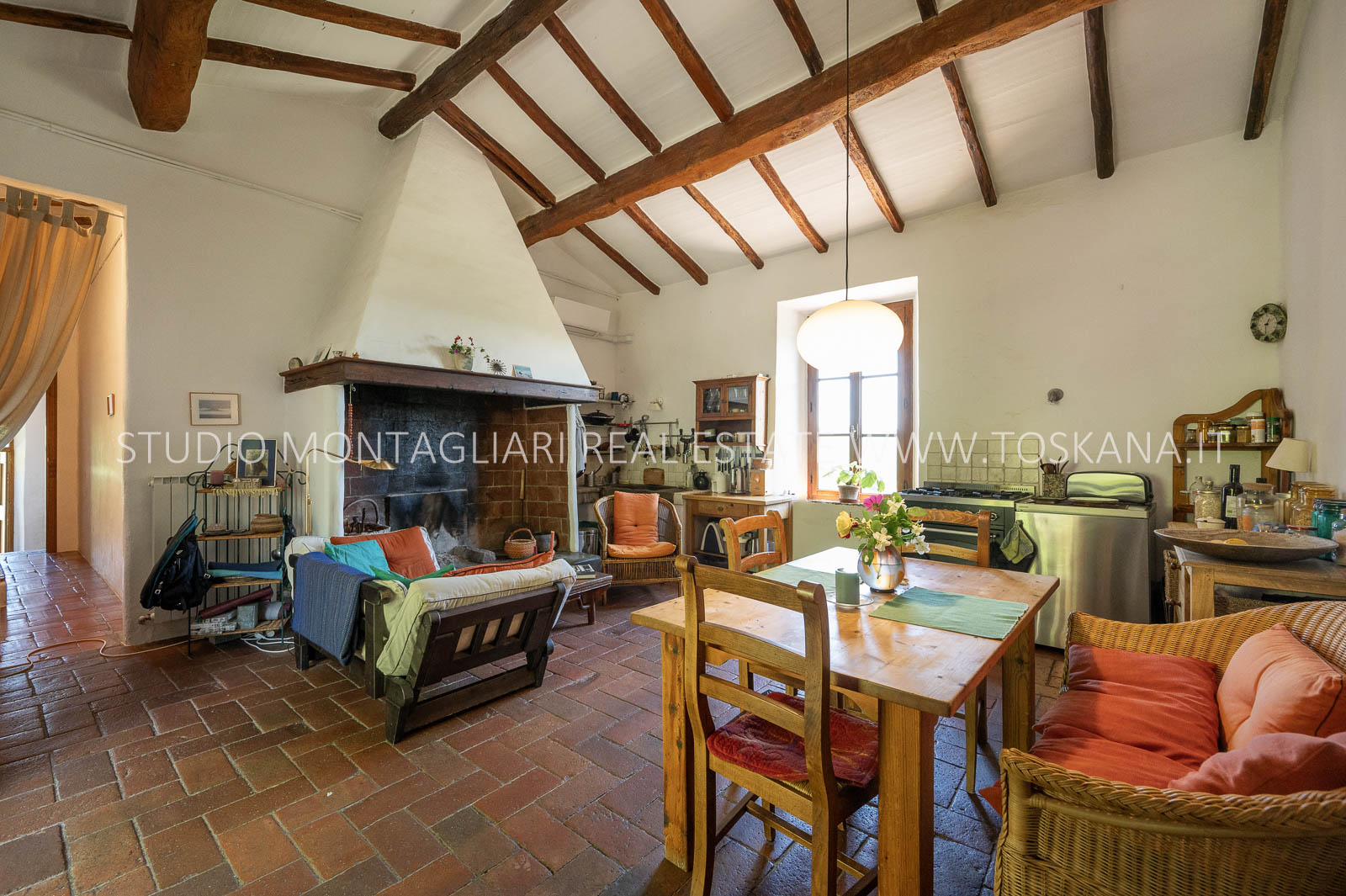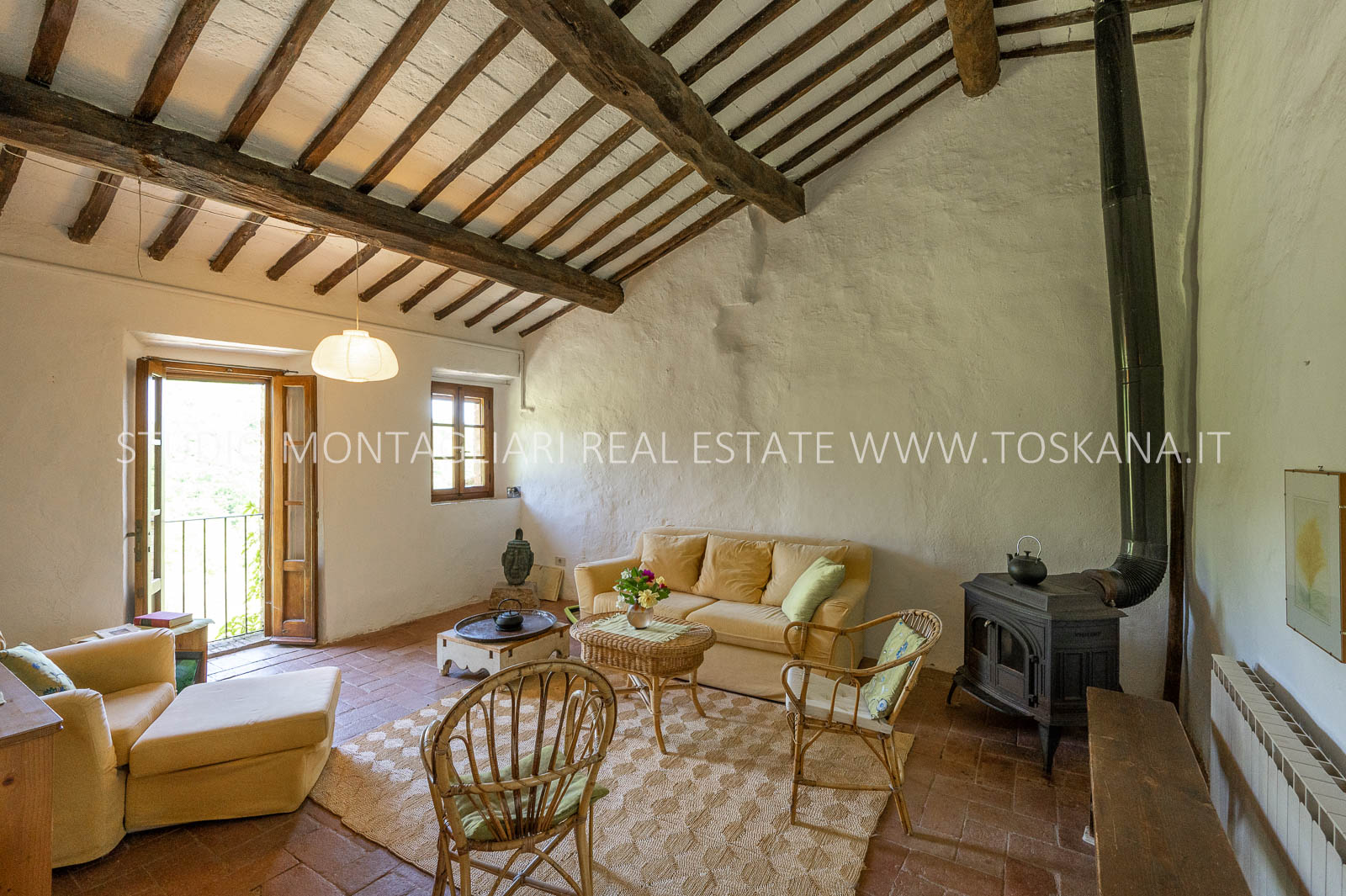 La superficie abitabile totale è di 585 mq, con ulteriori 480 mq disponibili per nuovi sviluppi. Questi includono una splendida loggia, un ampio ex locale vinicolo a livello del suolo con grandi finestre, e un fienile non ristrutturato di 100 mq con il potenziale per realizzare due ulteriori appartamenti.Gli ambienti sono spaziosi, inondati di luce naturale e godono di viste panoramiche mozzafiato sulla natura circostante, fino al Monte Amiata, distante 70 km.