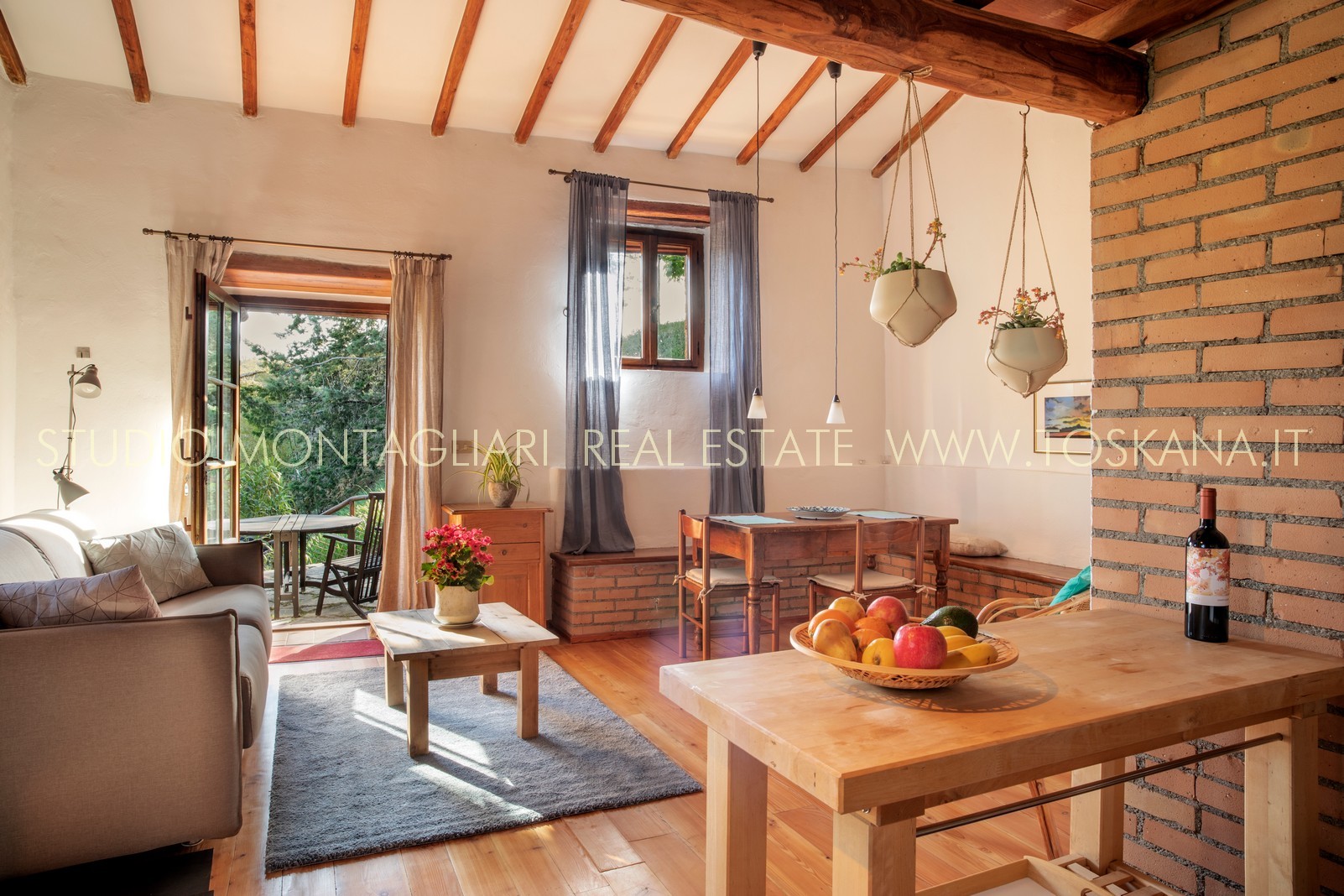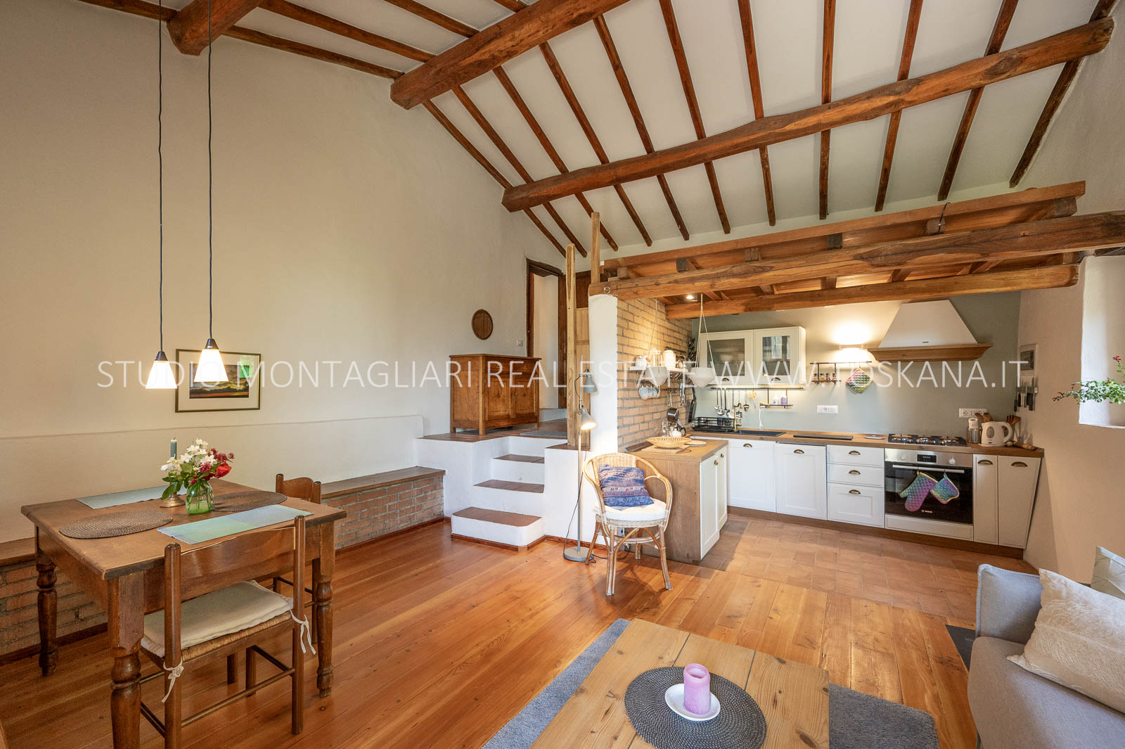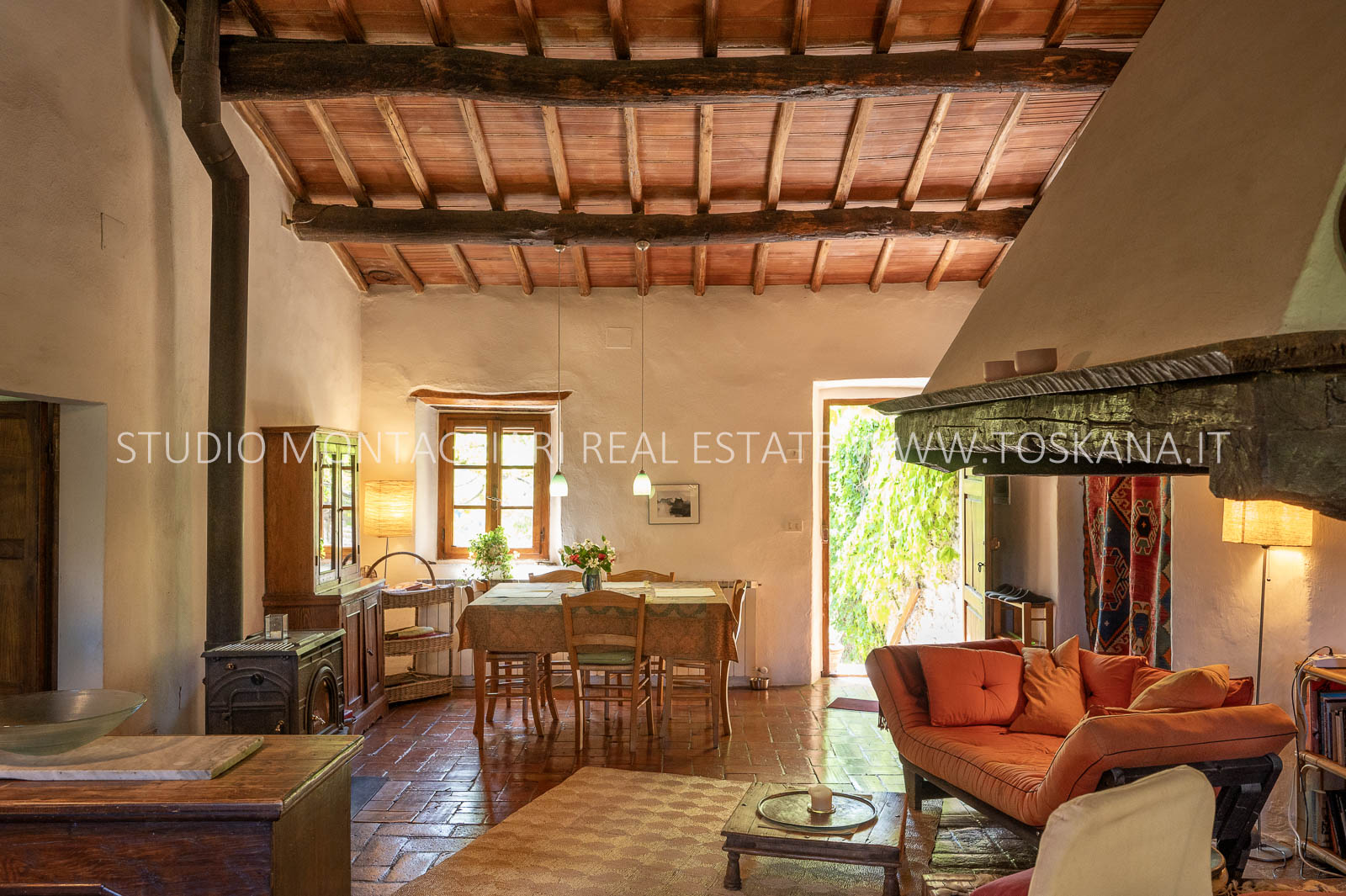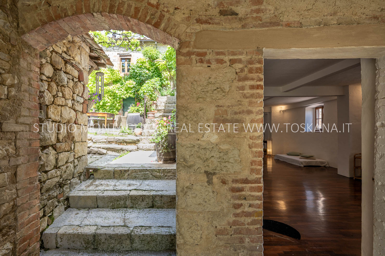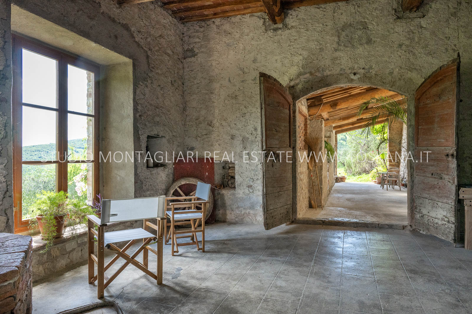 La superficie abitabile totale è di 585 mq, con ulteriori 480 mq disponibili per nuovi sviluppi. Questi includono una splendida loggia, un ampio ex locale vinicolo a livello del suolo con grandi finestre, e un fienile non ristrutturato di 100 mq con il potenziale per realizzare due ulteriori appartamenti.Gli ambienti sono spaziosi, inondati di luce naturale e godono di viste panoramiche mozzafiato sulla natura circostante, fino al Monte Amiata, distante 70 km.