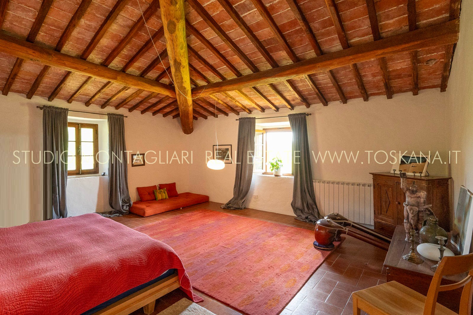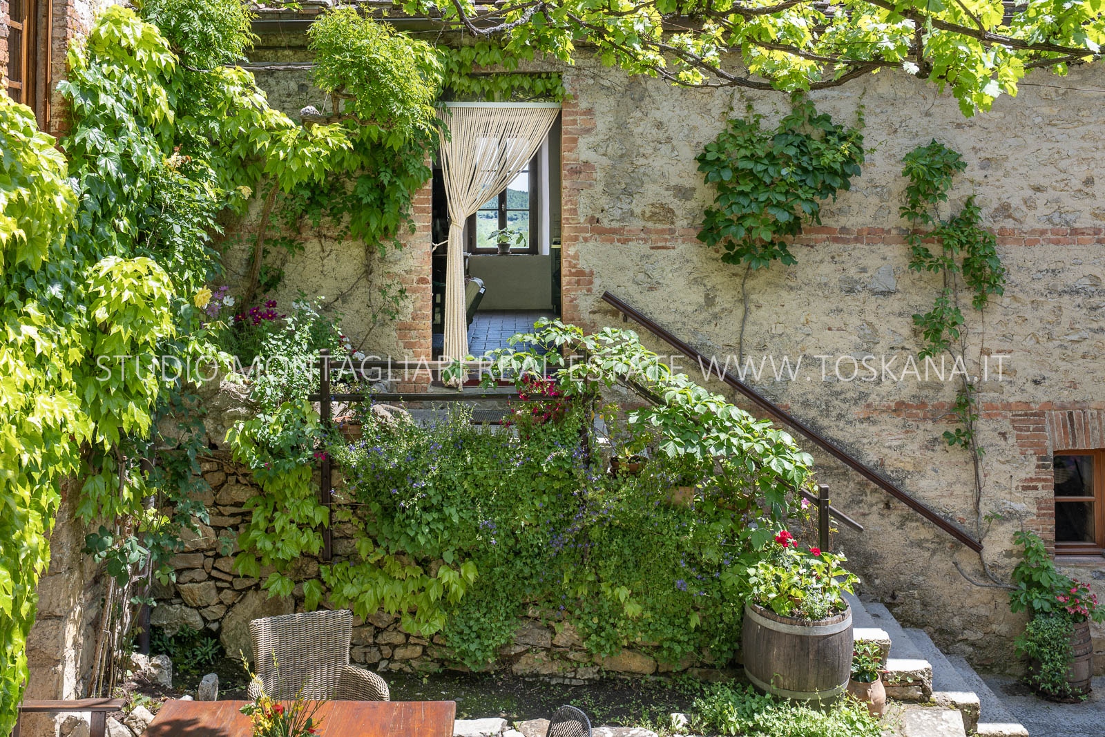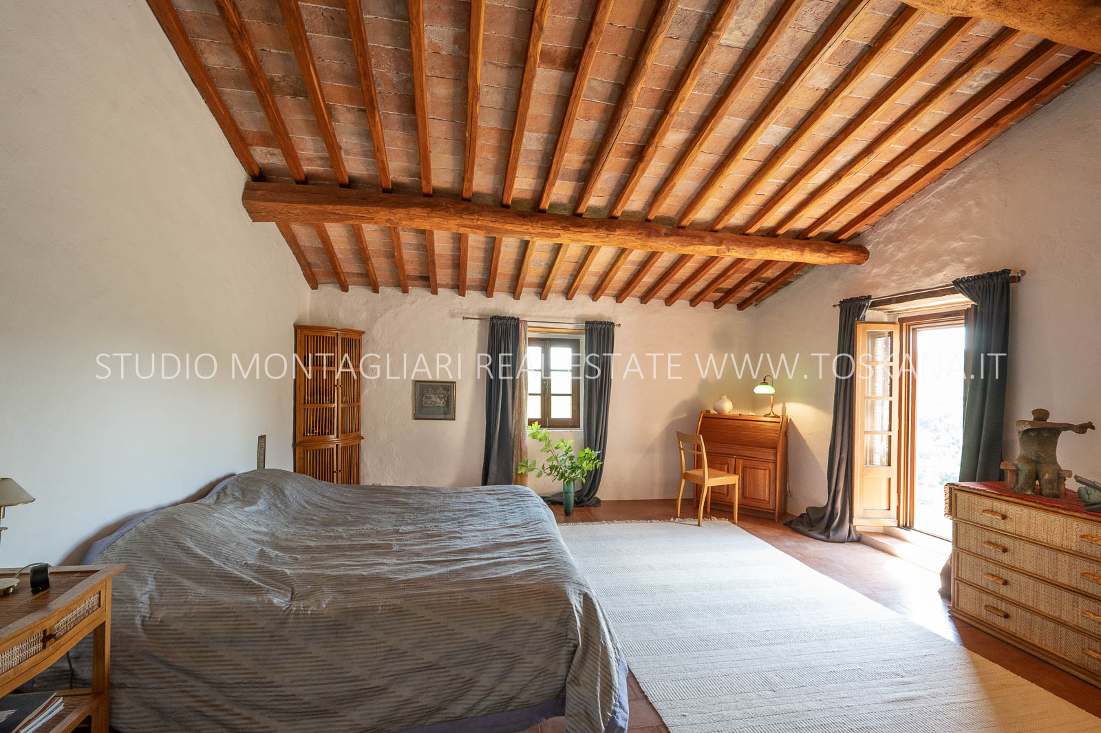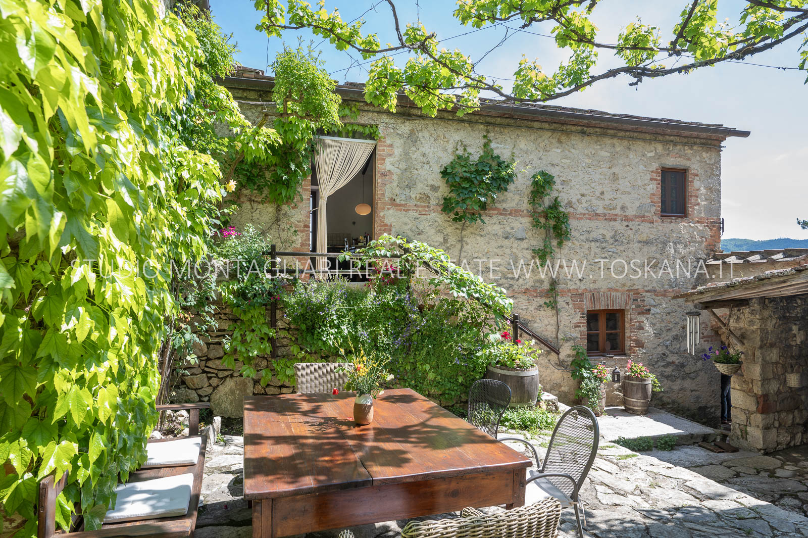 La superficie abitabile totale è di 585 mq, con ulteriori 480 mq disponibili per nuovi sviluppi. Questi includono una splendida loggia, un ampio ex locale vinicolo a livello del suolo con grandi finestre, e un fienile non ristrutturato di 100 mq con il potenziale per realizzare due ulteriori appartamenti.Gli ambienti sono spaziosi, inondati di luce naturale e godono di viste panoramiche mozzafiato sulla natura circostante, fino al Monte Amiata, distante 70 km.