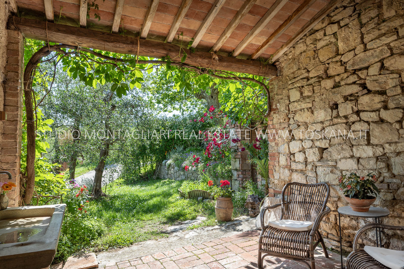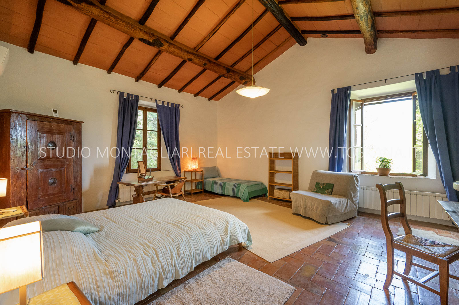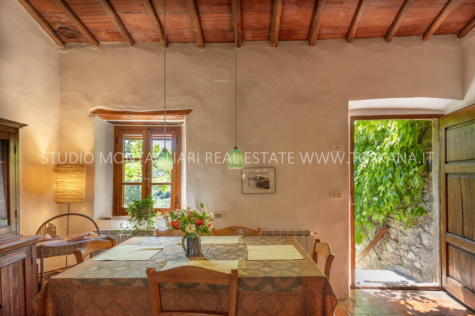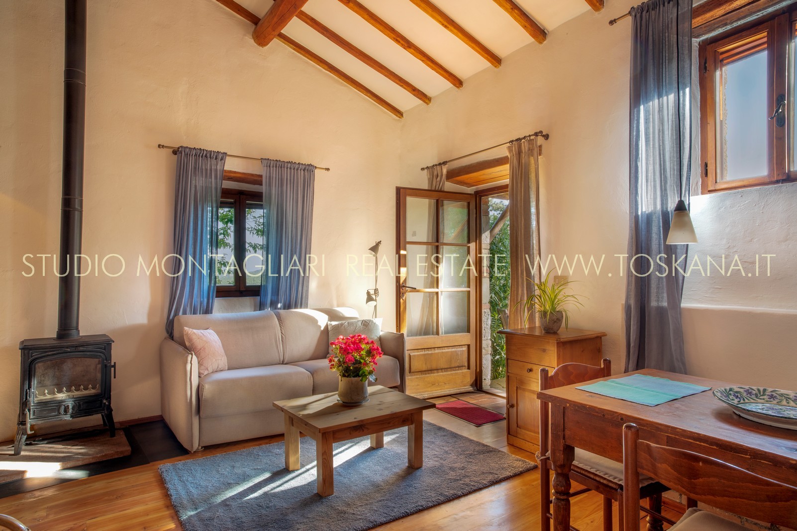 La superficie abitabile totale è di 585 mq, con ulteriori 480 mq disponibili per nuovi sviluppi. Questi includono una splendida loggia, un ampio ex locale vinicolo a livello del suolo con grandi finestre, e un fienile non ristrutturato di 100 mq con il potenziale per realizzare due ulteriori appartamenti.Gli ambienti sono spaziosi, inondati di luce naturale e godono di viste panoramiche mozzafiato sulla natura circostante, fino al Monte Amiata, distante 70 km.