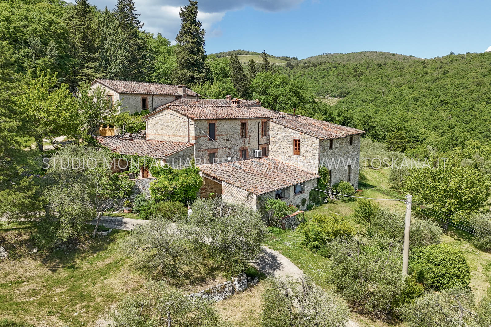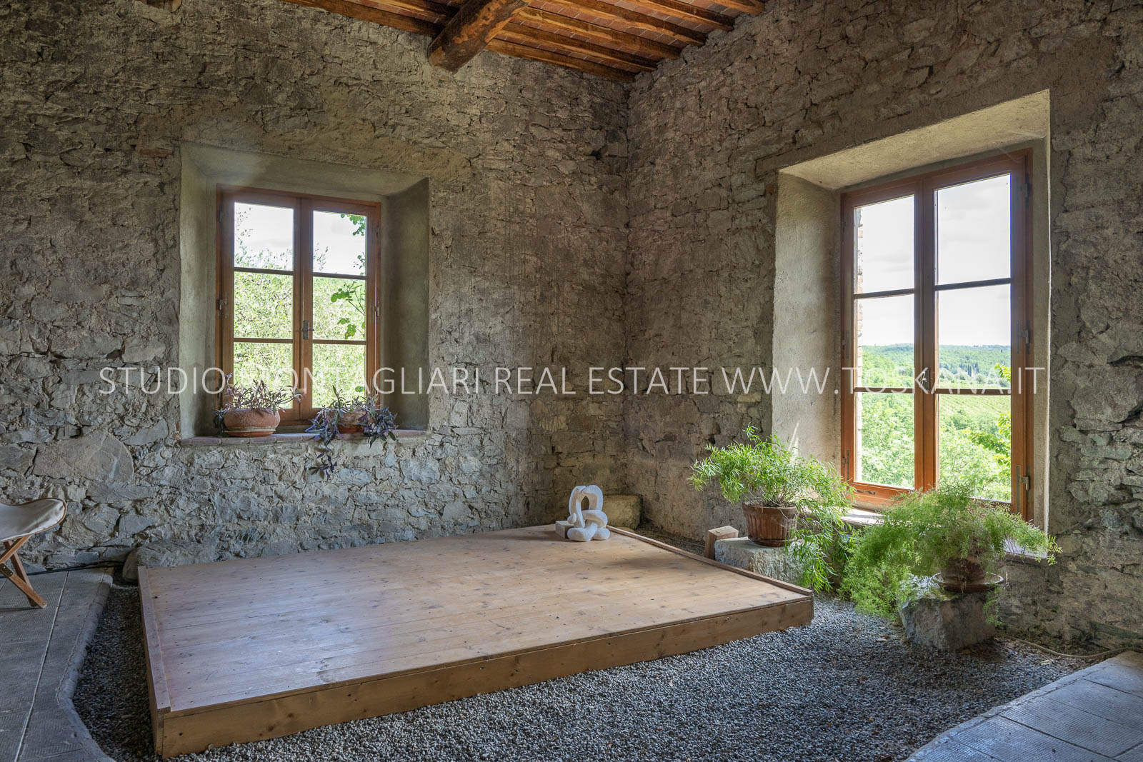 Gli edifici principali, con la loro tipica e originale architettura toscana, presentano un cortile lastricato in pietra circondato da due appartamenti, per un totale di otto camere da letto. Ogni appartamento dispone di cucina e bagno propri, nonché di impianto di riscaldamento centralizzato e aria condizionata. A parte dalle abitazioni principali si trova una piccola dependance di 76 mq, recentemente ristrutturata e capace di ospitare fino a quattro persone. I seminari si tengono in una sala suggestiva di 80 mq con pavimento in legno, affiancata da vari spazi per incontri all’aperto, tra cui un'incantevole area danza di 200 mq.