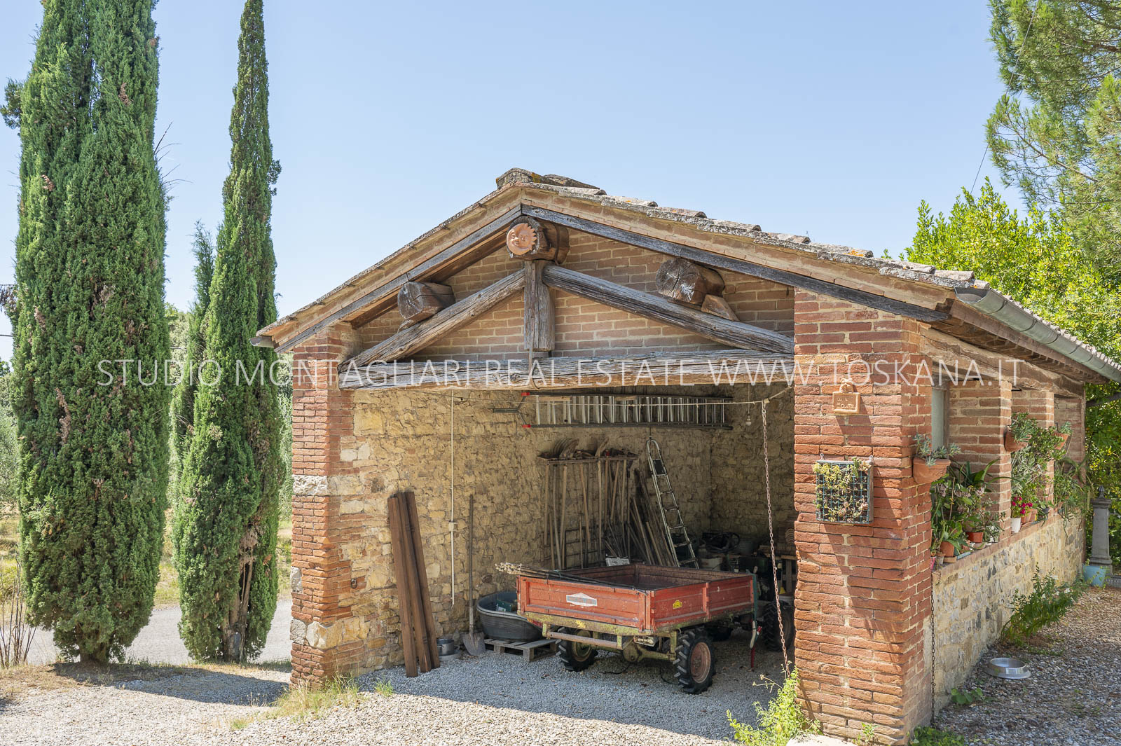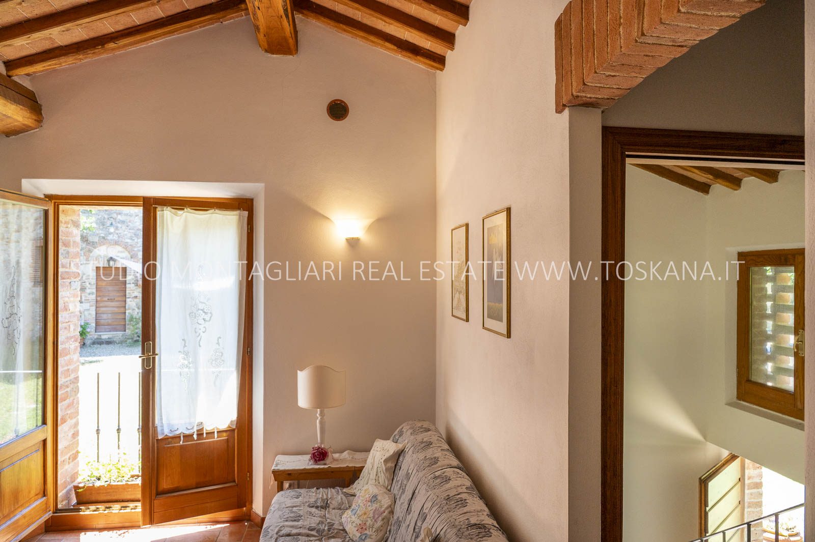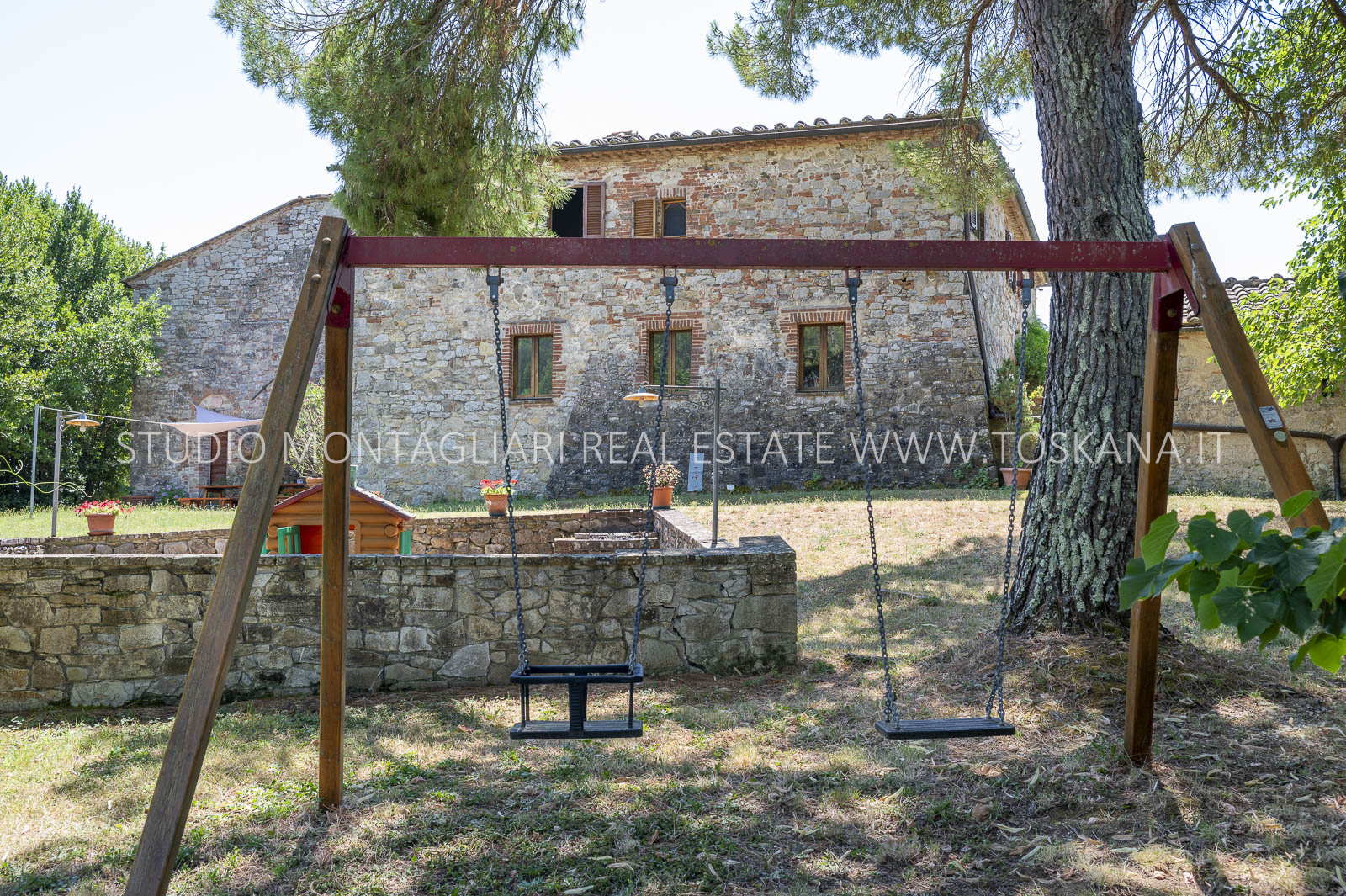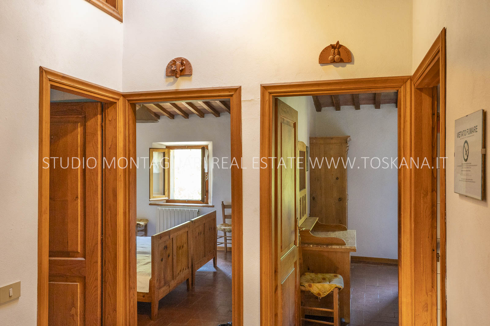 Un suggestivo viale di cipressi conduce al giardino e al casale principale. Al piano terra si trovano due magazzini e una limonaia con forno a legna, mentre l’ingresso principale si apre su un ampio soggiorno con camino e cucina, accompagnato da un disimpegno con lavanderia e bagno. Le scale interne originali conducono al piano superiore, dove sul lato sinistro si trovano quattro camere da letto e due bagni, mentre il lato destro consiste di un appartamento con soggiorno, cucina, tre camere da letto e un bagno. Un piccolo e affascinante cortile collega il casale principale a un delizioso annesso con ingresso indipendente, composto da una camera da letto e un bagno. Nel fienile, al primo piano, si trova un ulteriore appartamento composto da soggiorno con angolo cottura, due camere da letto e un bagno. Invece al piano terra di questo edificio è presente un ampio magazzino/garage per le attrezzature agricole. Accanto all’edificio principale, un capannone ad uso garage completa gli edifici. ù