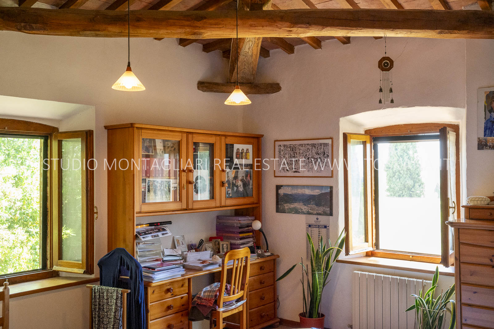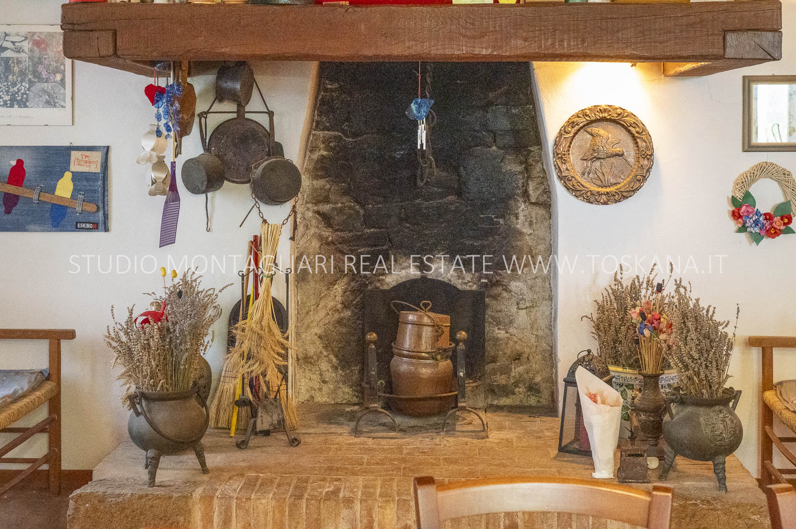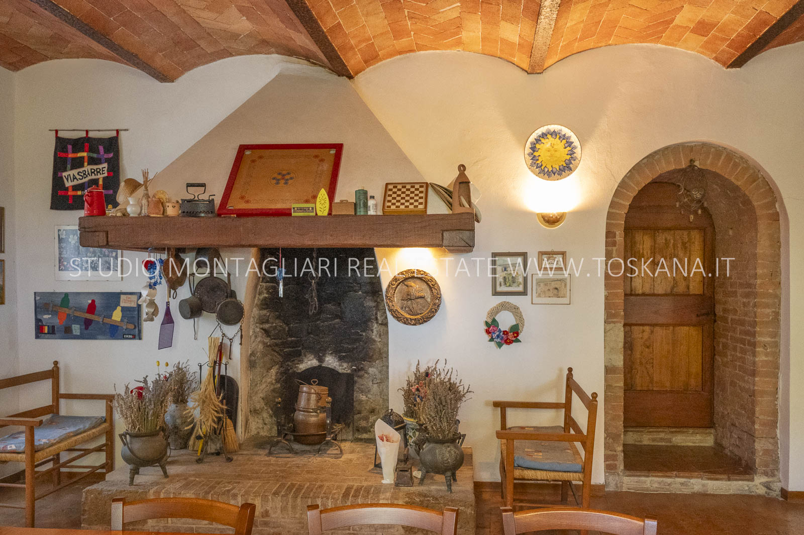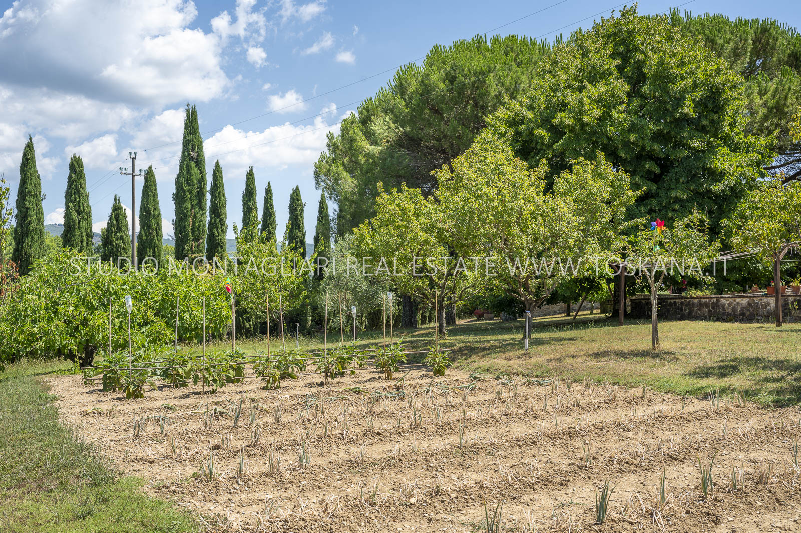 Un suggestivo viale di cipressi conduce al giardino e al casale principale. Al piano terra si trovano due magazzini e una limonaia con forno a legna, mentre l’ingresso principale si apre su un ampio soggiorno con camino e cucina, accompagnato da un disimpegno con lavanderia e bagno. Le scale interne originali conducono al piano superiore, dove sul lato sinistro si trovano quattro camere da letto e due bagni, mentre il lato destro consiste di un appartamento con soggiorno, cucina, tre camere da letto e un bagno. Un piccolo e affascinante cortile collega il casale principale a un delizioso annesso con ingresso indipendente, composto da una camera da letto e un bagno. Nel fienile, al primo piano, si trova un ulteriore appartamento composto da soggiorno con angolo cottura, due camere da letto e un bagno. Invece al piano terra di questo edificio è presente un ampio magazzino/garage per le attrezzature agricole. Accanto all’edificio principale, un capannone ad uso garage completa gli edifici. ù